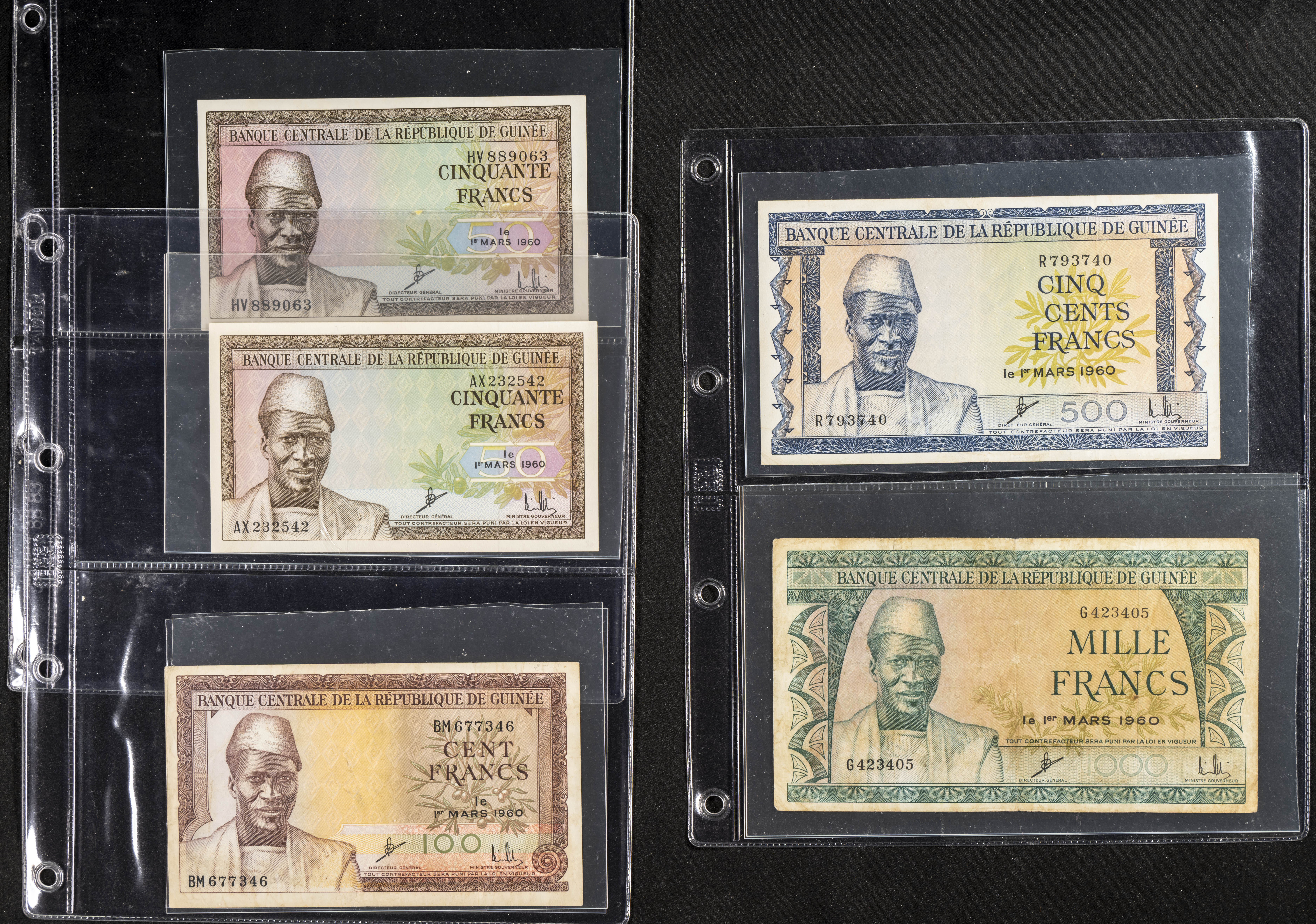 Set of more than 50 banknotes of Guinea of various issues, different qualities. TO EXAMINE.