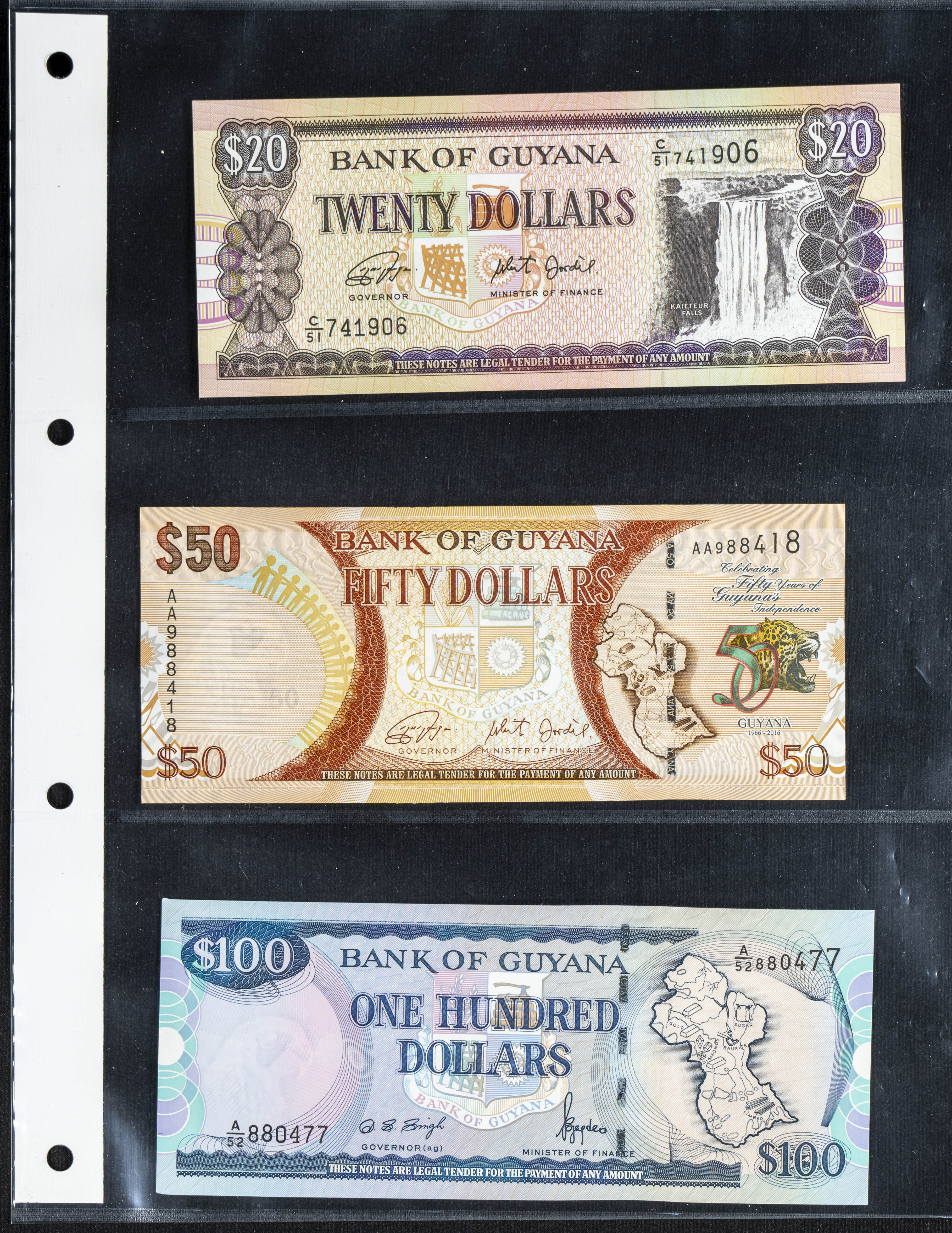 Set of 11 banknotes from Guyana of various issues, most of them nice qualities. TO EXAM.