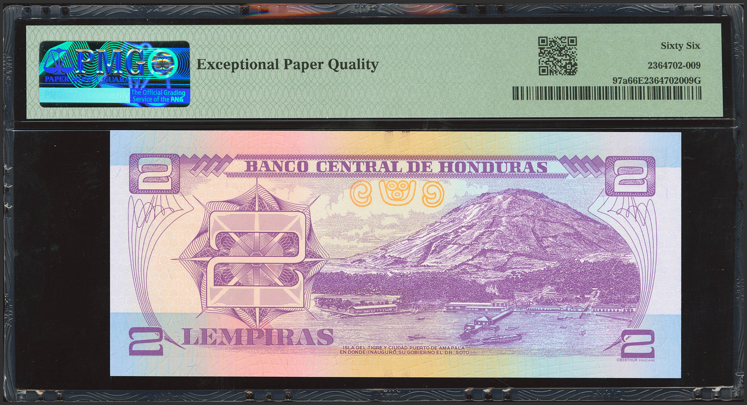 HONDURAS. 2 Lempiras. 2012. (Pick: 97a). PMG66EPQ.