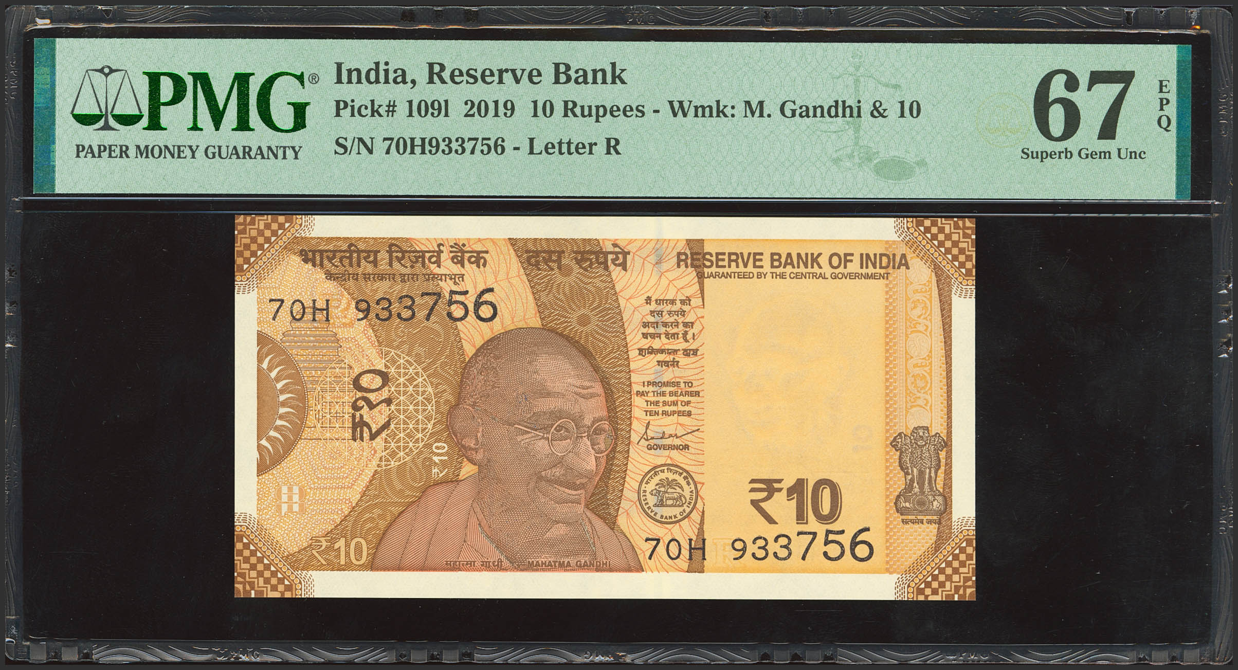 INDIA. 10 Rupees. 2019. (Pick: 1091). PMG67EPQ.