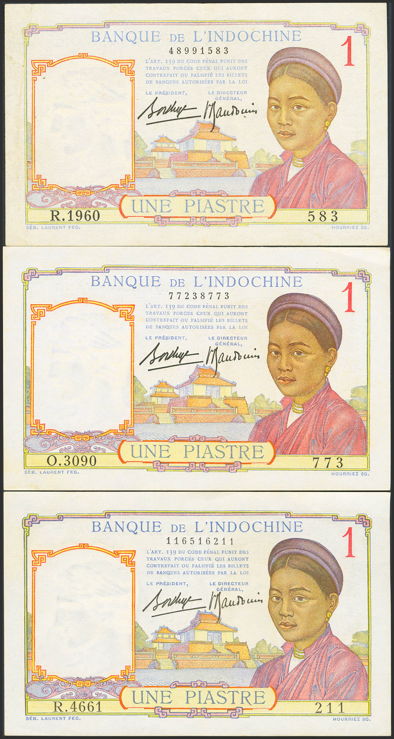 INDOCHINA. 1 Piastre. (1936ca). (Pick: 54(3)). Less than Uncirculated / Extremely Fine.