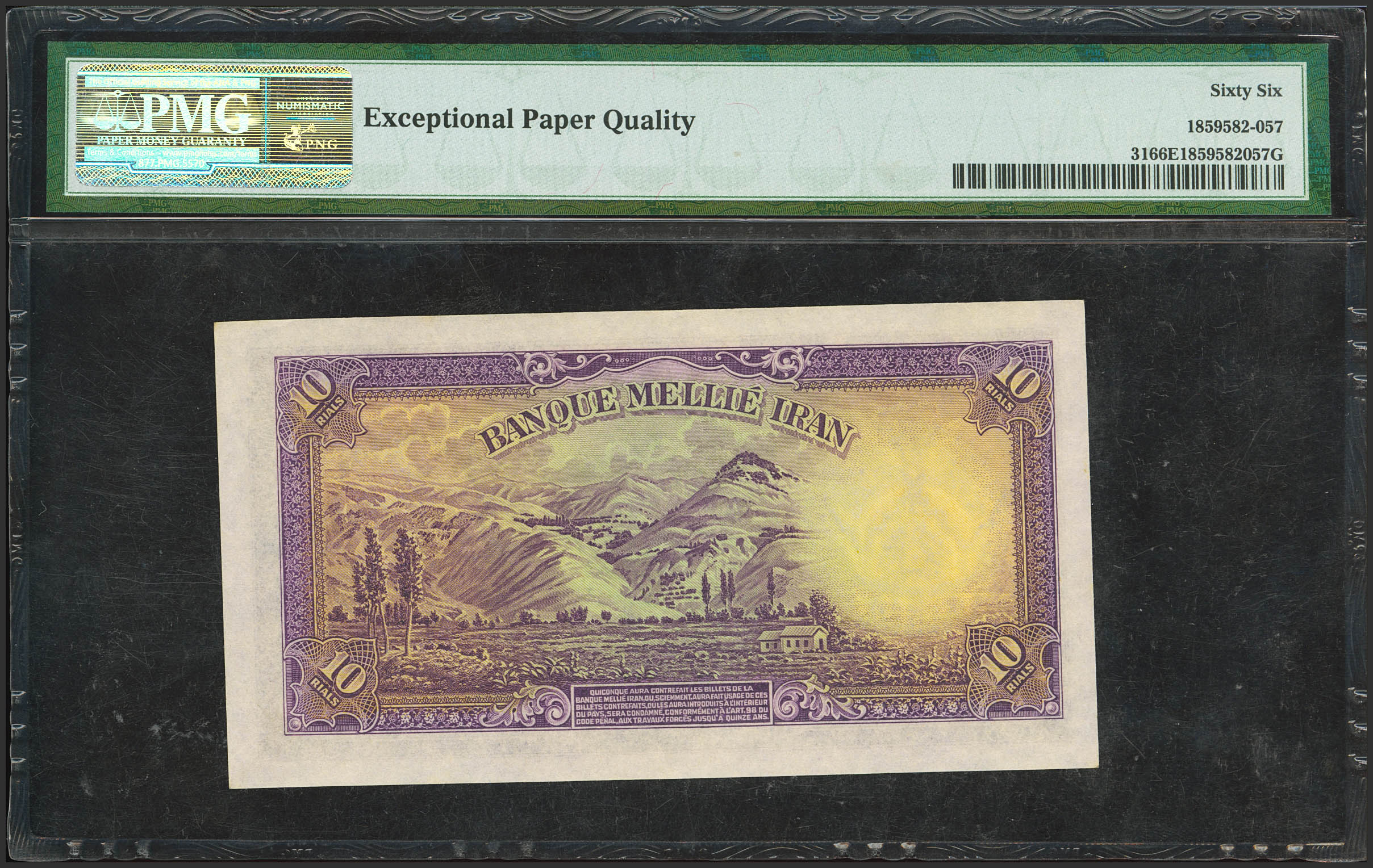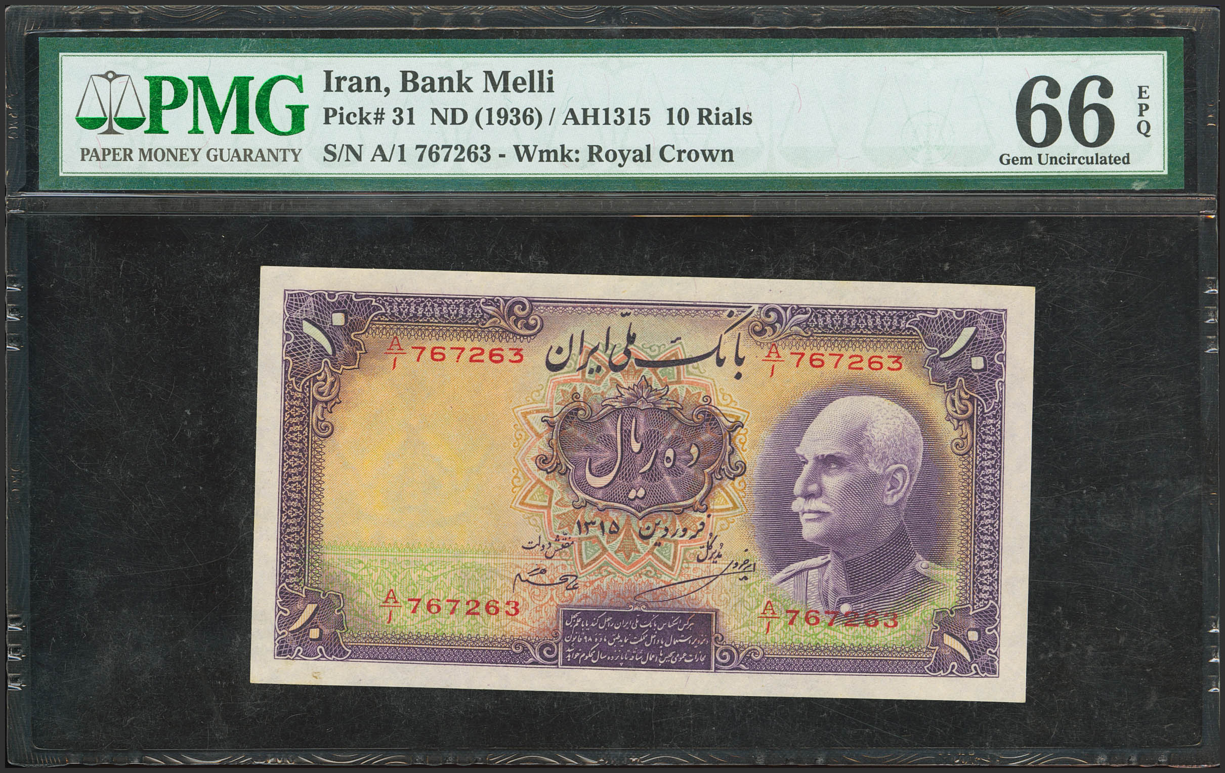 IRAN. 10 Rials. (1936ca). (Pick: 31). PMG66EPQ.
