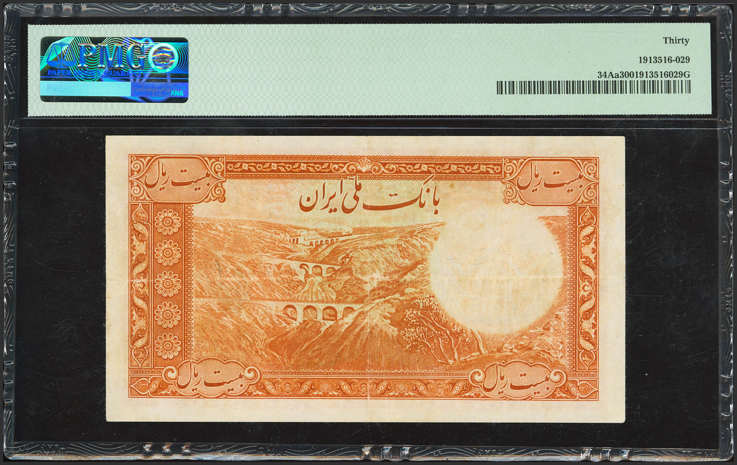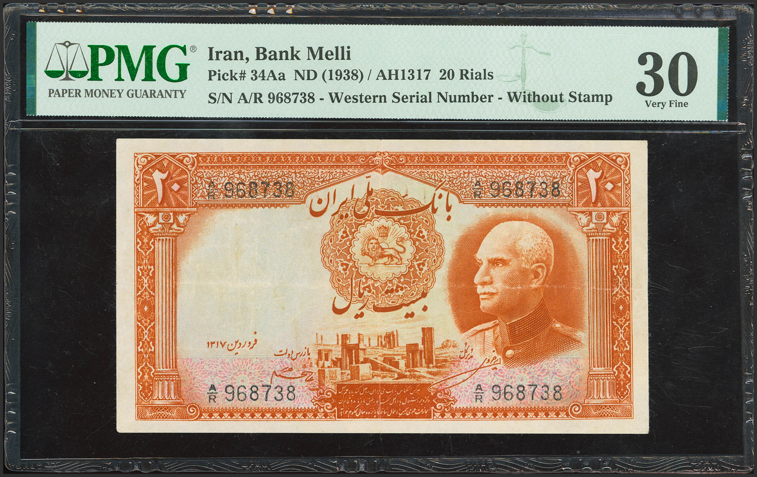 IRAN. 20 Rials. (1938ca). (Pick: 34Aa). PMG30.
