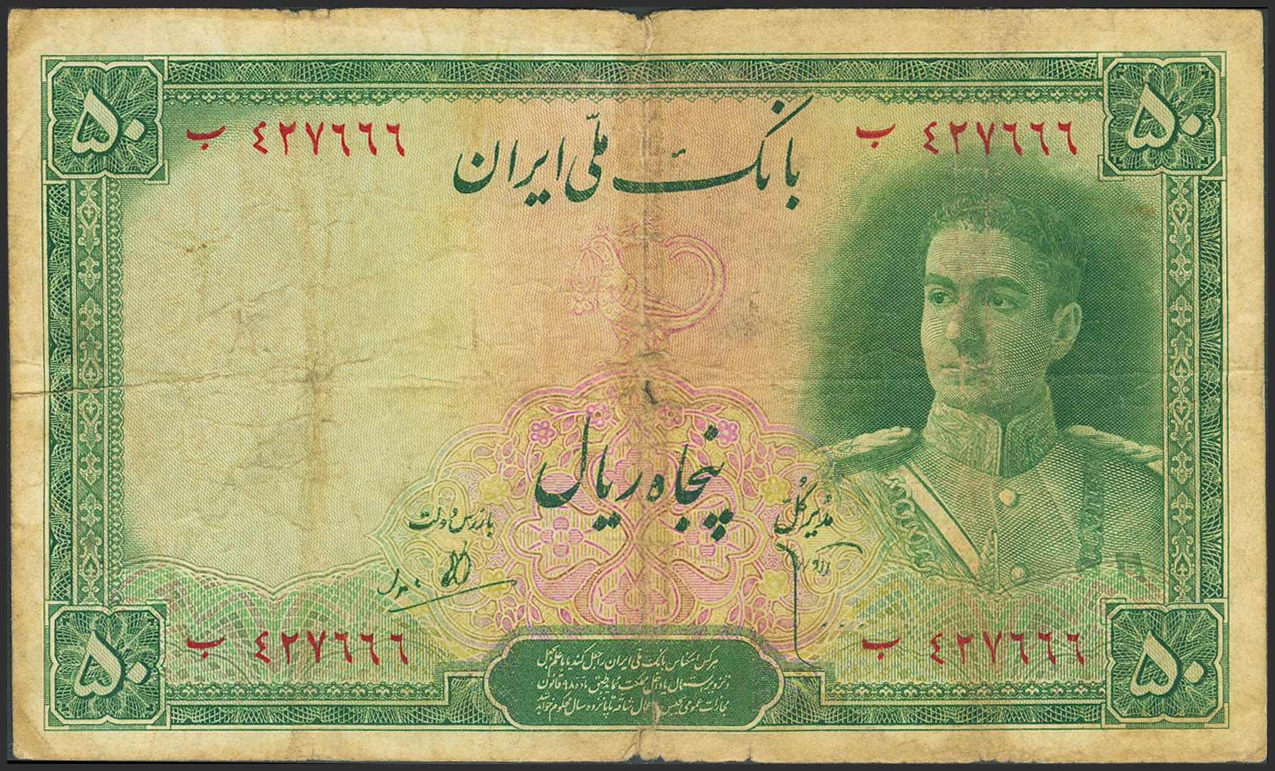IRAN. 50 Rials. (1944ca). (Pick: 42). Very Good.