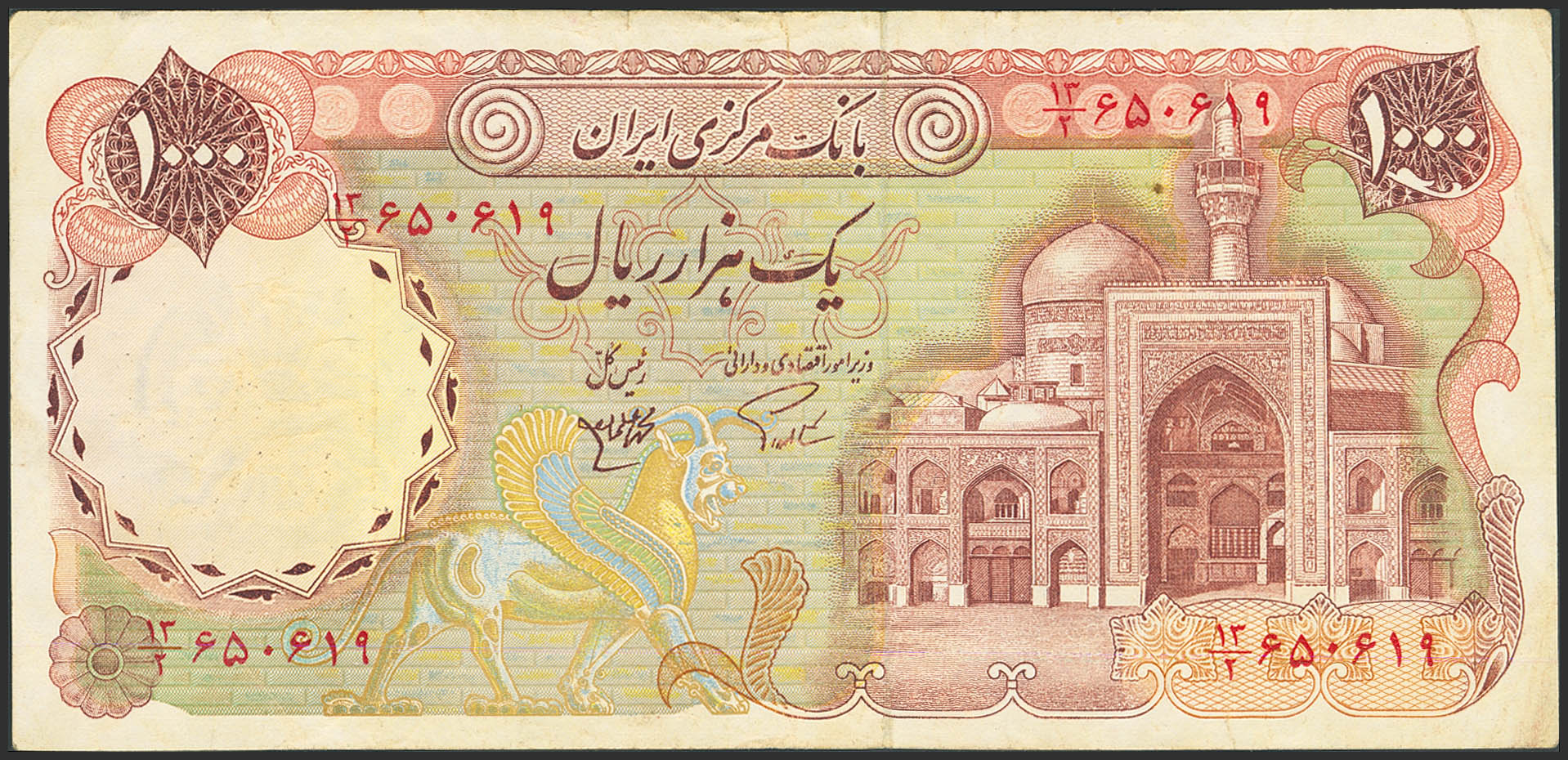 IRAN. 1000 Rials. (1982ca). No overprint in obverse. (Pick: 129). Very fine.