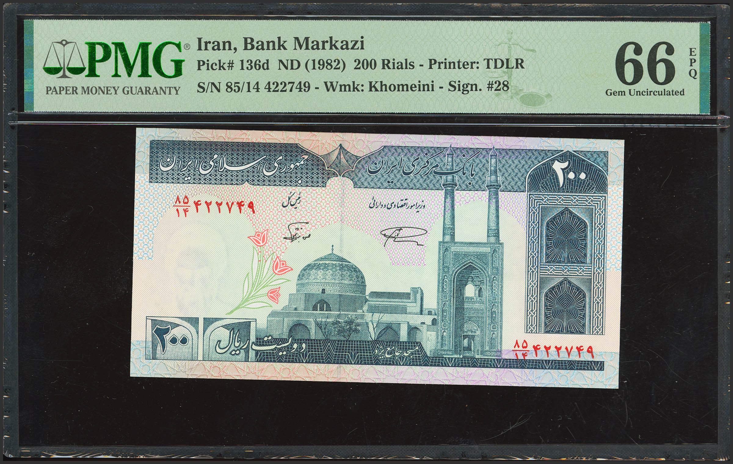 IRAN. 200 Rials. (1982ca). (Pick: 136d). PMG66EPQ.