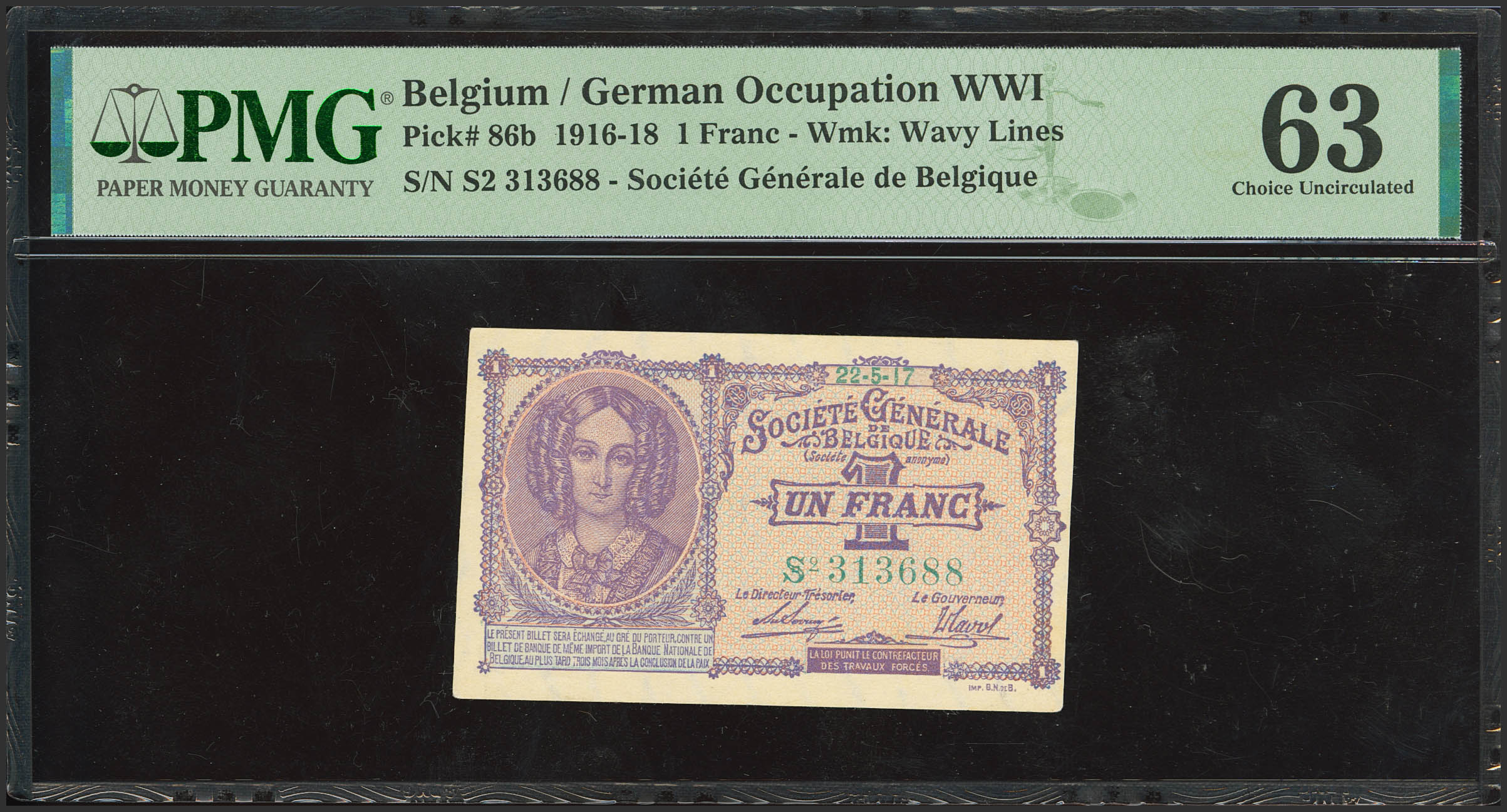 BELGIUM. 1 Franc. German occupation WWI. 1916. (Pick: 86b). PMG63.