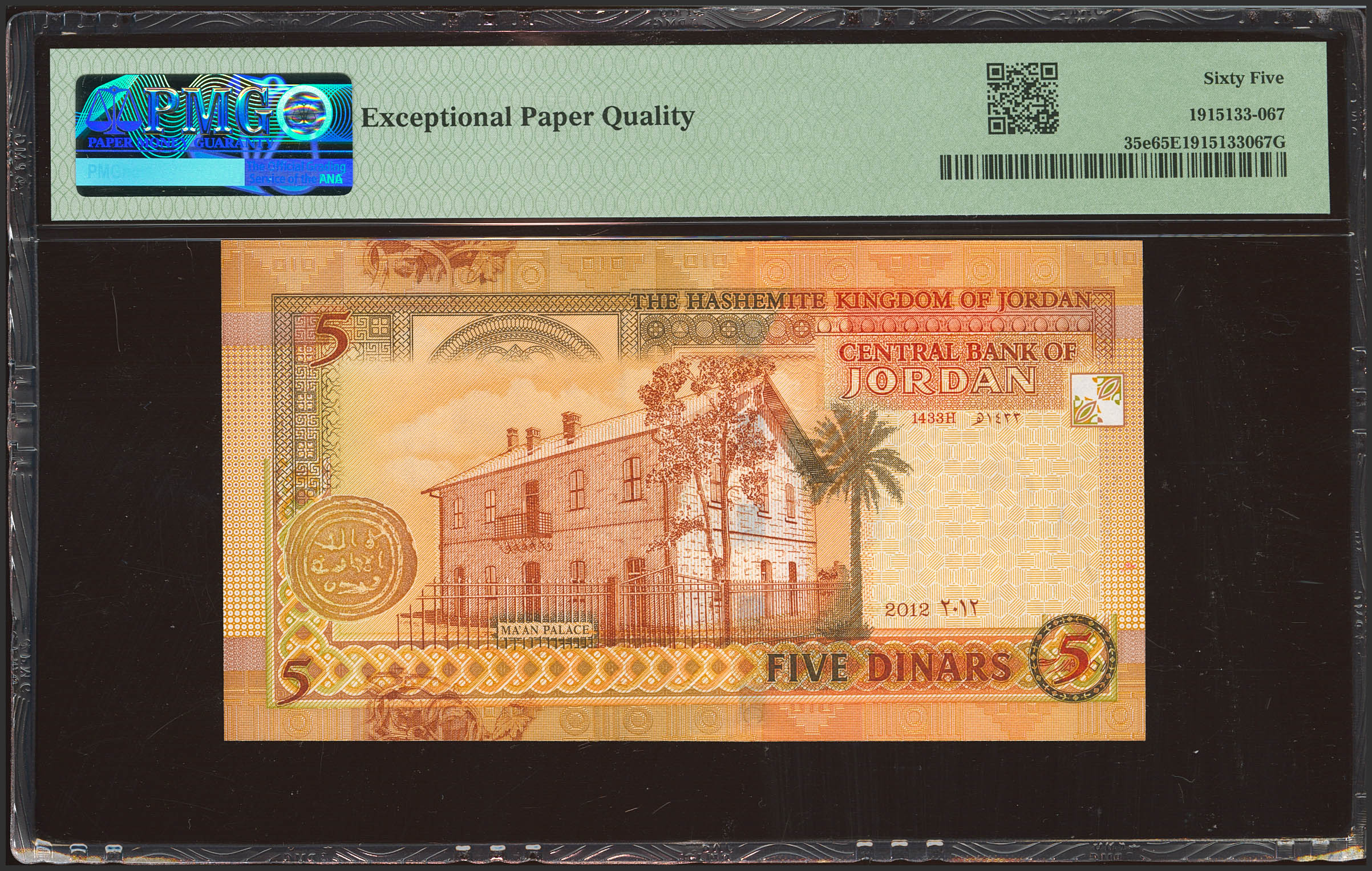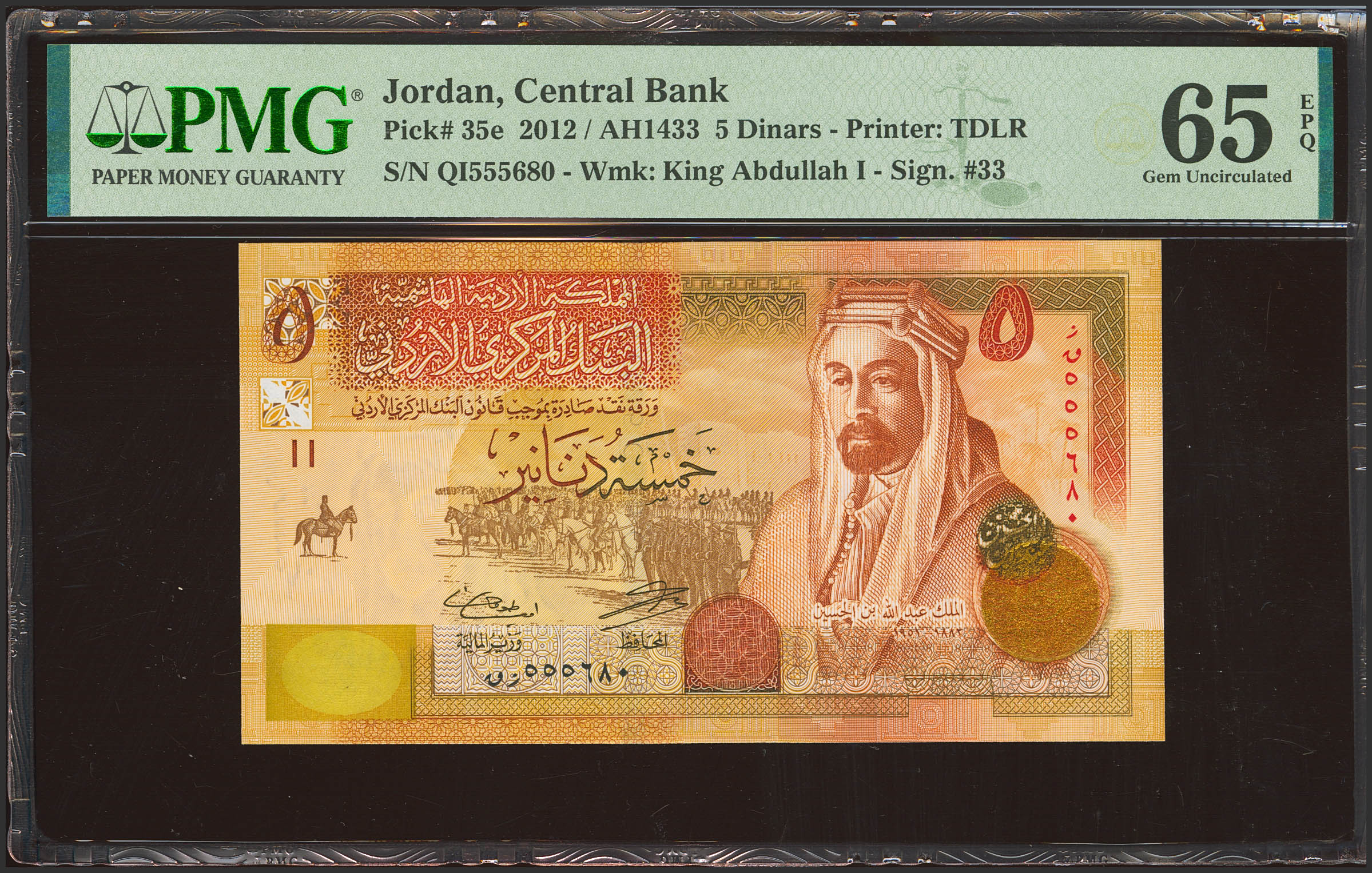 JORDAN. 5 Dinars. 2012. (Pick: 35e). PMG65EPQ.