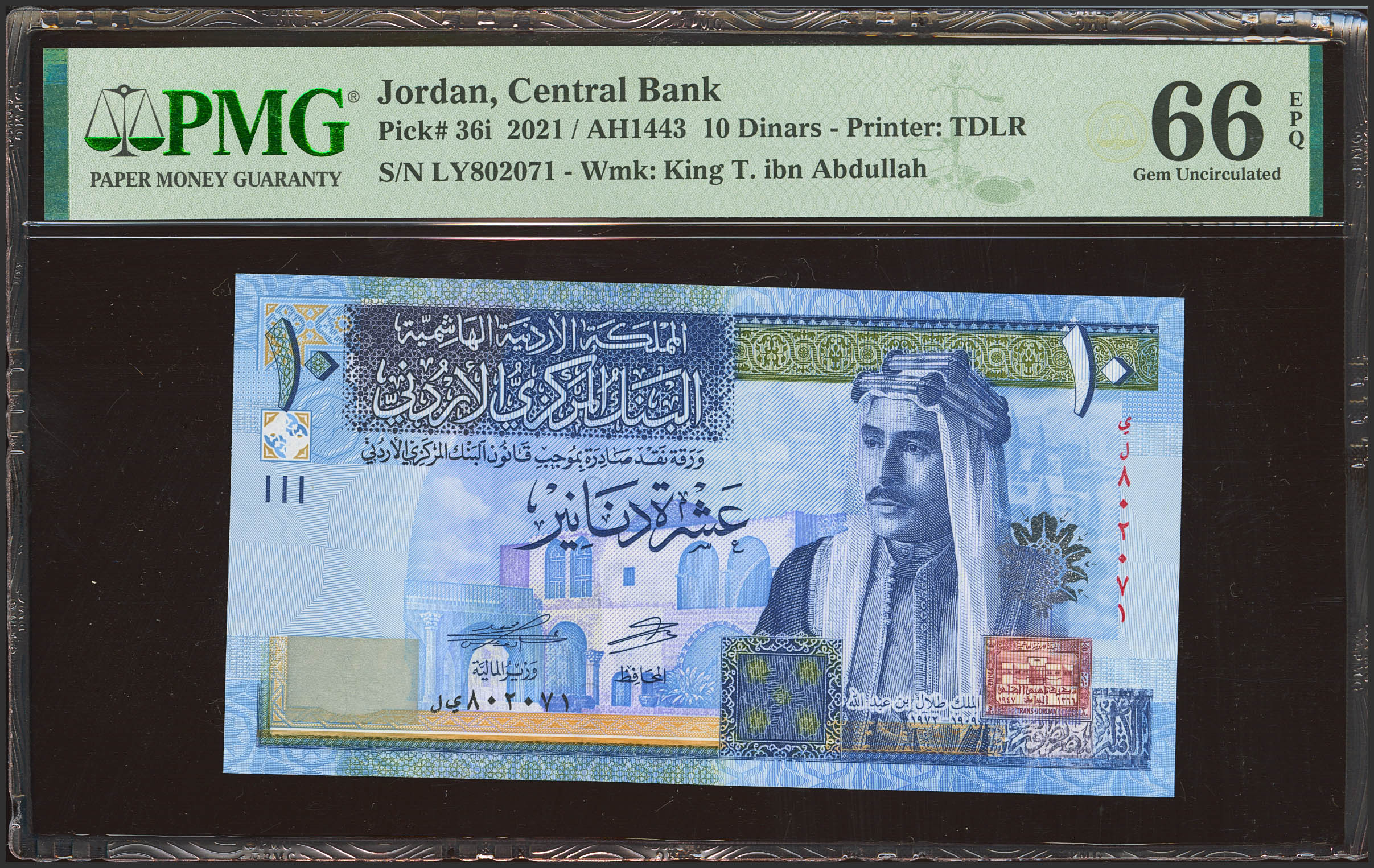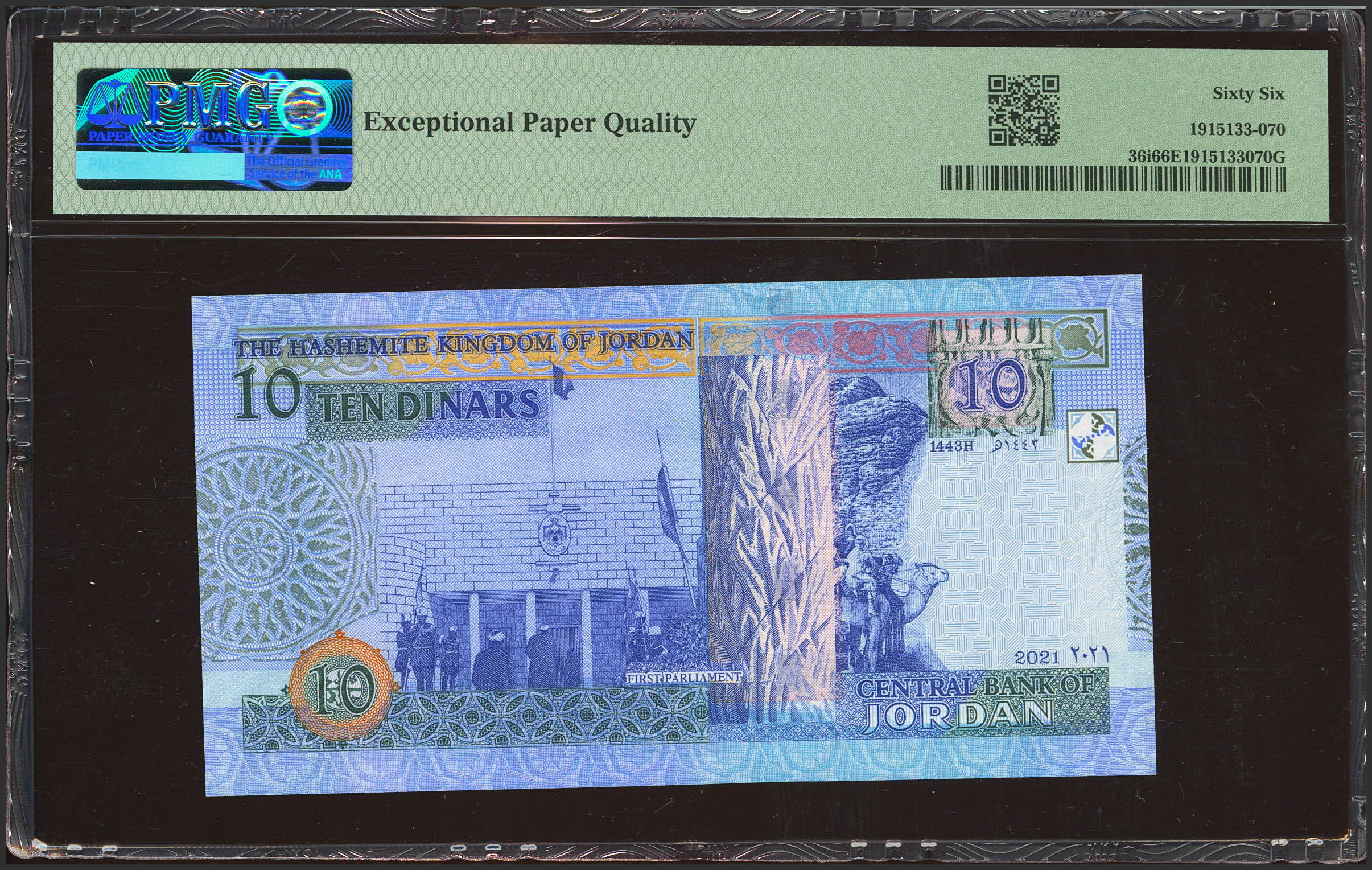 JORDAN. 10 Dinars. 2021. (Pick: 36i). PMG66EPQ.