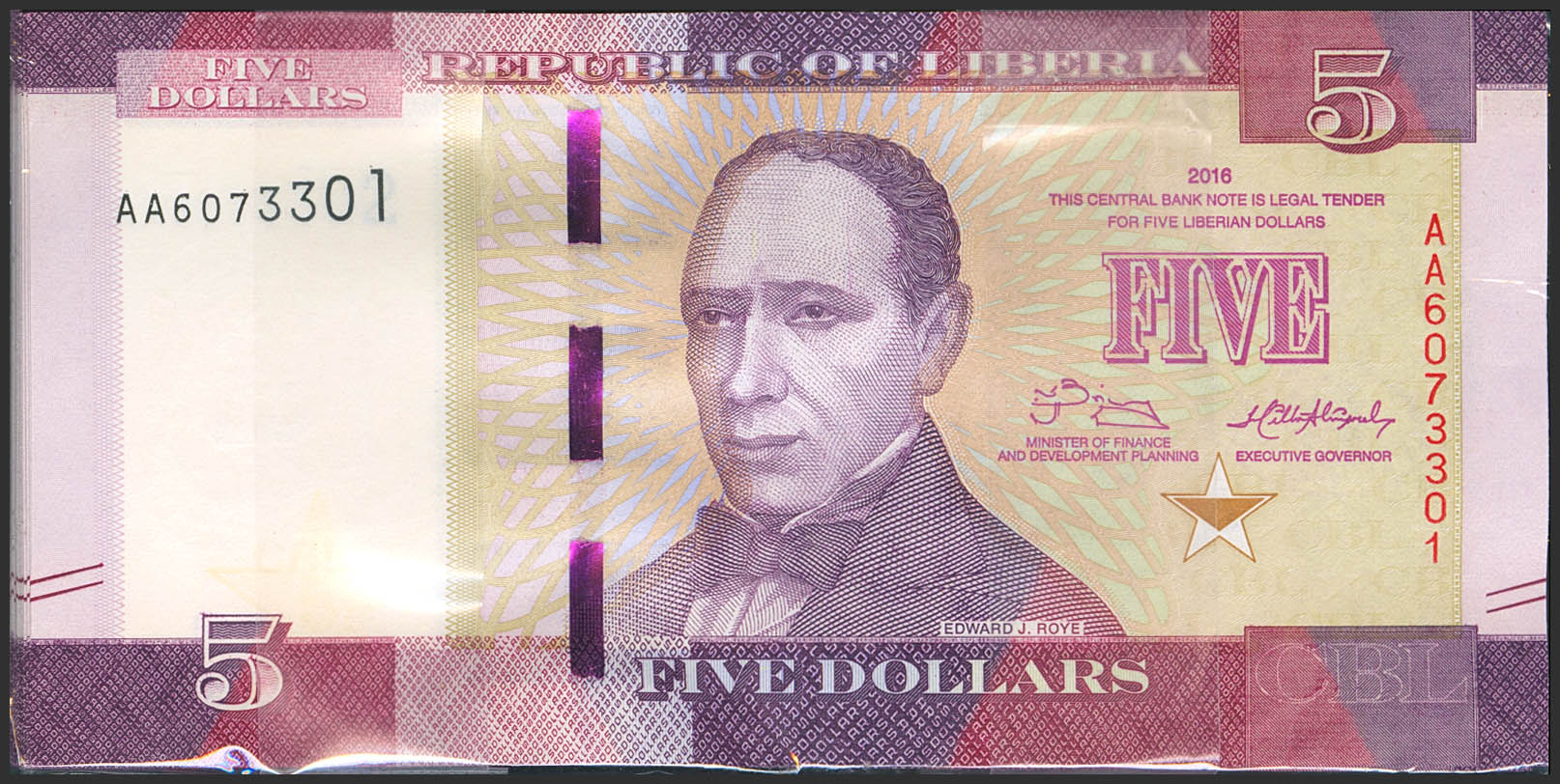 LIBERIA. 5 Dollars (100). 2016. (Pick: 31). Uncirculated.