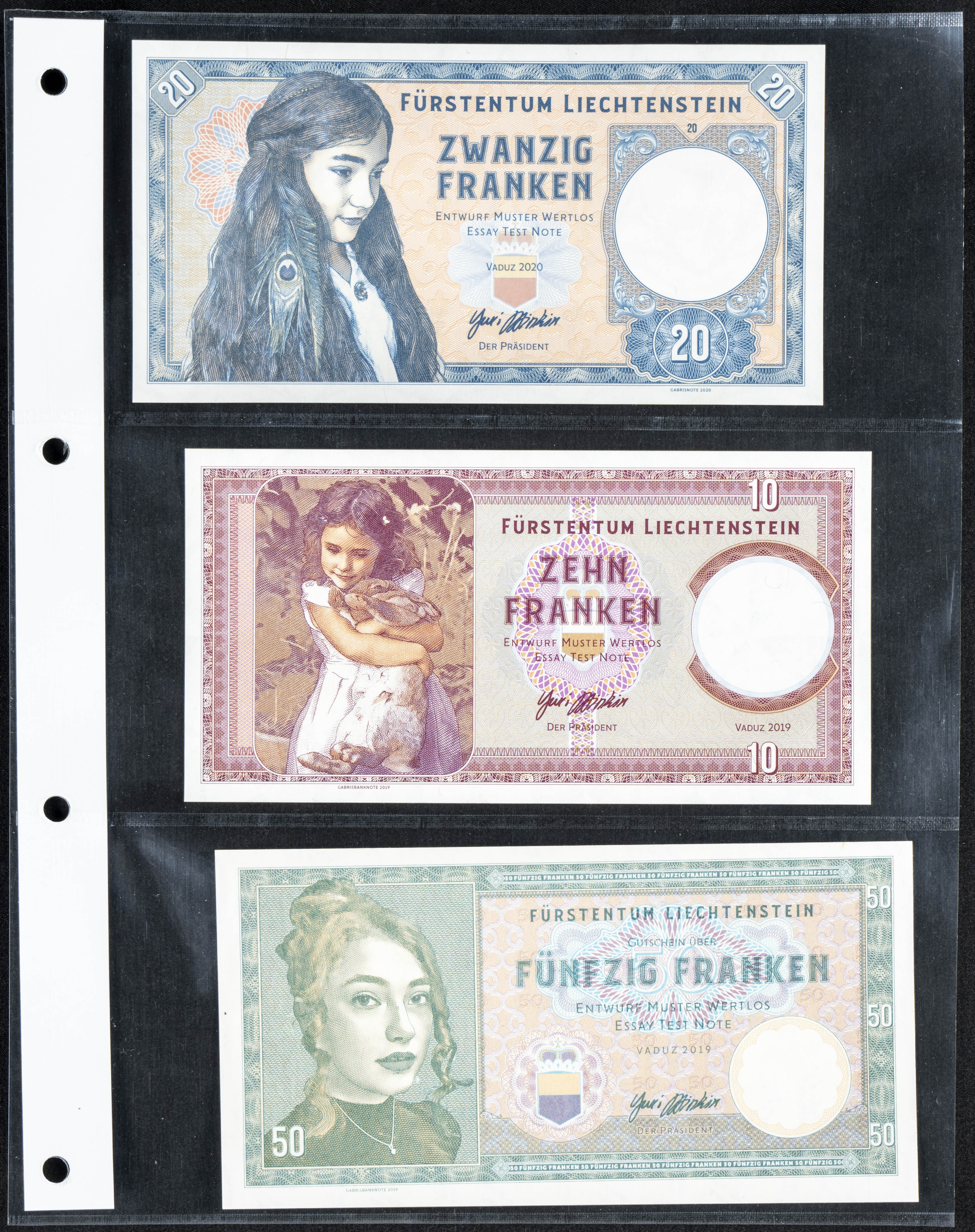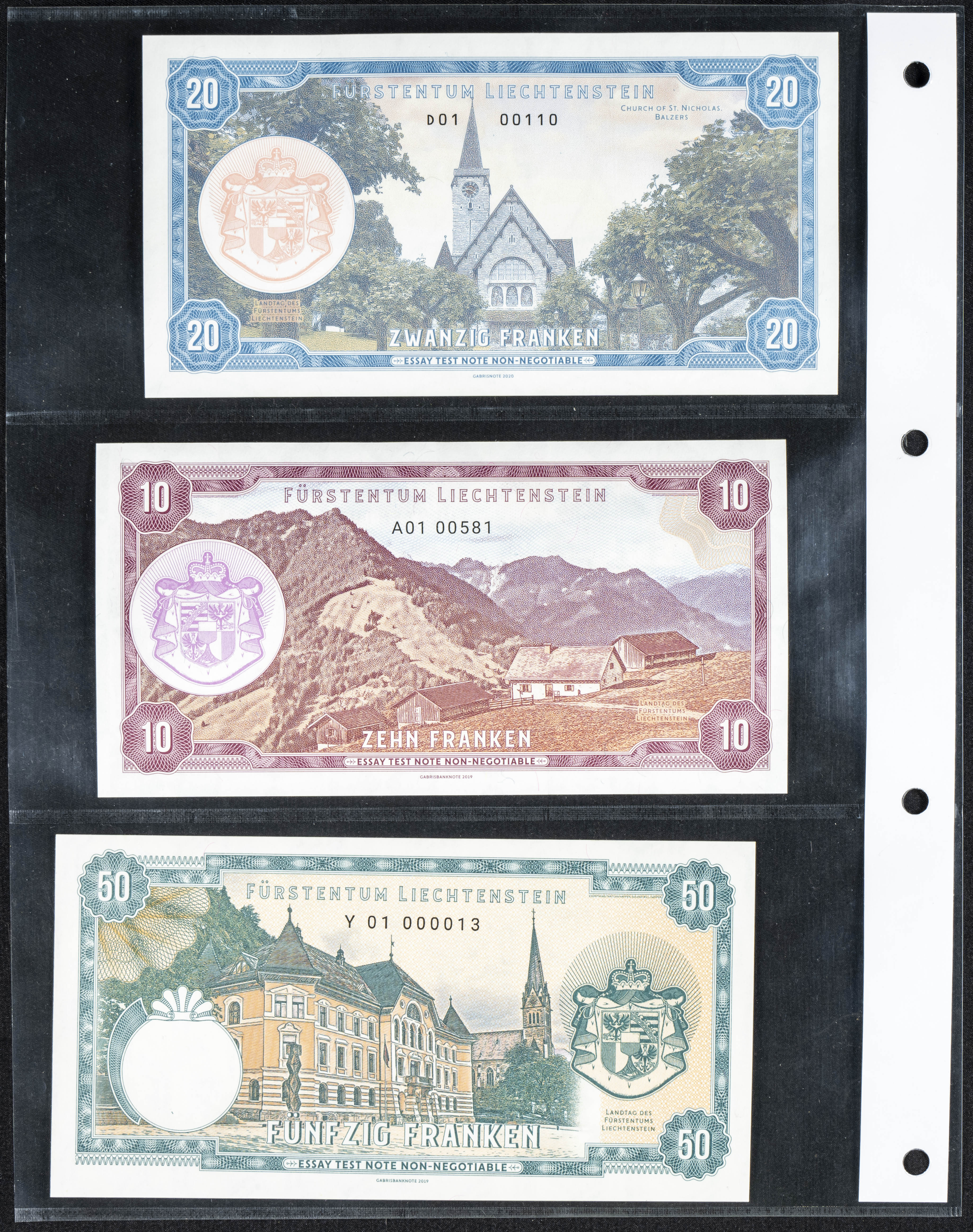 Set of 3 fantasy banknotes from Liechtenstein of the same issue, most of them nice qualities. TO EXAM.