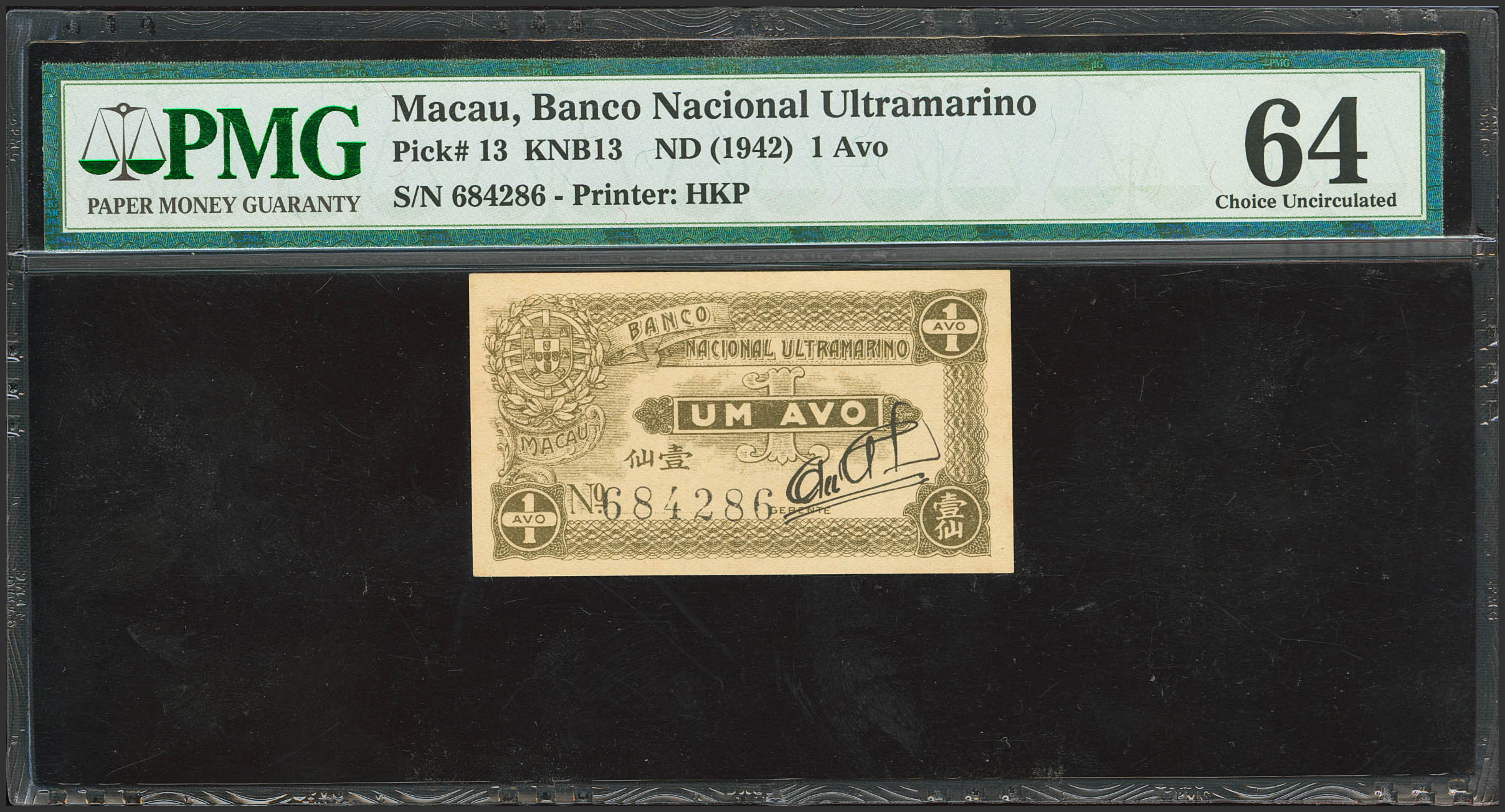 MACAU. 1 Avo. Portuguese administration. (1942ca). (Pick: 13). PMG64.