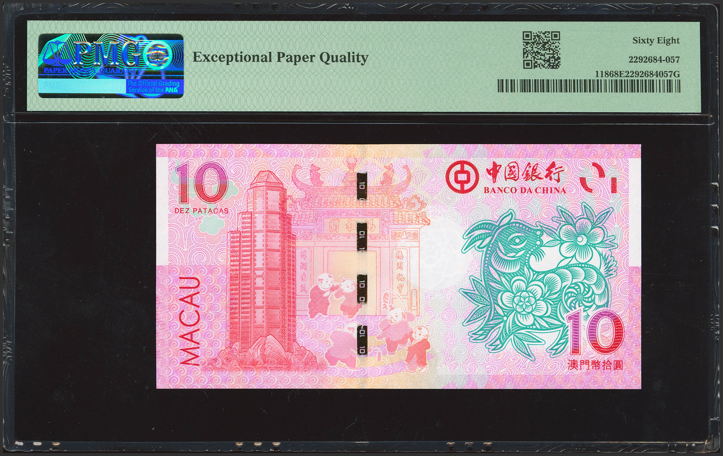 MACAU (CHINA). 10 Patacas. 2015. (Pick: 118). PMG68EPQ.
