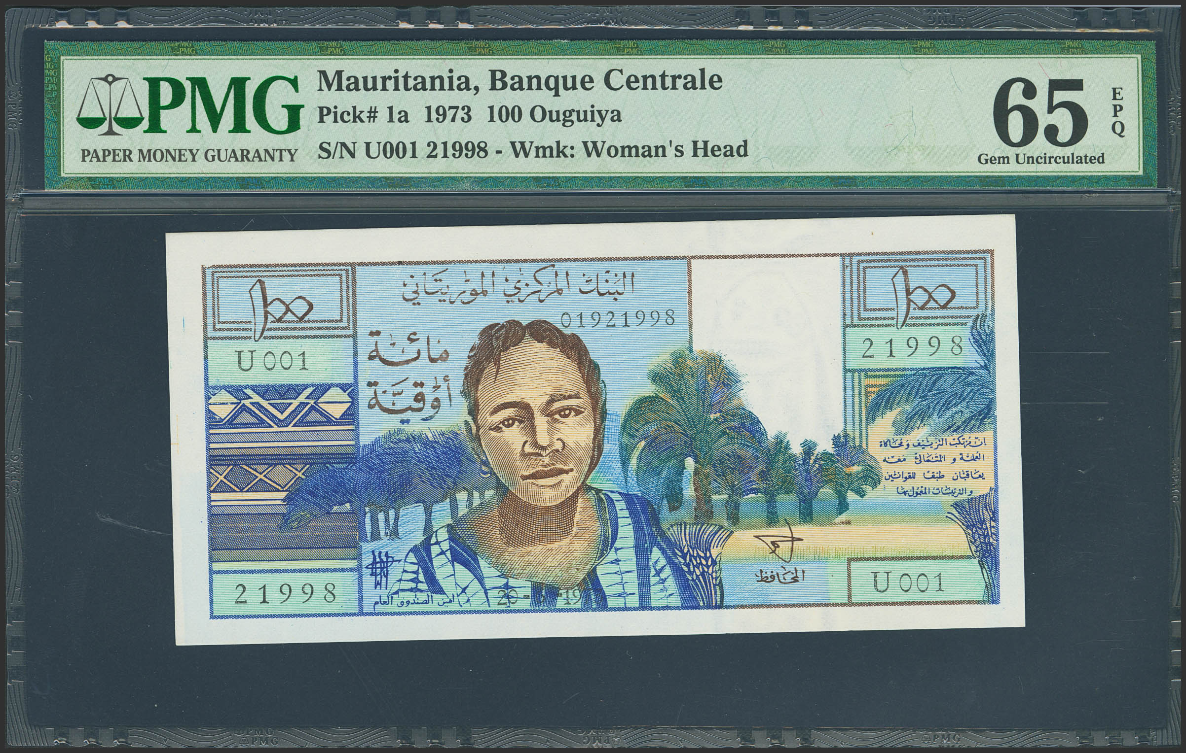 MAURITANIA. 100 Ouguiya. 1973. (Pick: 1a). PMG65EPQ.