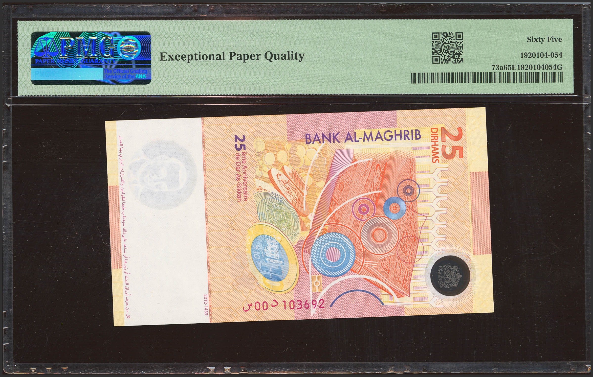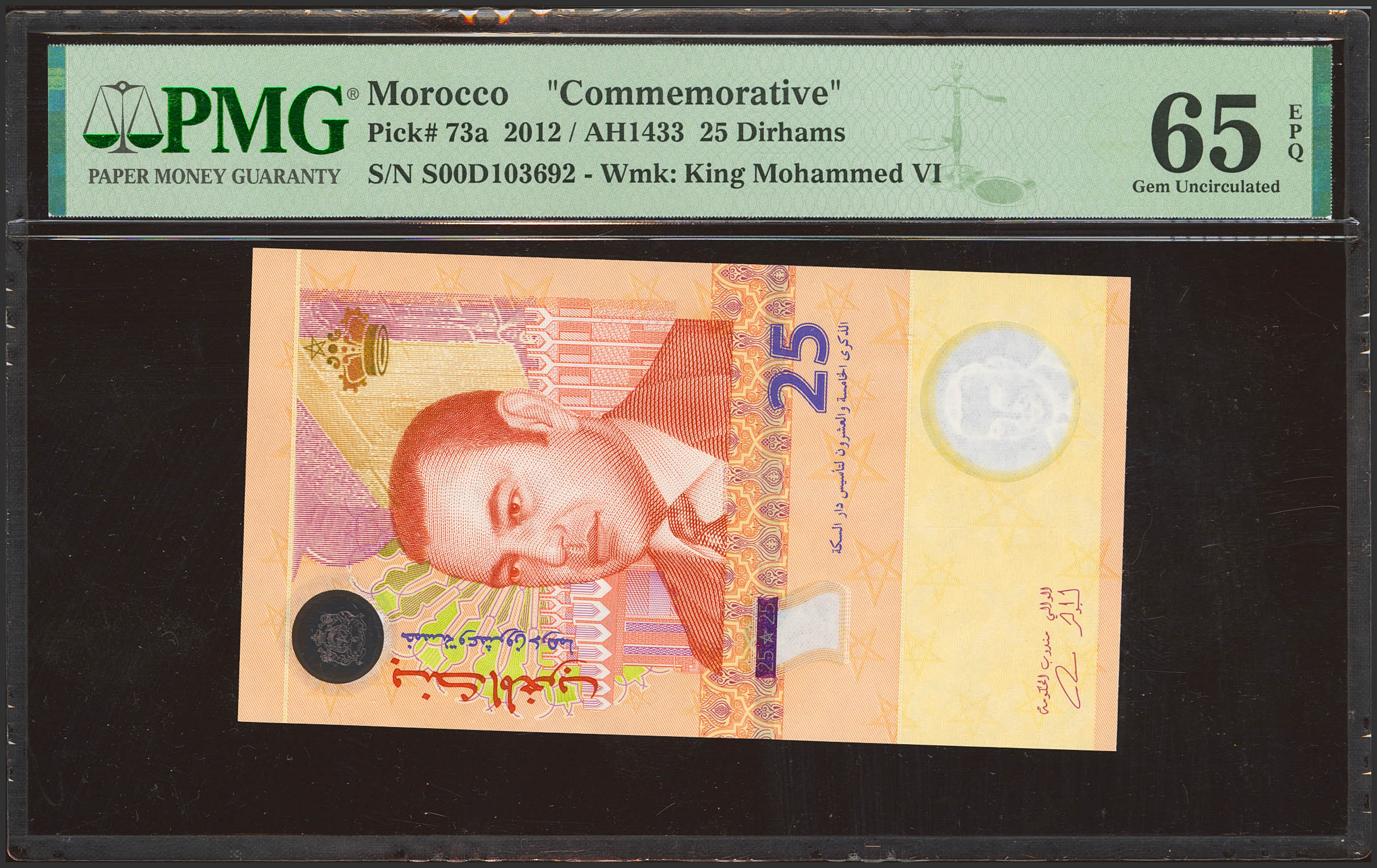 MOROCCO. 25 Dirhams. 2012. (Pick: 73a). PMG65EPQ.