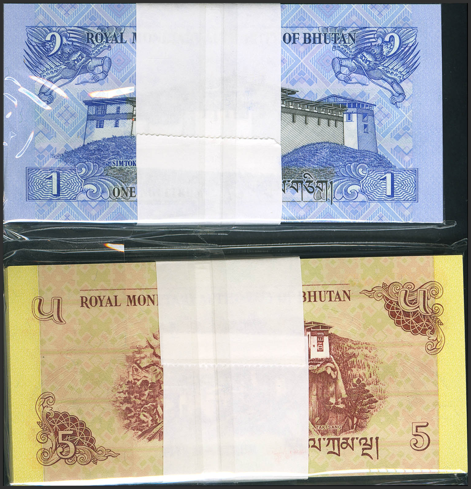 Set of 2 bundles of 100 banknotes from Bhutan of various denominations, most of them very nice qualities. TO EXAM.