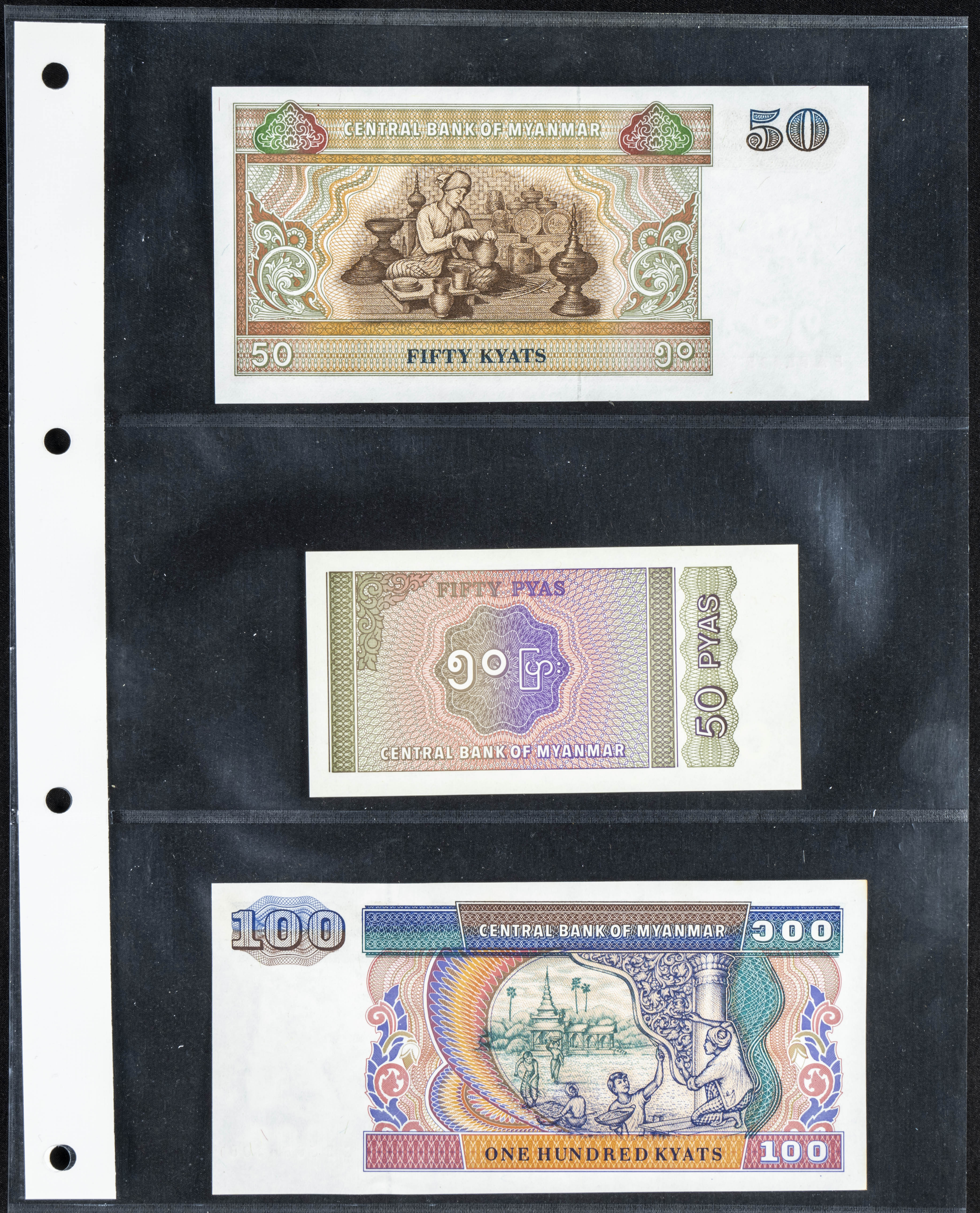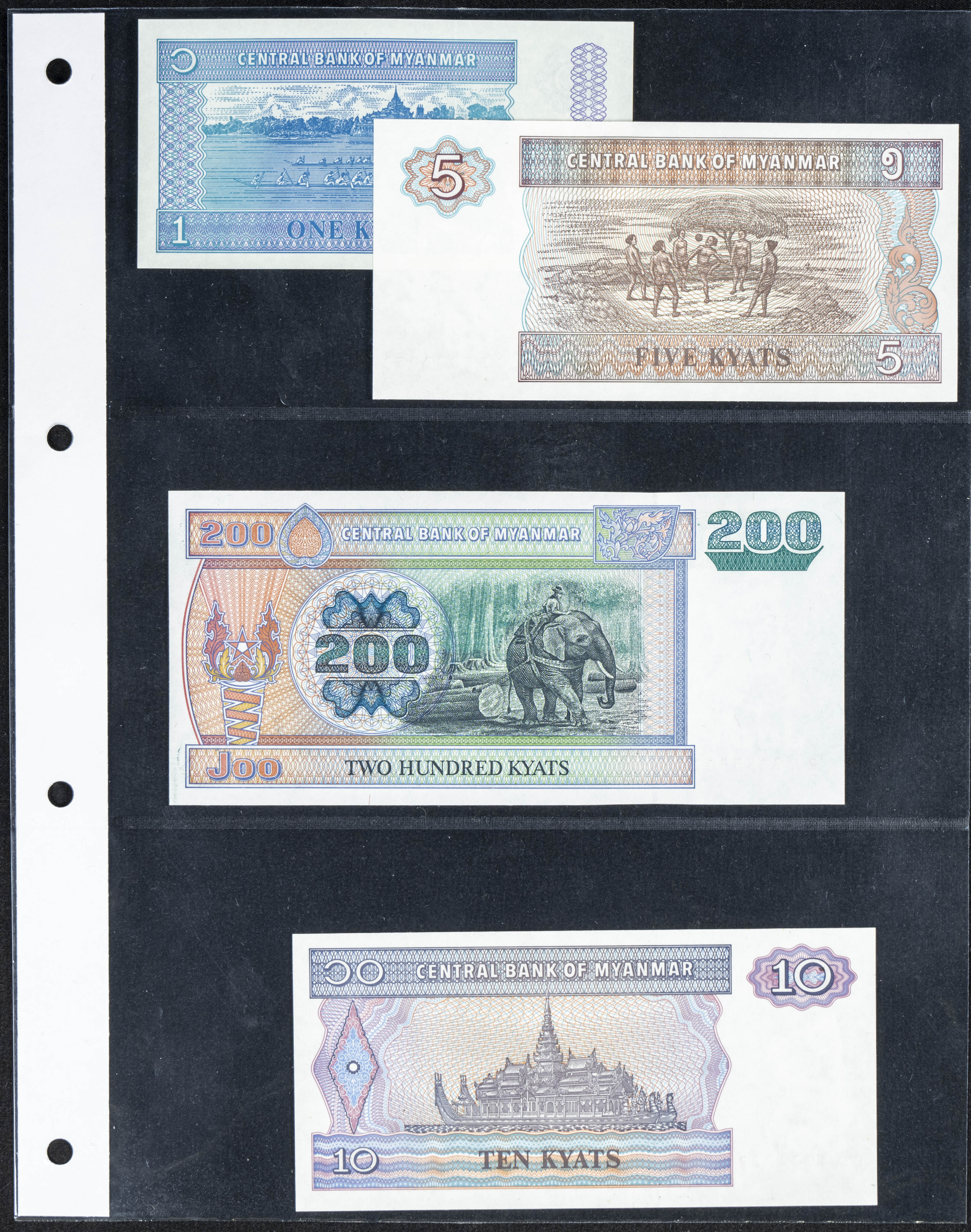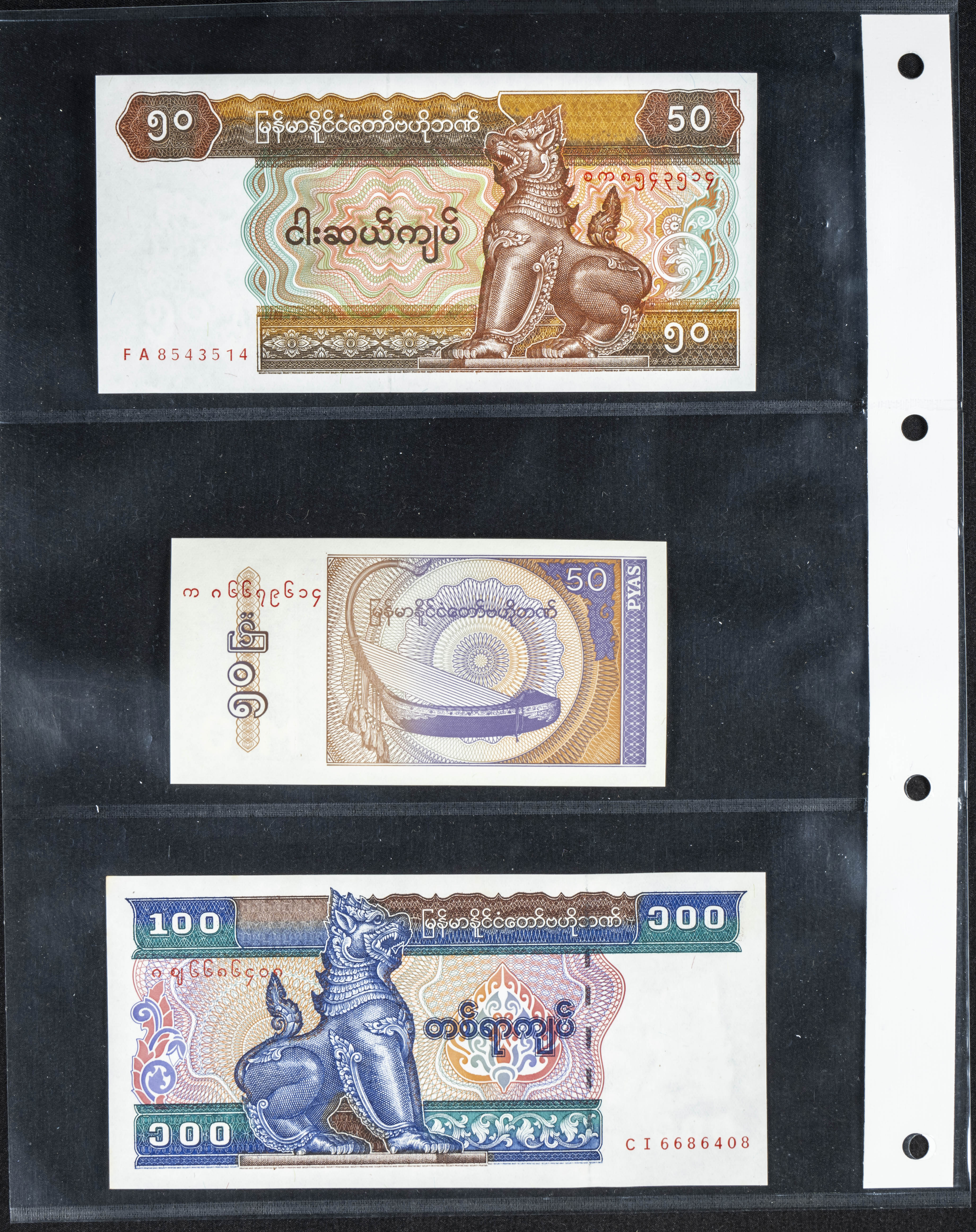 Set of 10 banknotes from Myanmar of various issues, most of them nice qualities. TO EXAM.