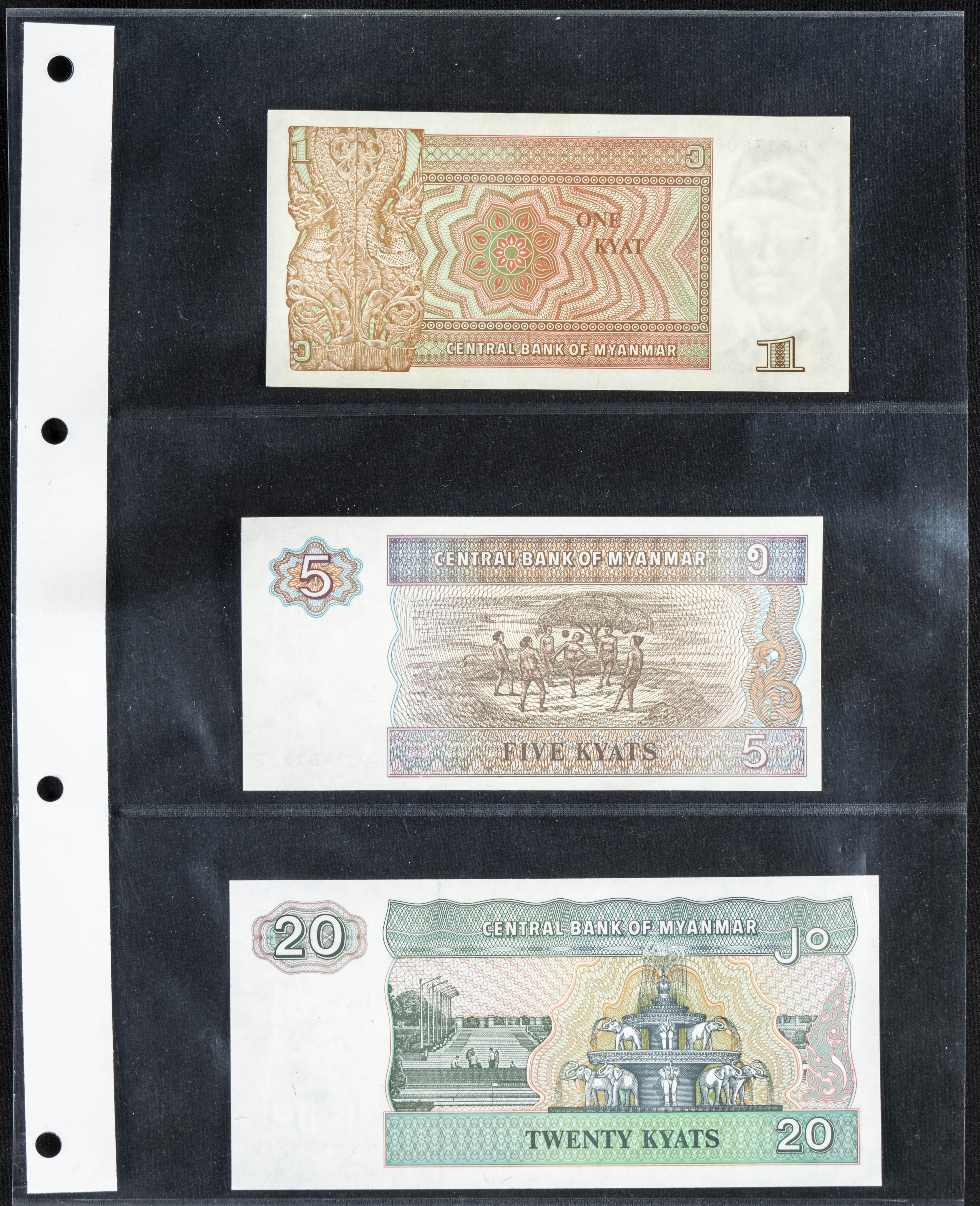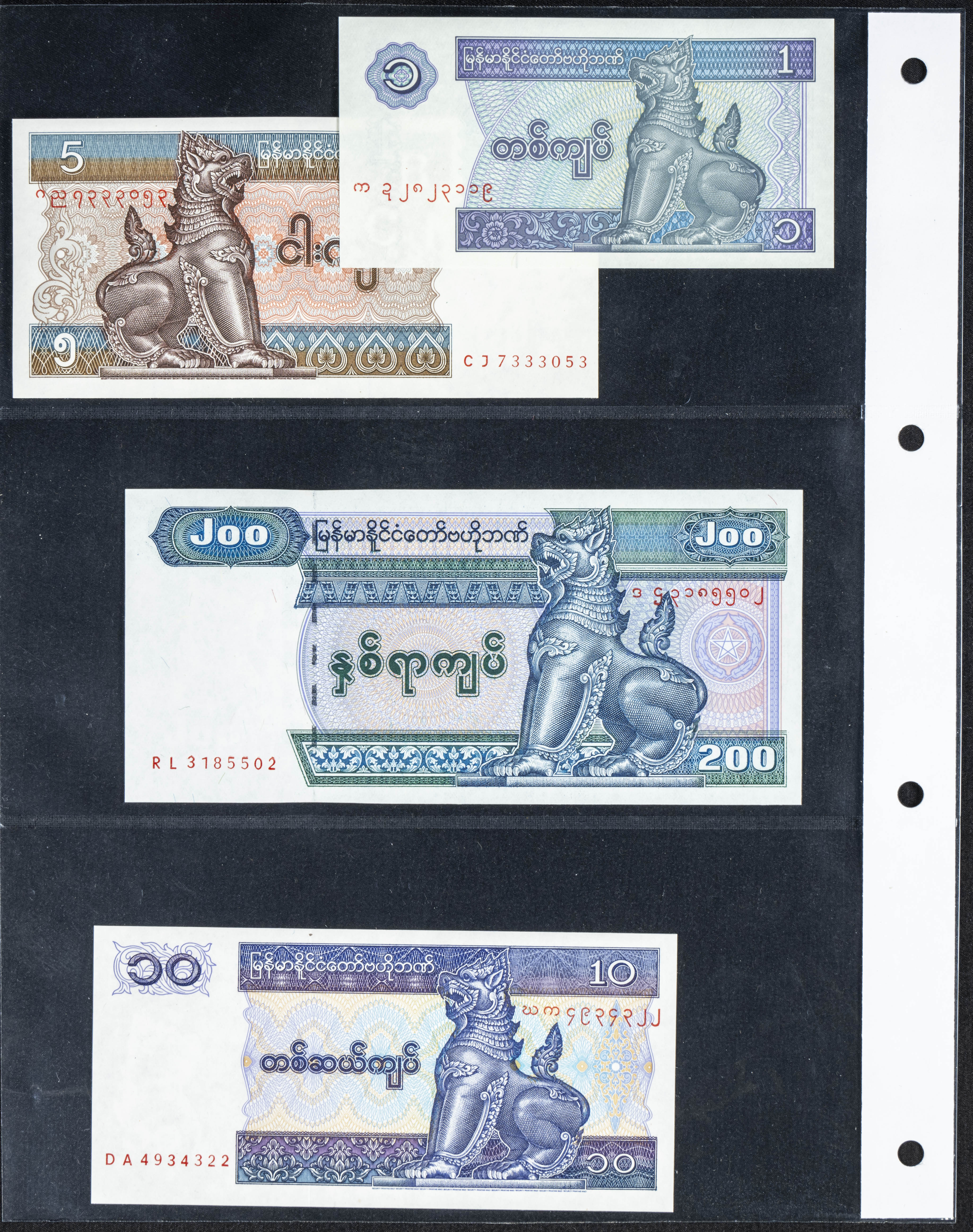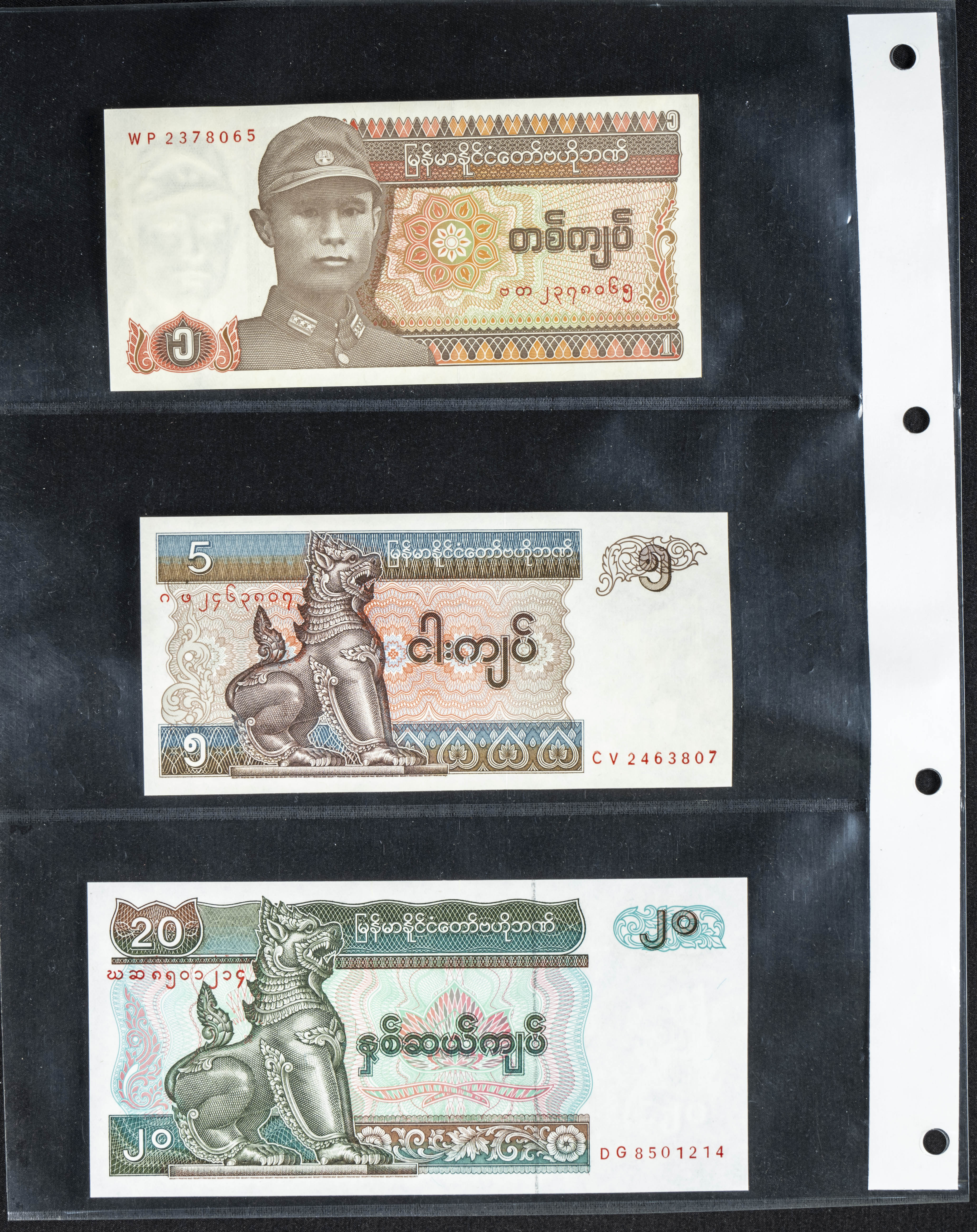 Set of 10 banknotes from Myanmar of various issues, most of them nice qualities. TO EXAM.