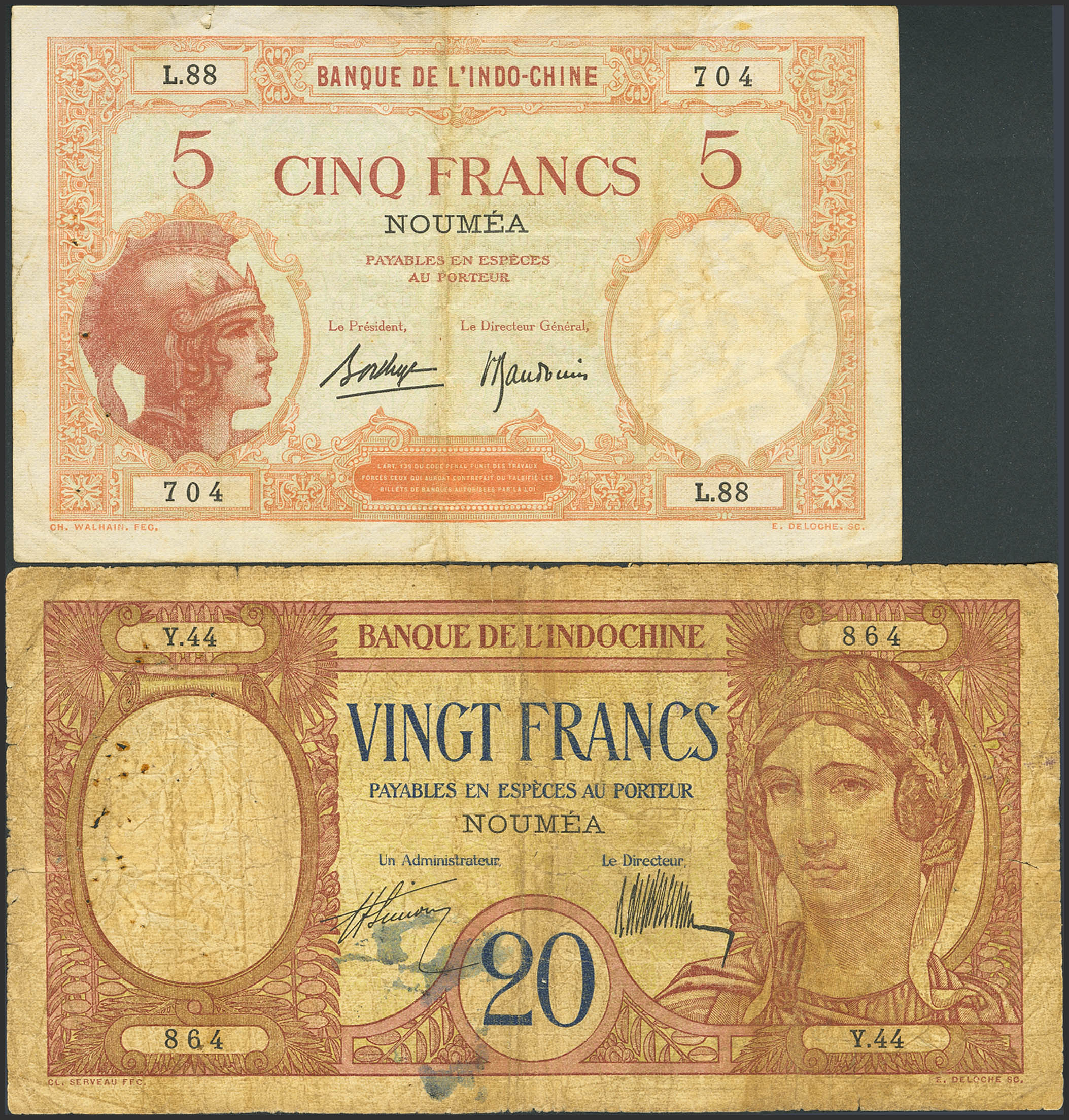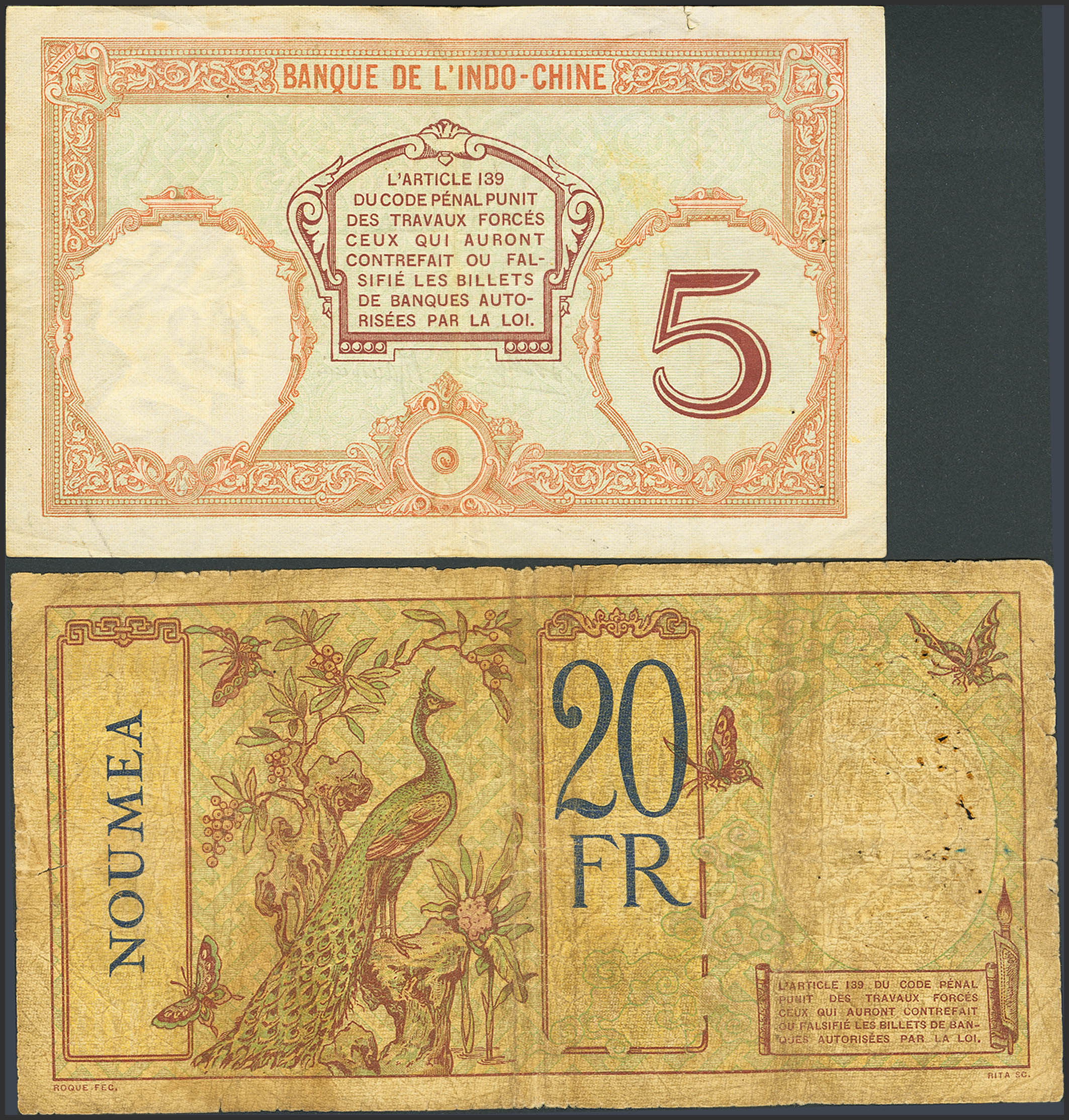 NEW CALEDONIA. 5 Francs and 20 Francs. (1941ca). (Pick: 36, 37). Very Fine / Fine.