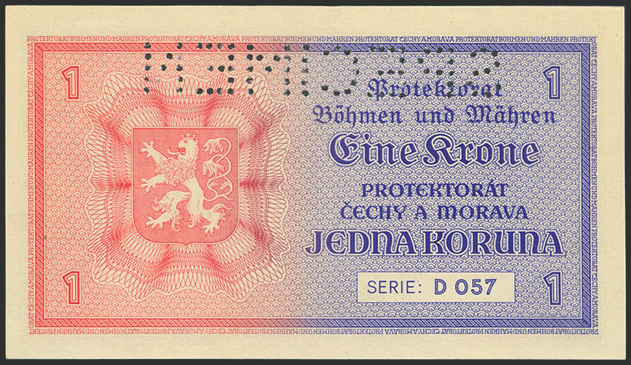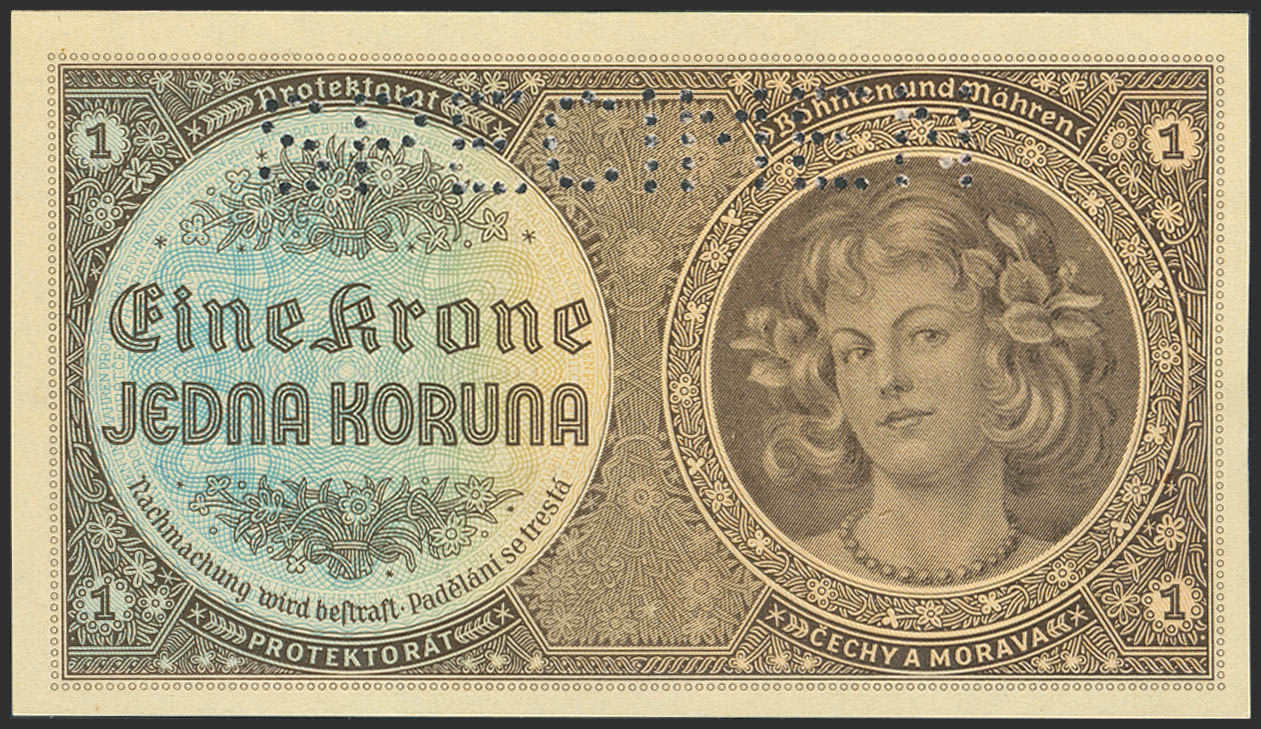 BOHEMIA AND MORAVIA. 1 Korun. (1940ca). SPECIMEN. (Pick: 3s). Uncirculated.