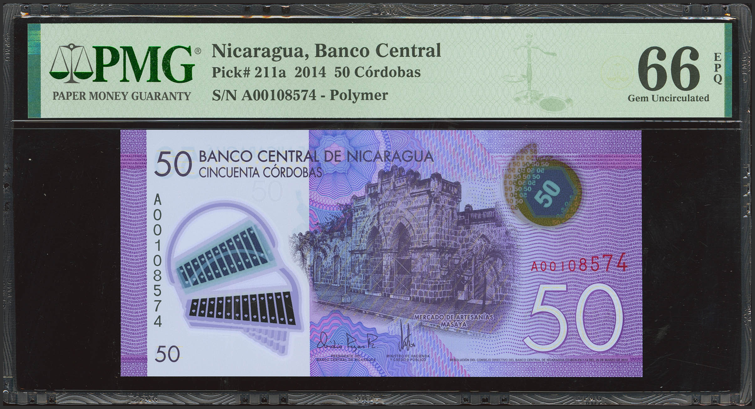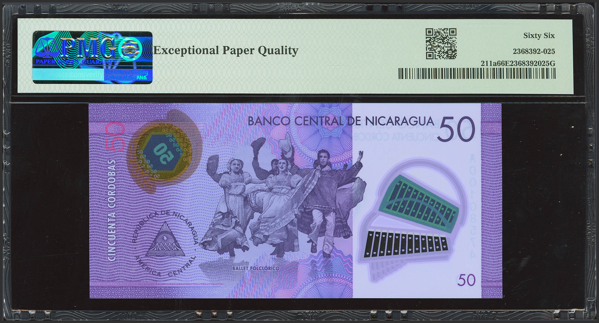 NICARAGUA. 50 Córdobas. 2014. (Pick: 211a). PMG66EPQ.