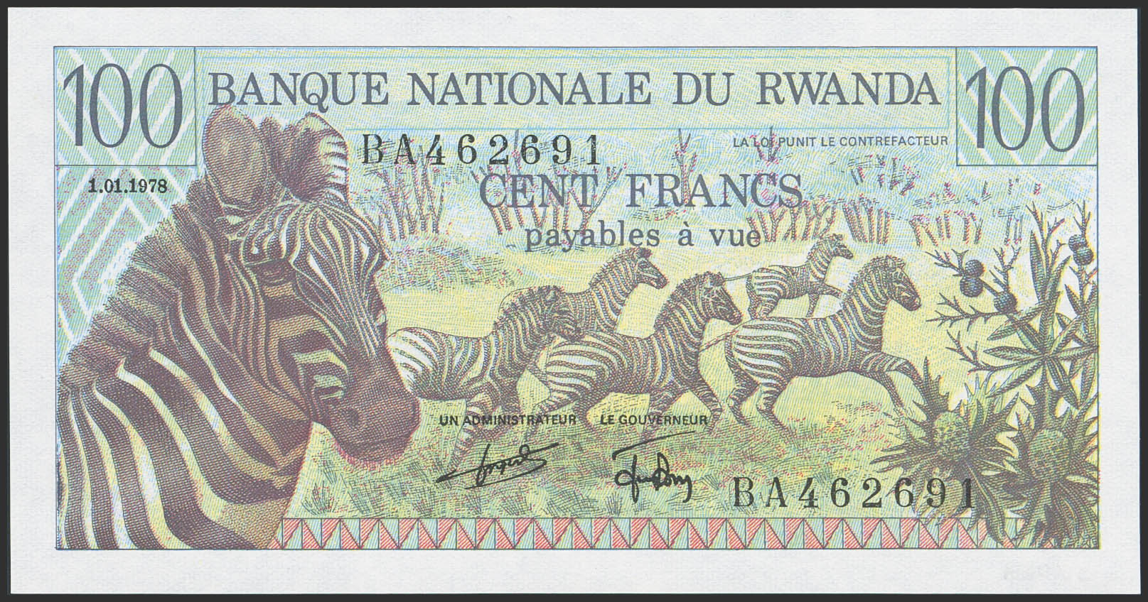 RWANDA. 100 Francs. 1 January 1978. (Pick: 12). Uncirculated.