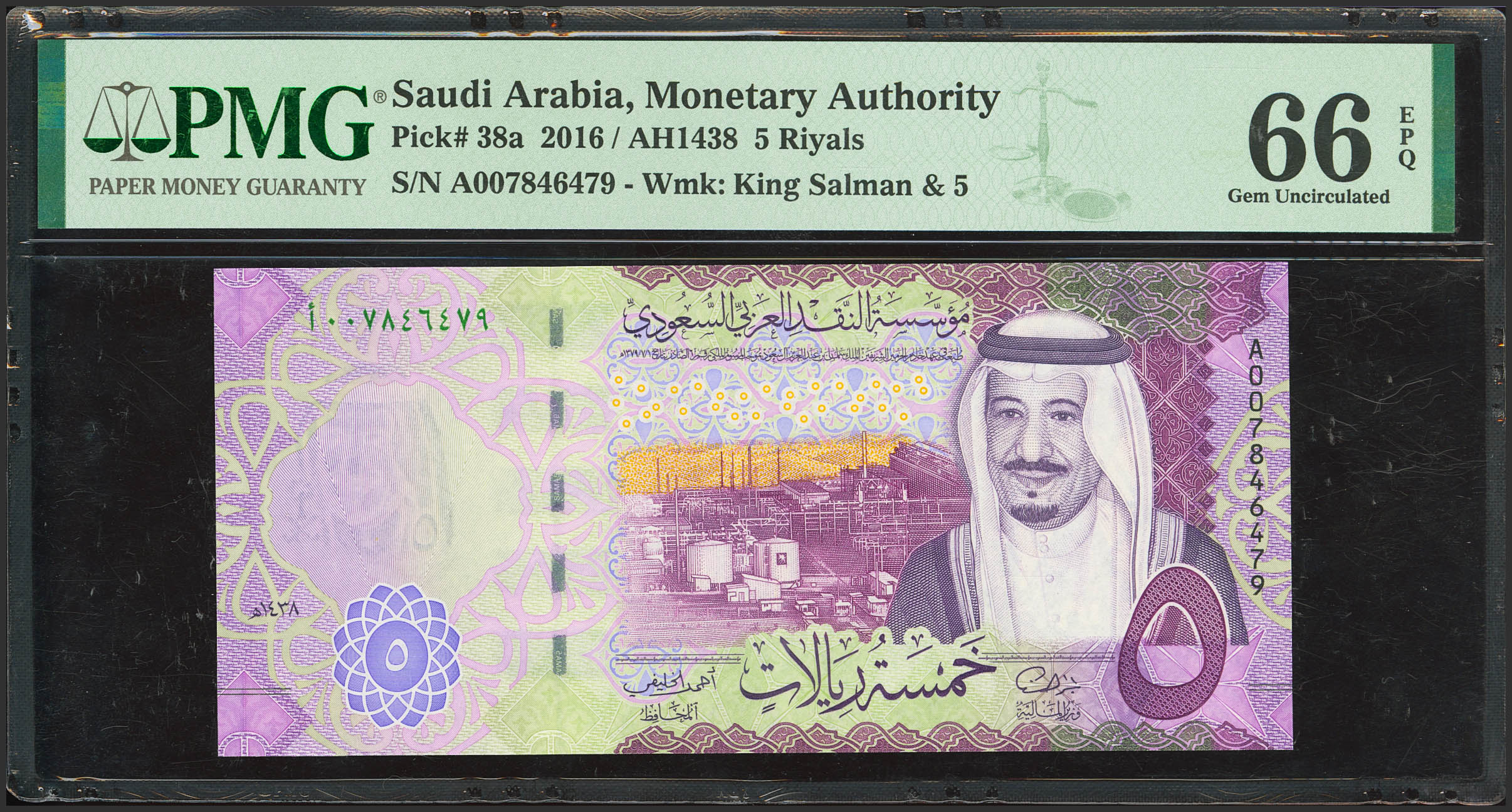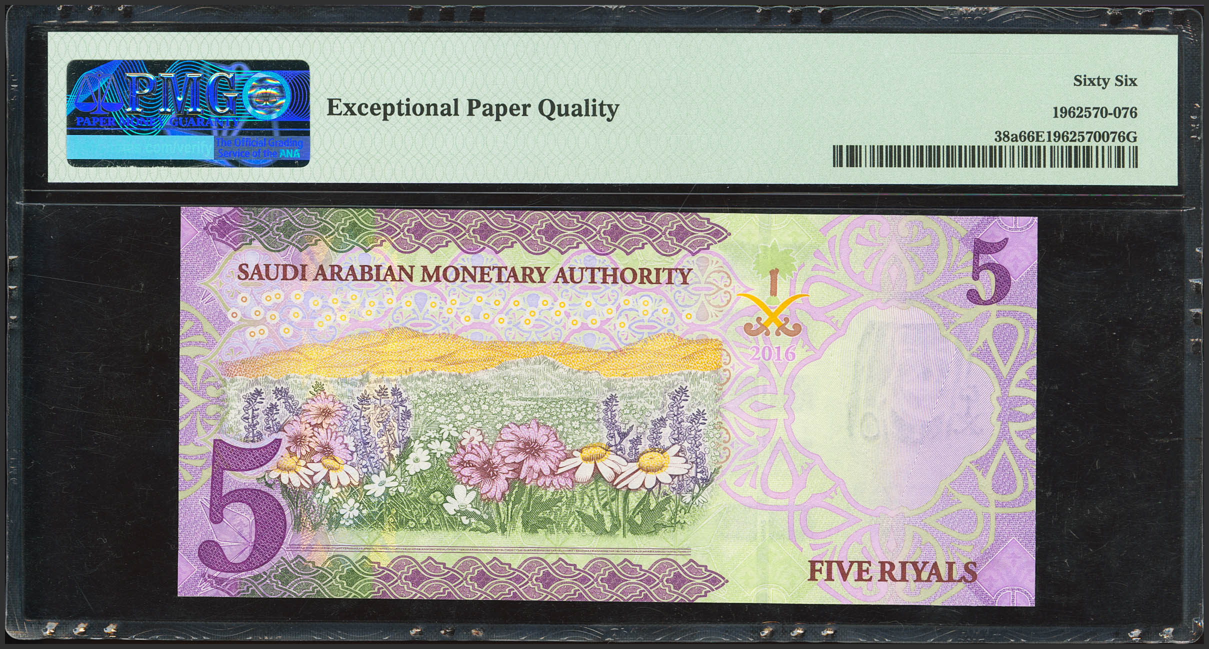 SAUDI ARABIA. 5 Riyals. 2016. (Pick: 38a). PMG66EPQ.