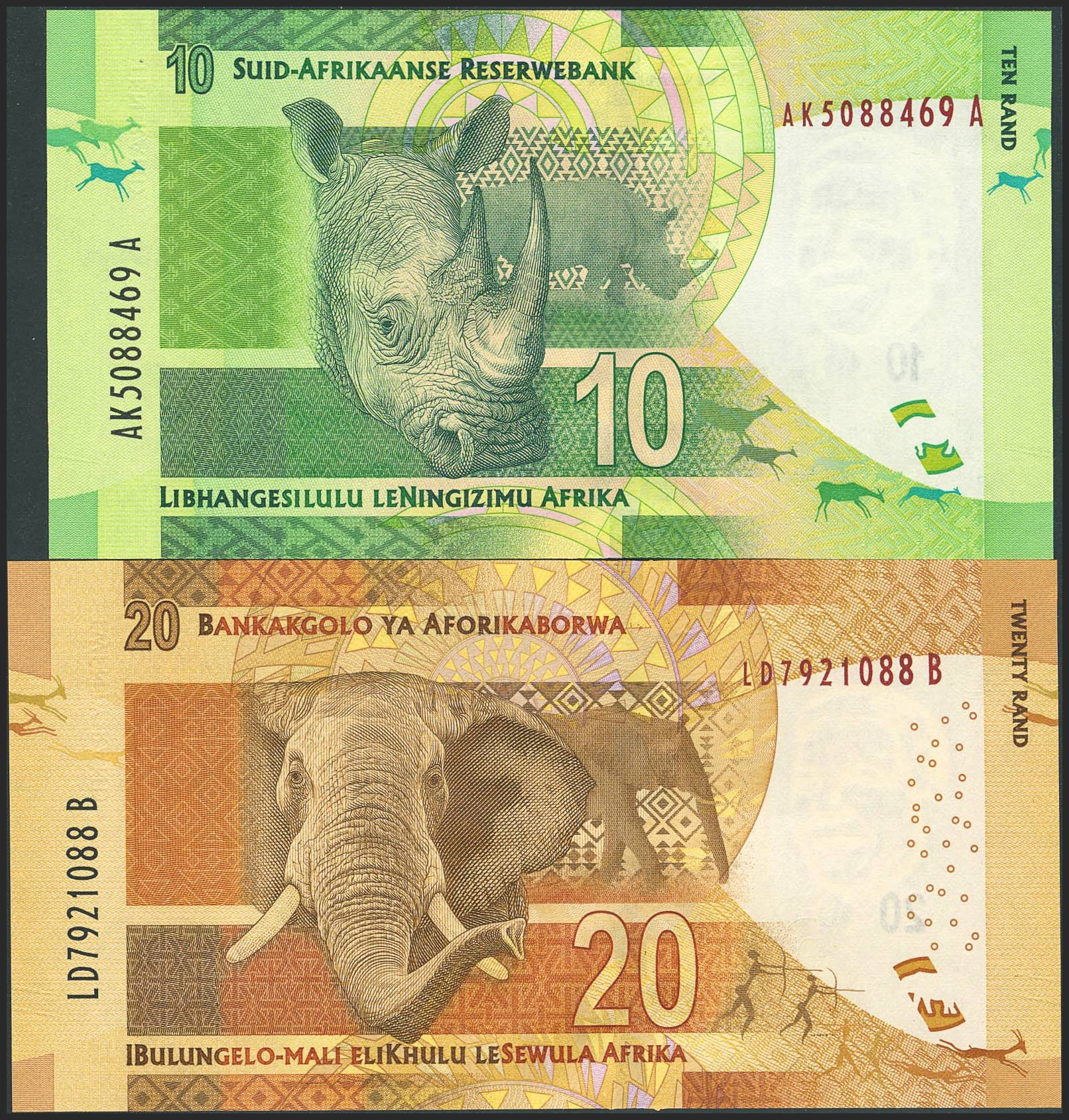 SOUTH AFRICA. 10 Rand and 20 Rand. 2018. (Pick: 143, 144). Uncirculated.