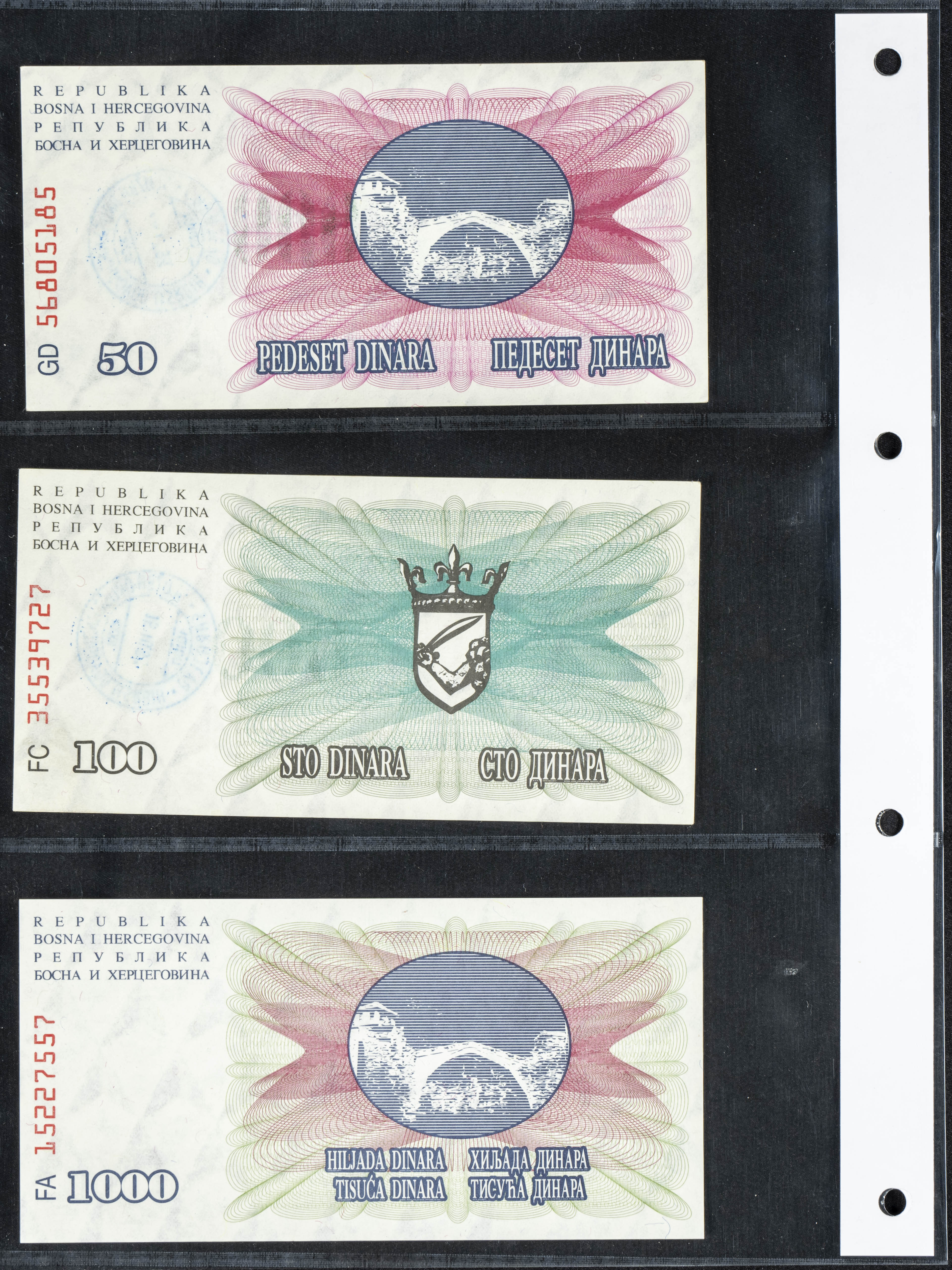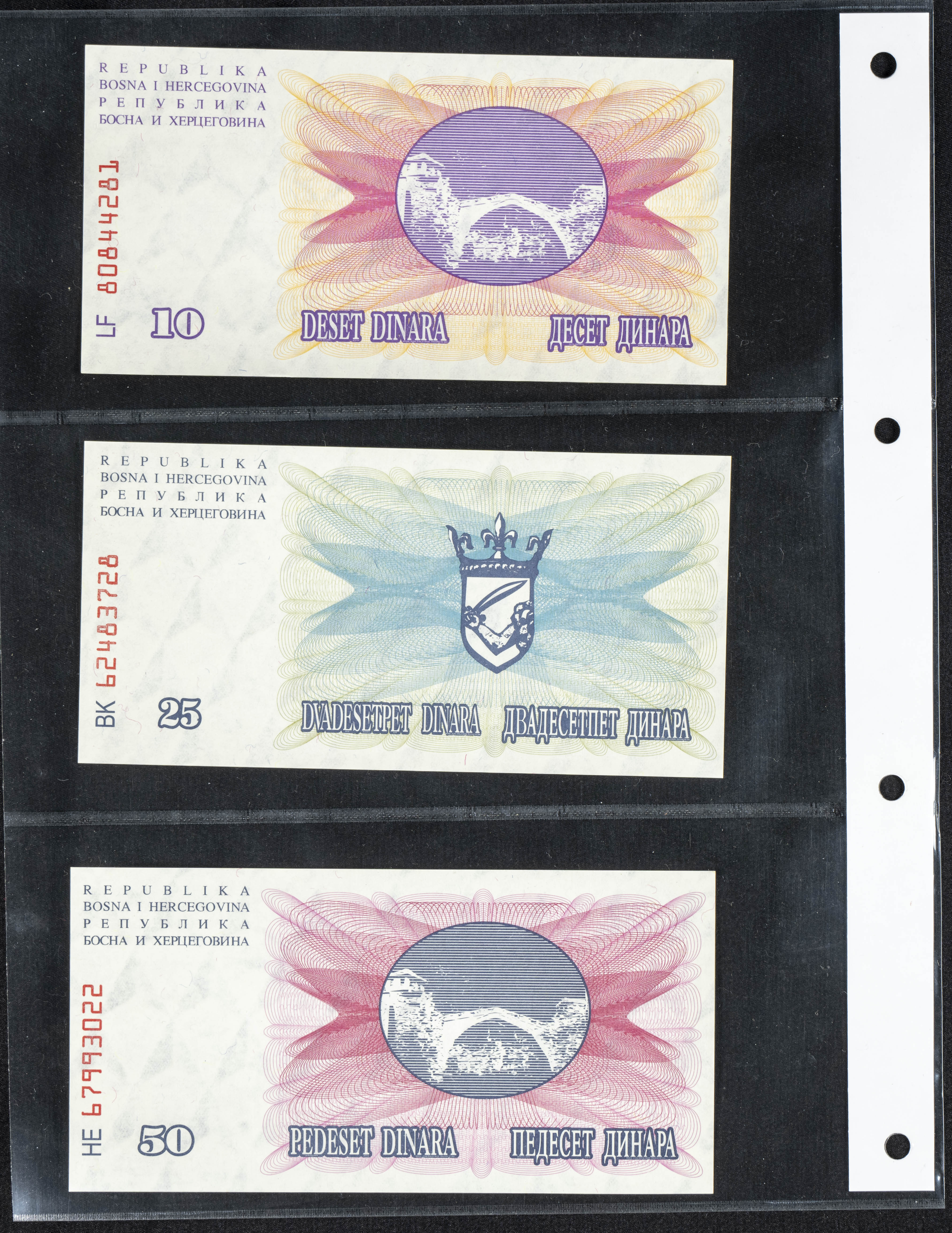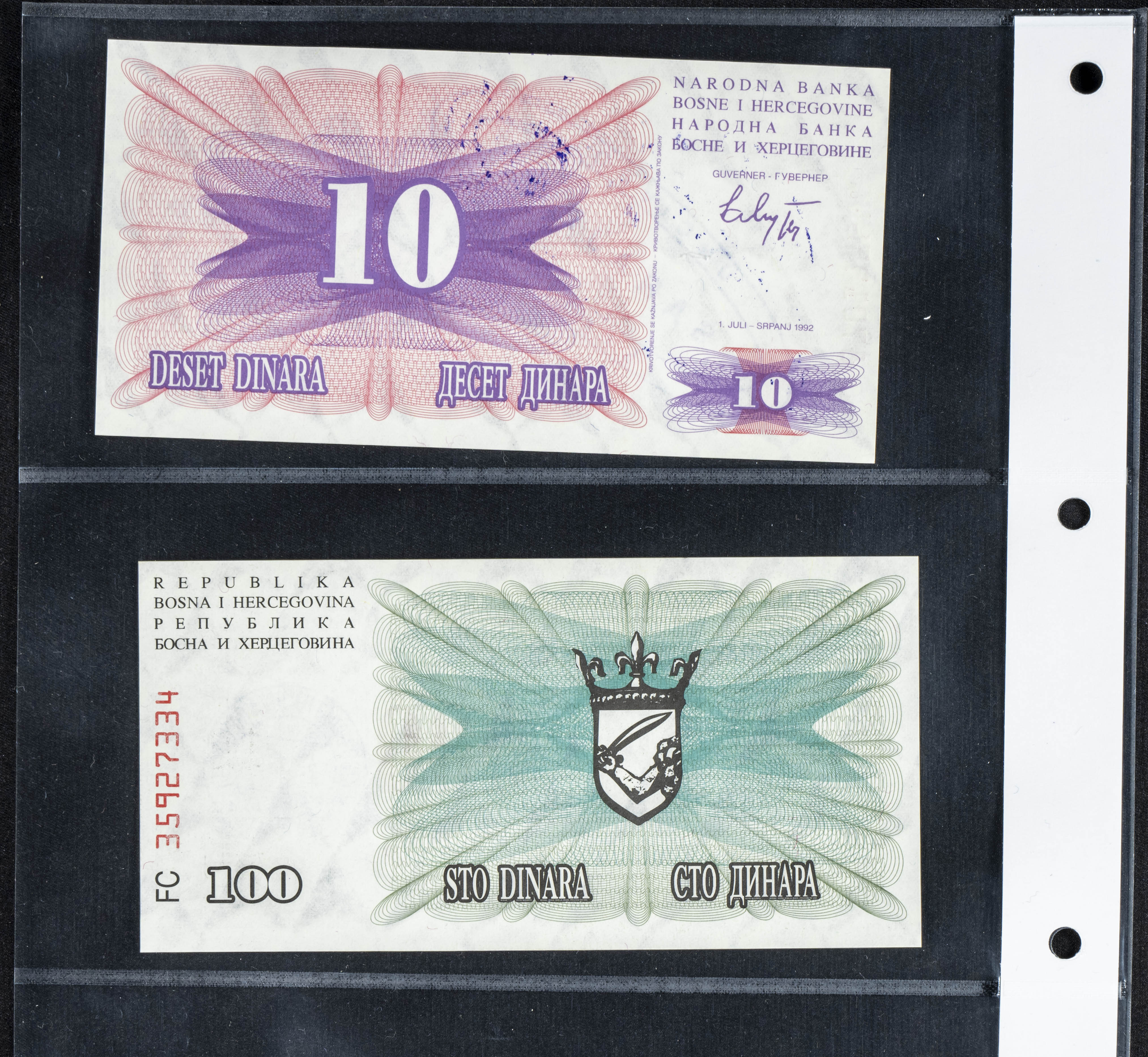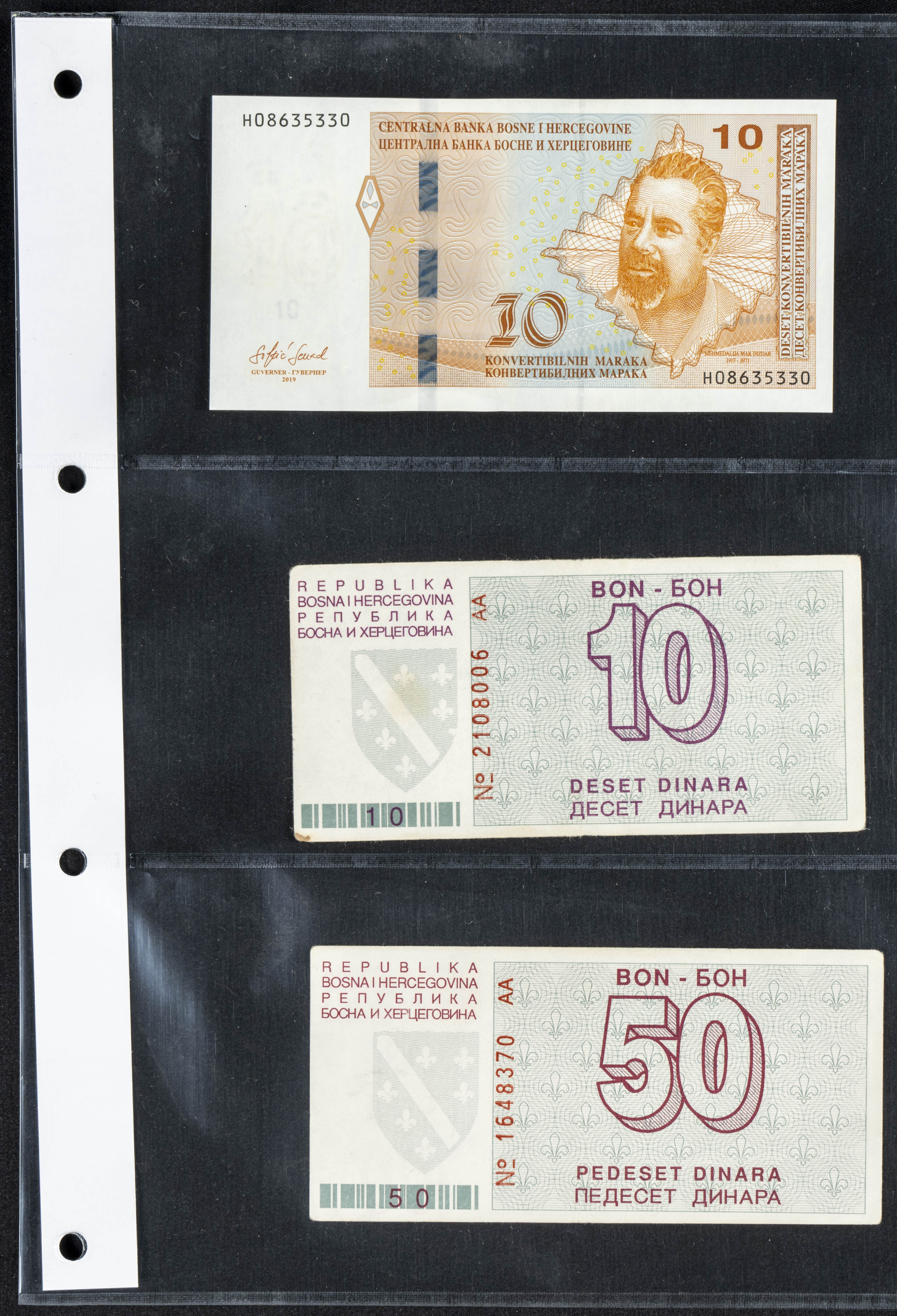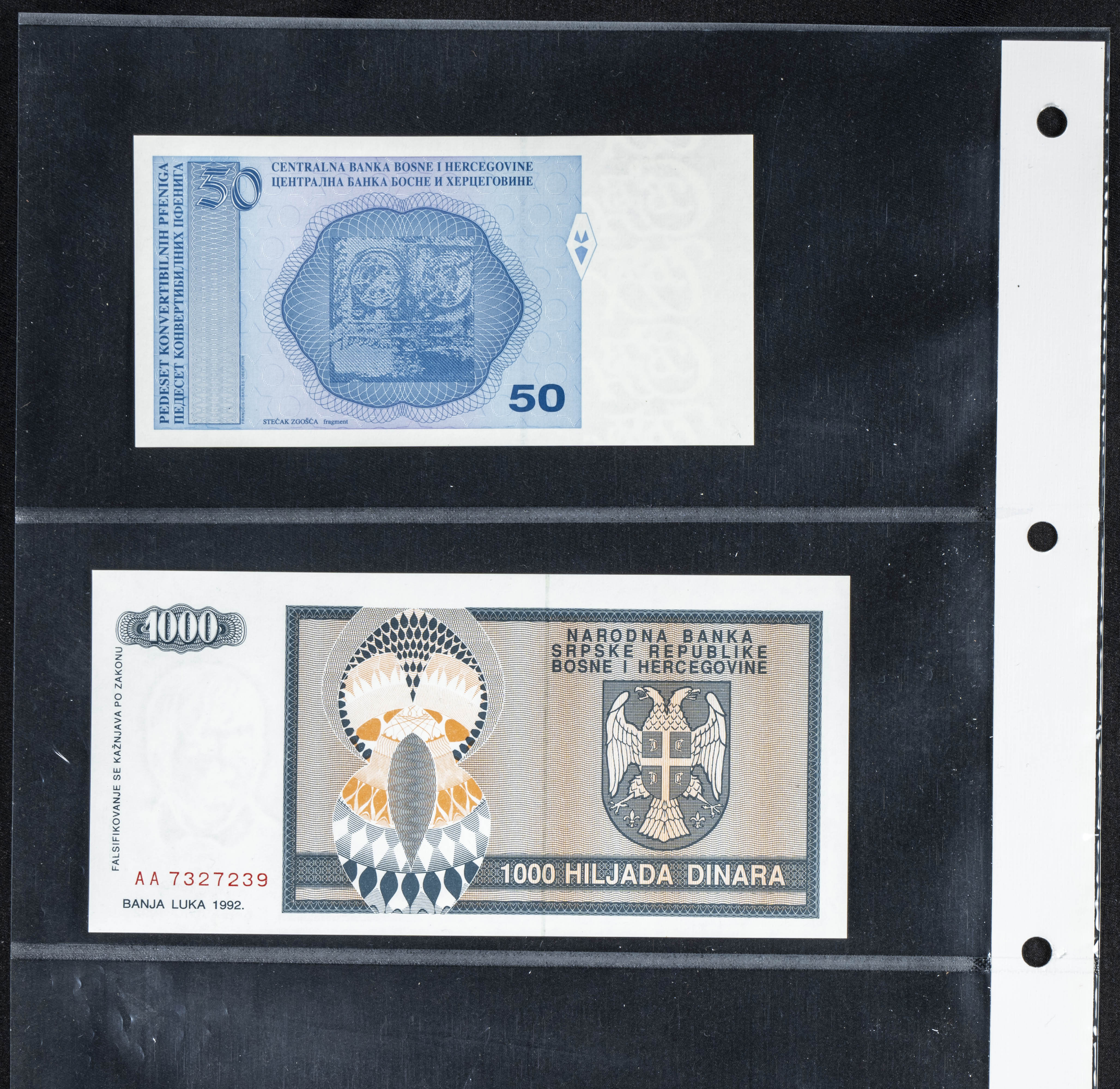 Set of more than 50 banknotes from Bosnia and Herzegovina of various issues, most of them nice qualities. TO EXAM.