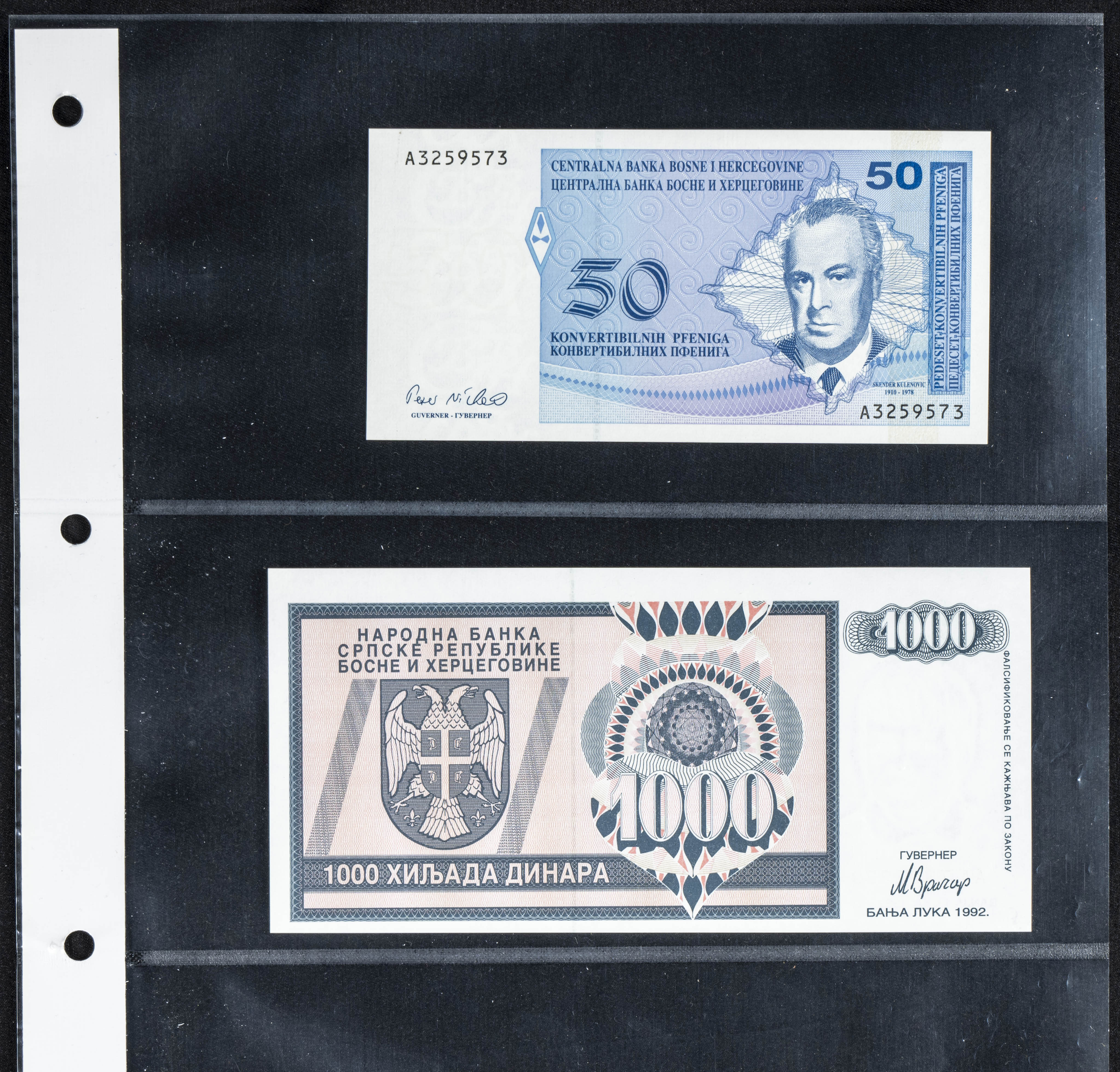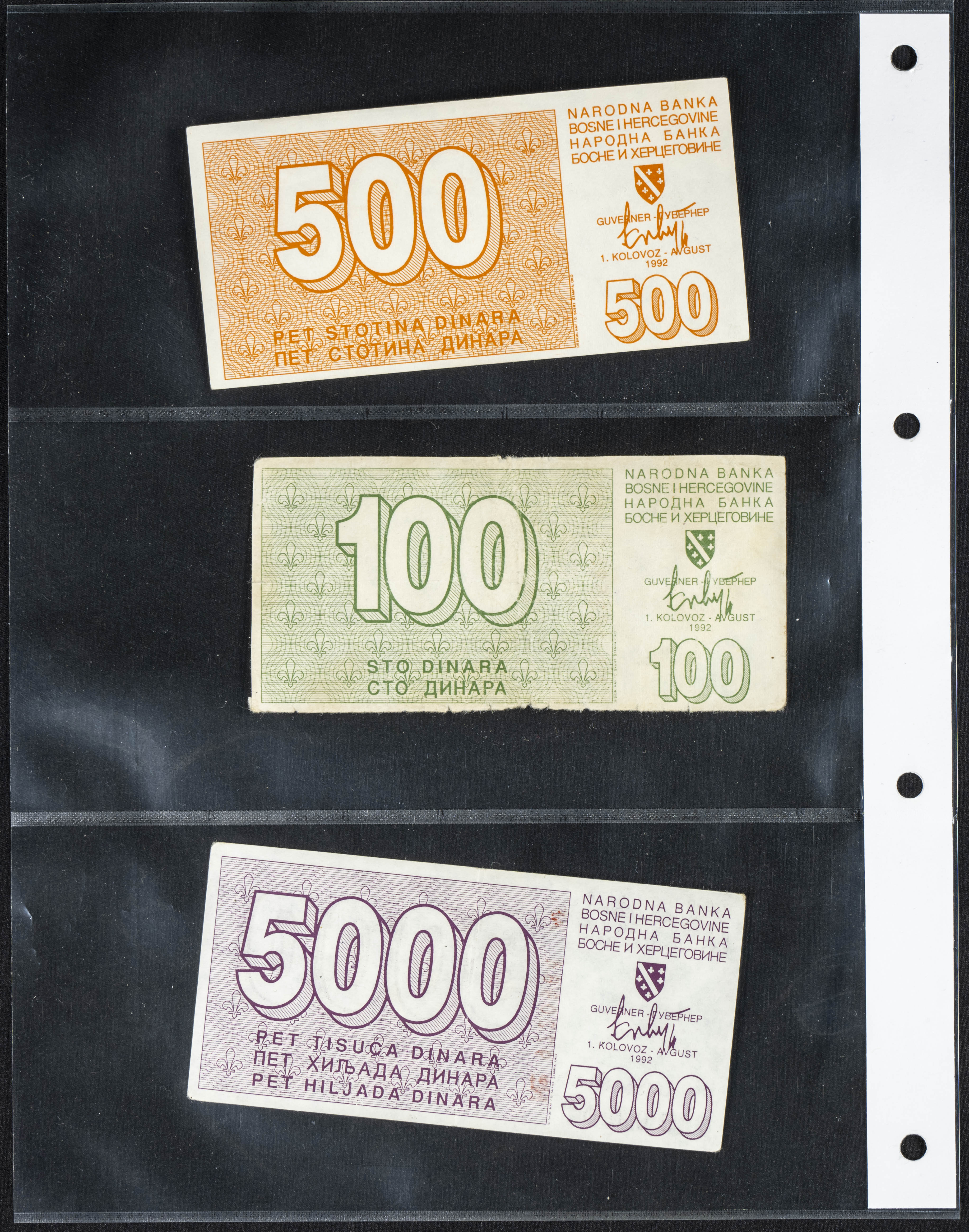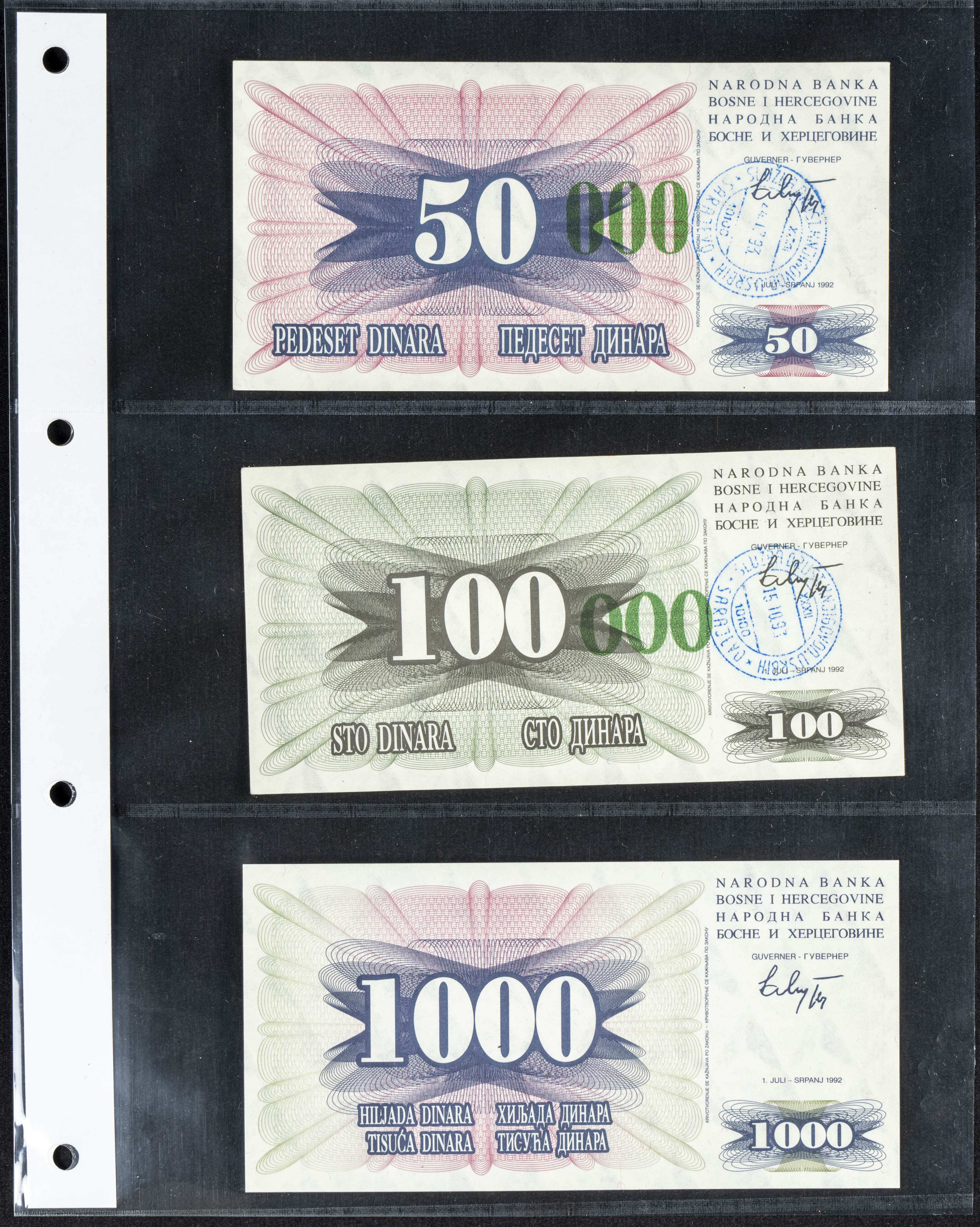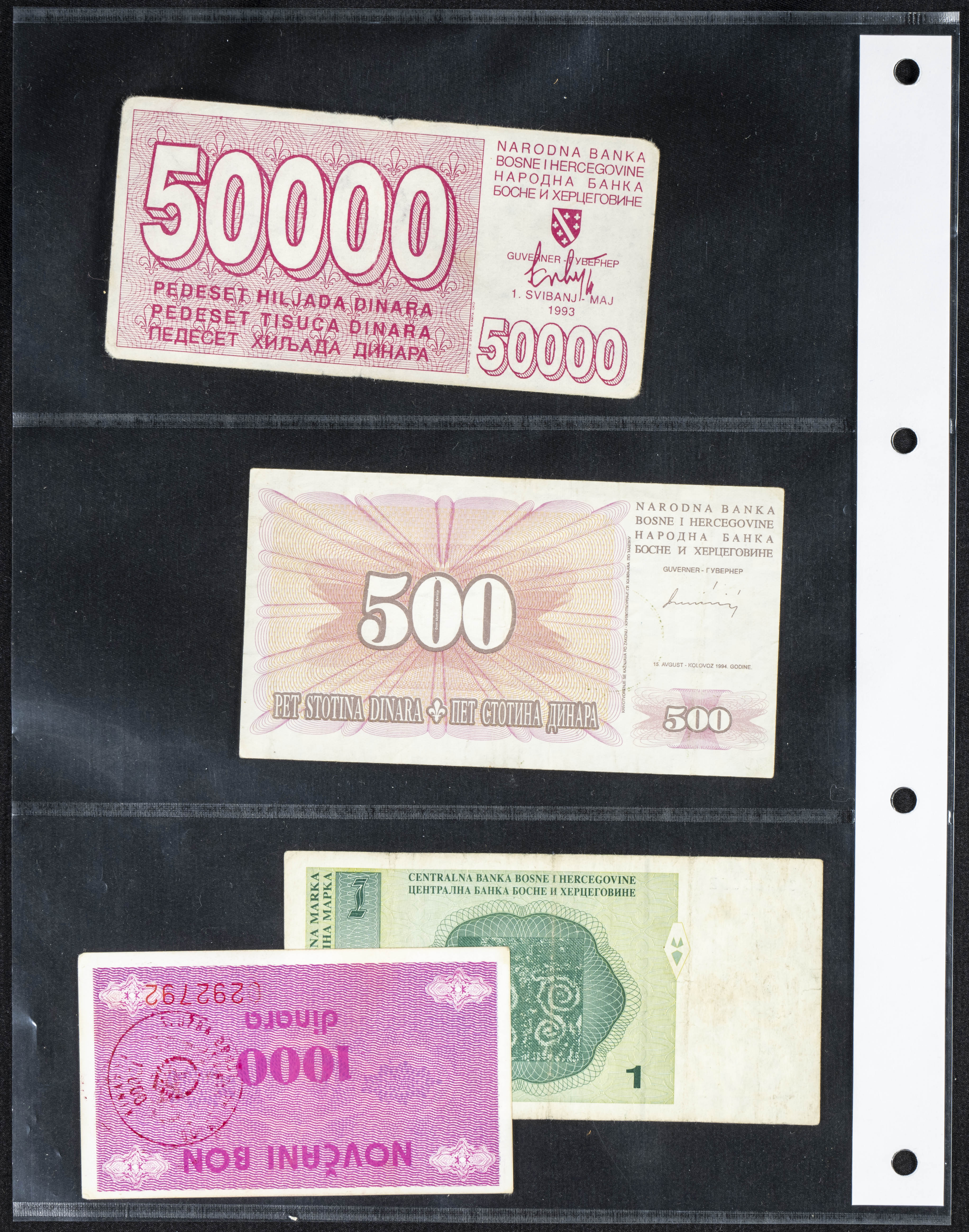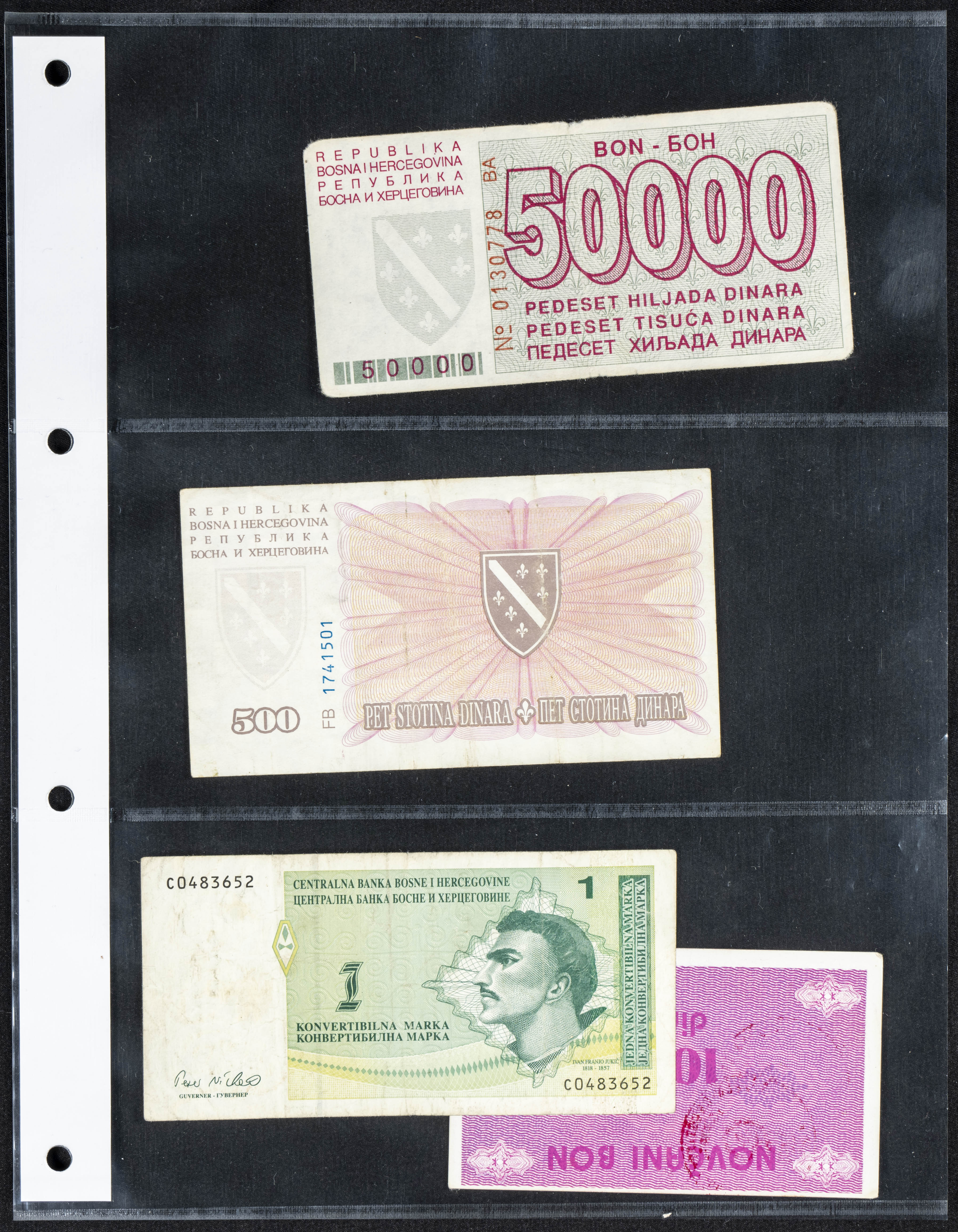 Set of more than 50 banknotes from Bosnia and Herzegovina of various issues, most of them nice qualities. TO EXAM.