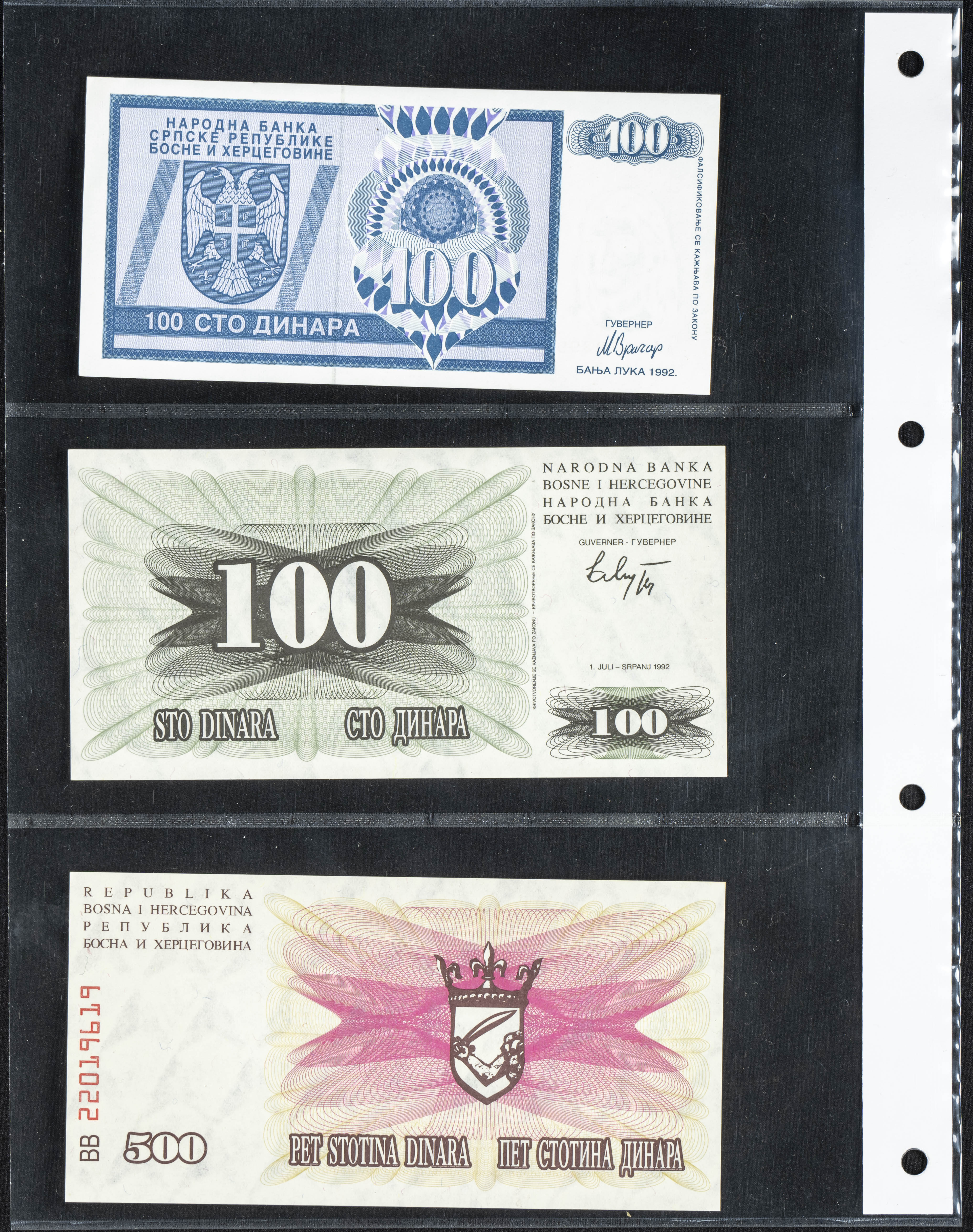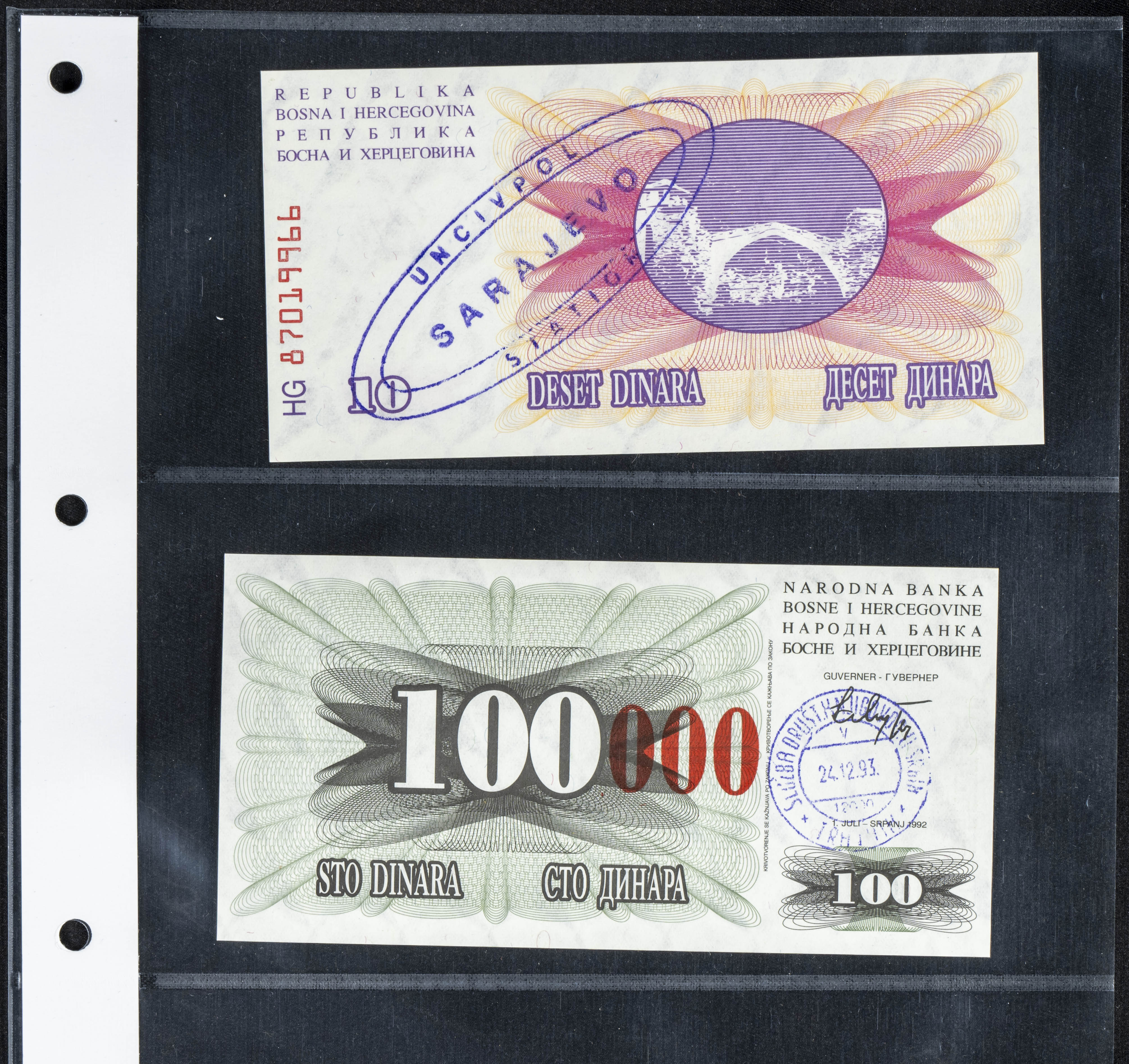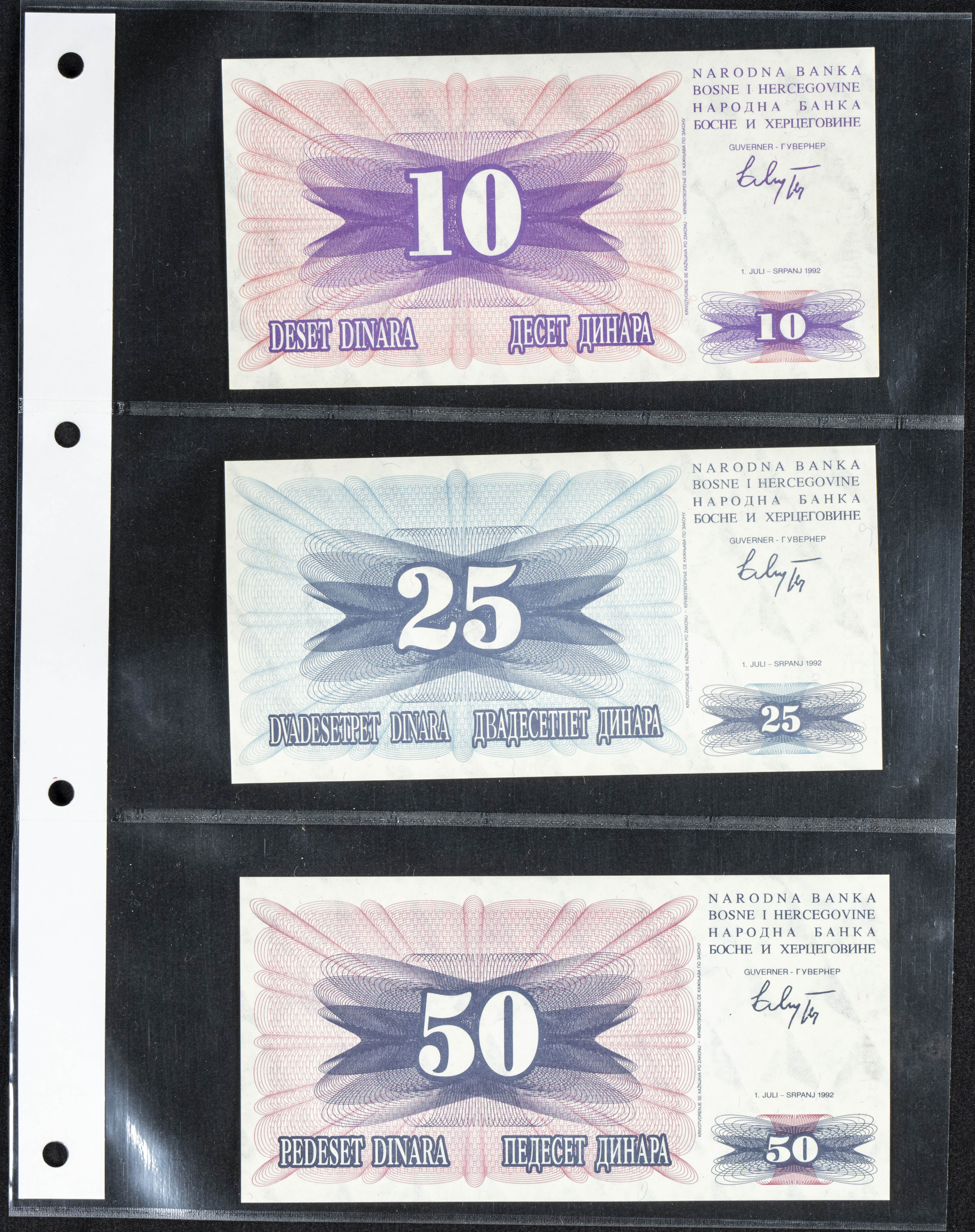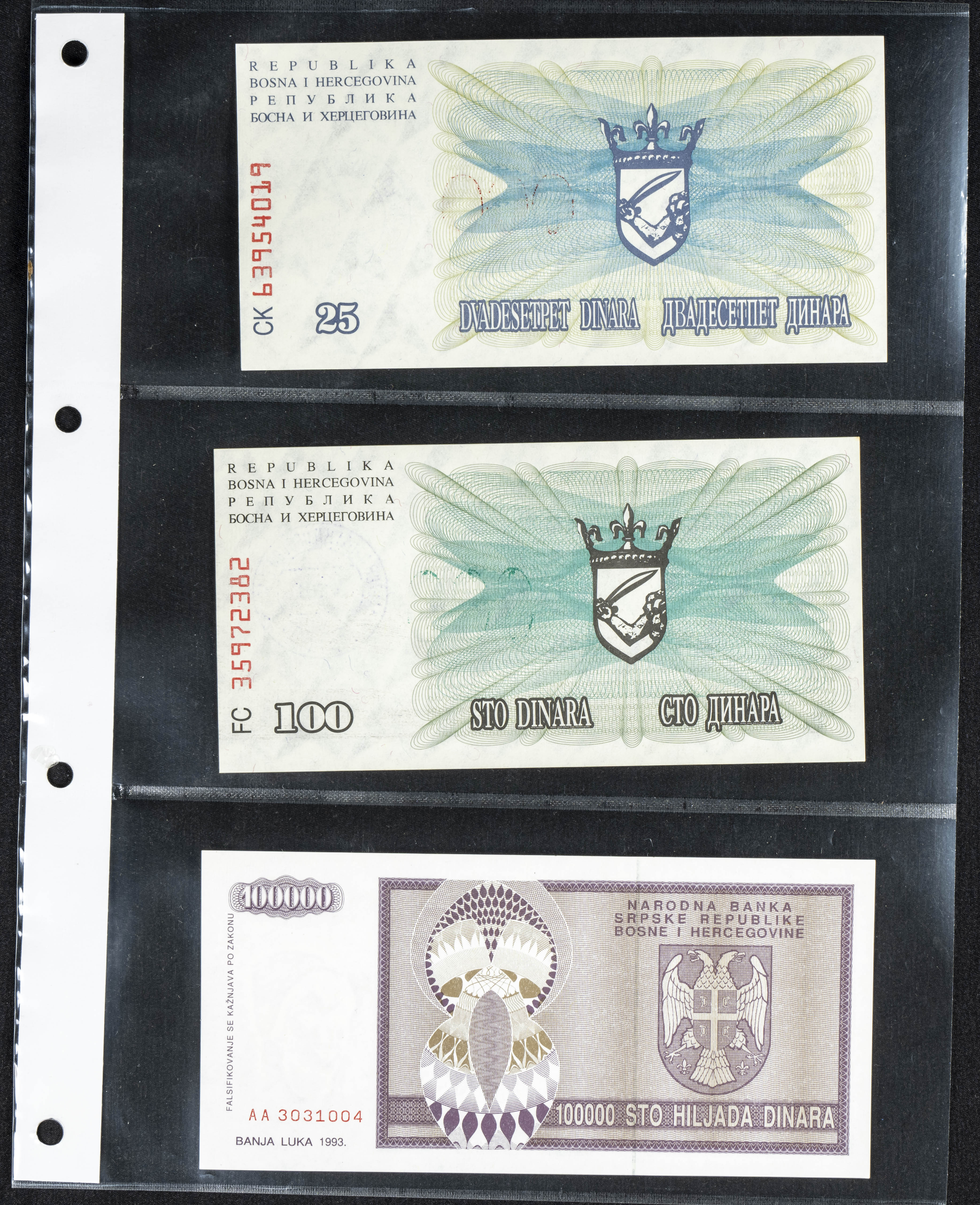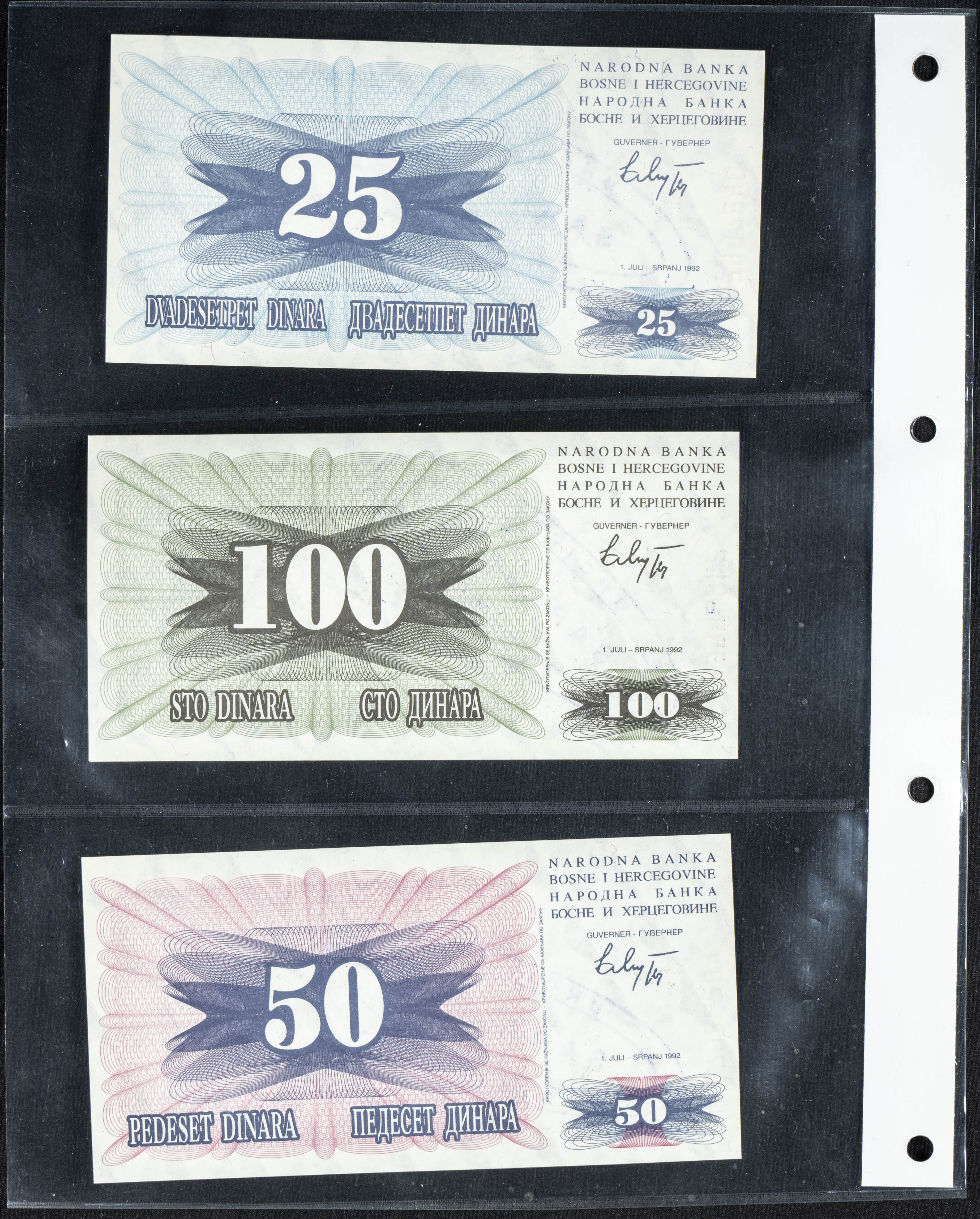 Set of more than 50 banknotes from Bosnia and Herzegovina of various issues, most of them nice qualities. TO EXAM.