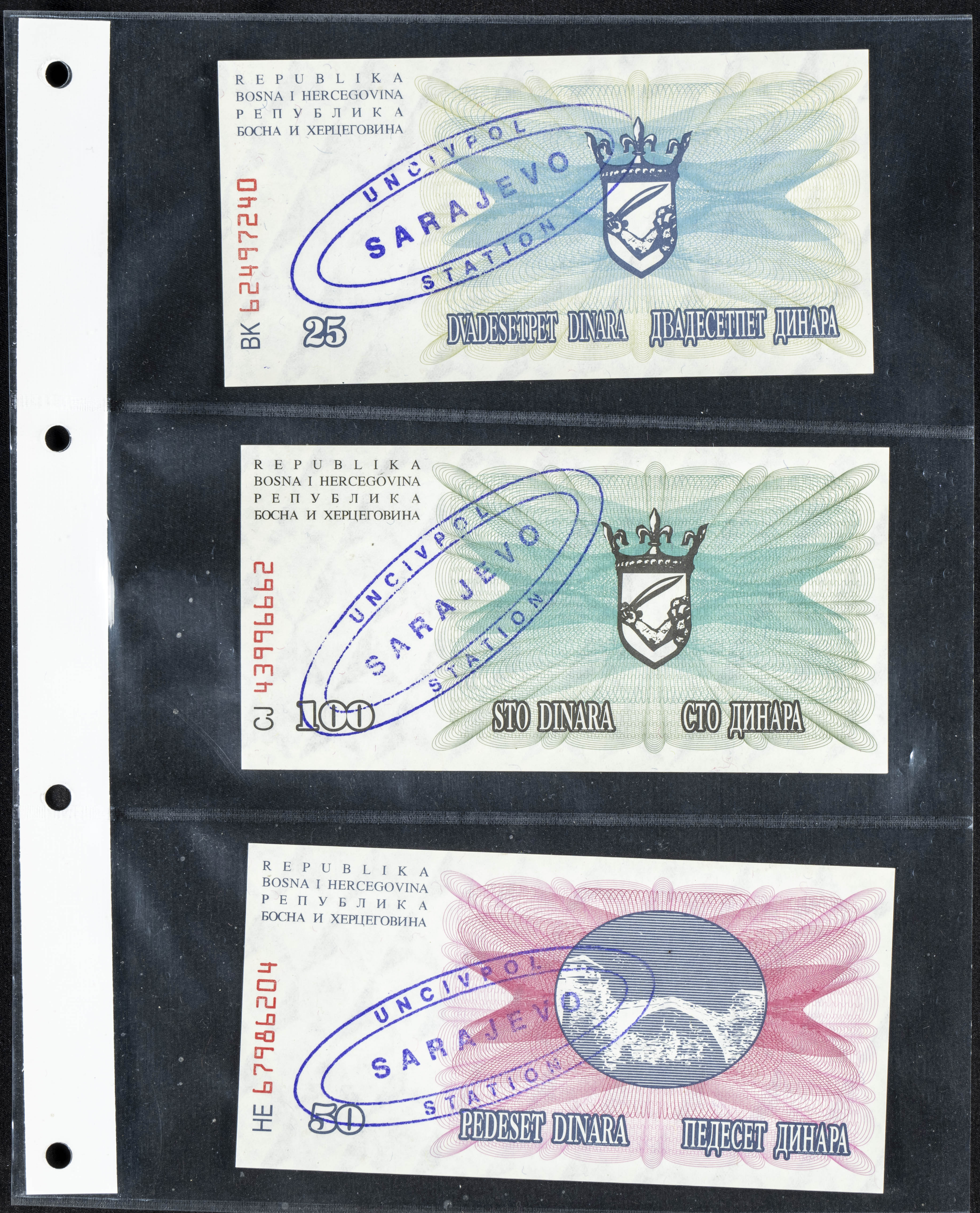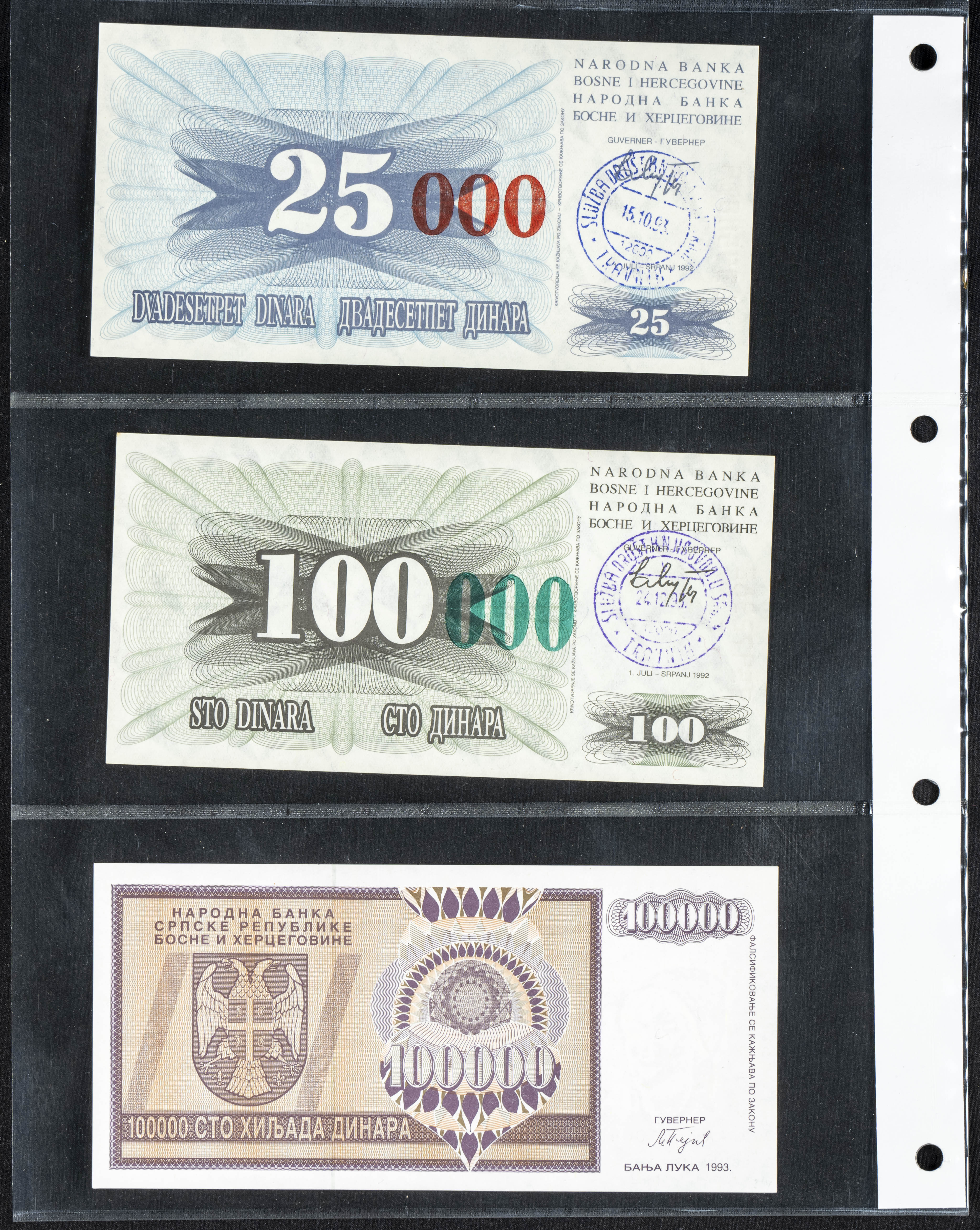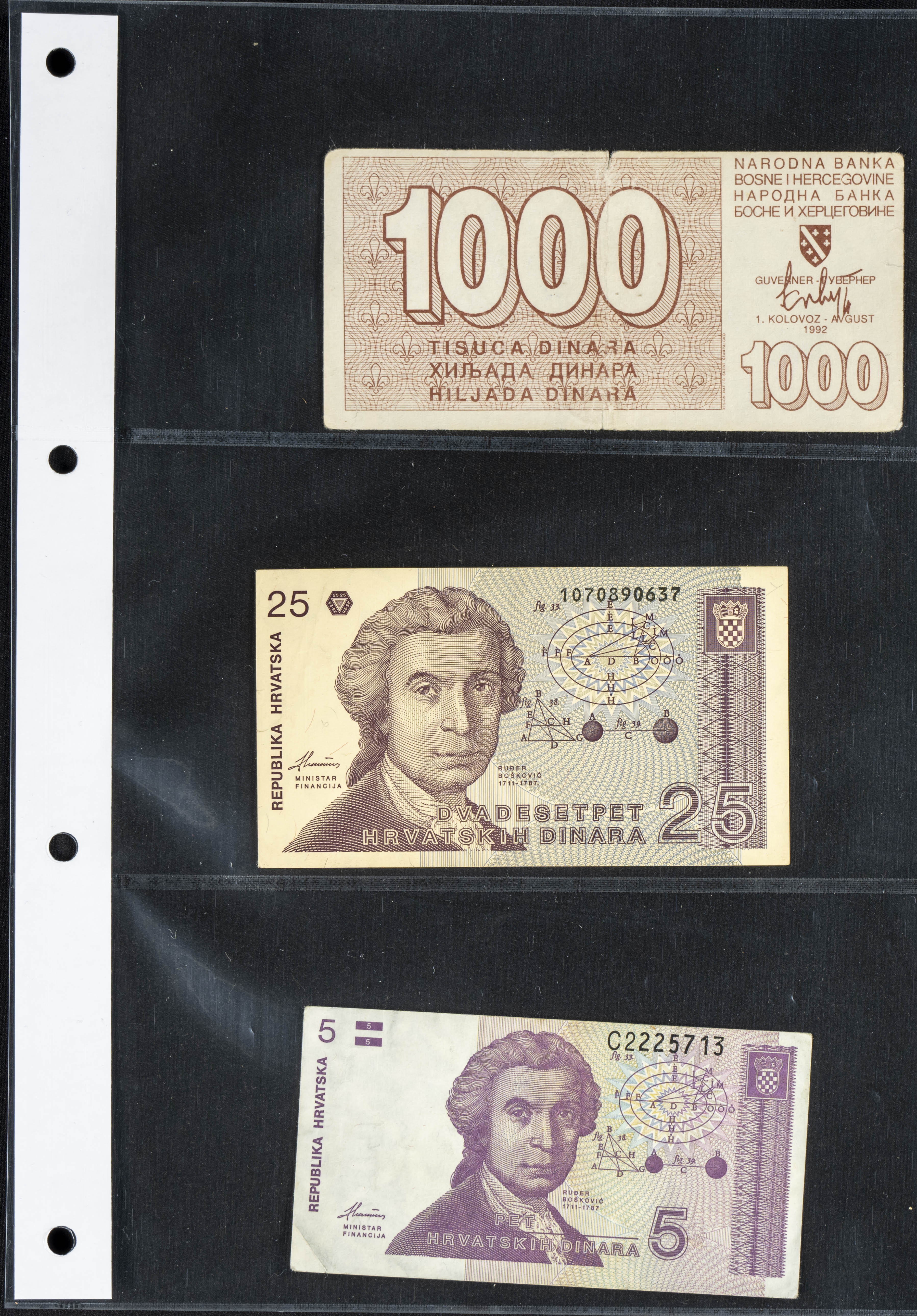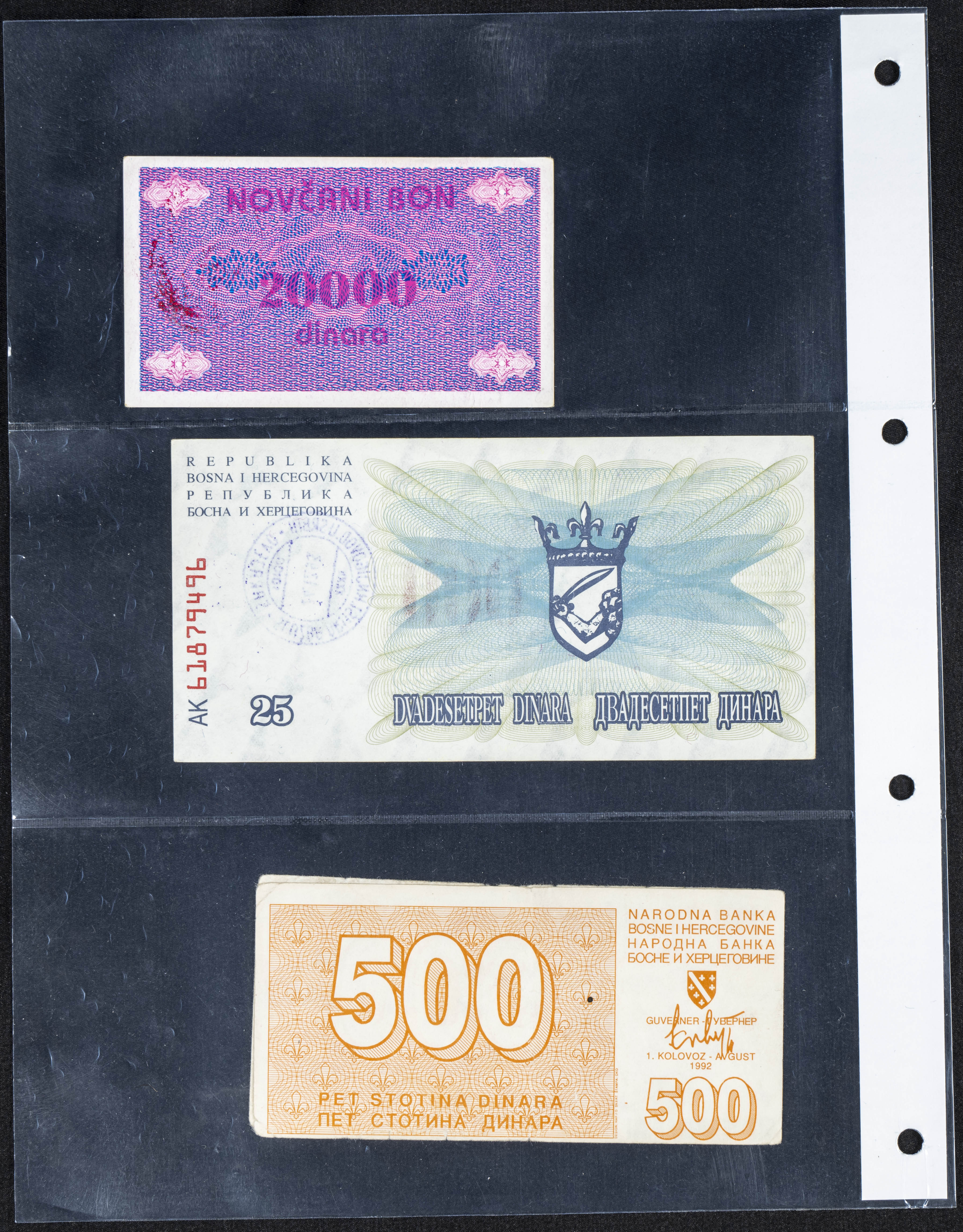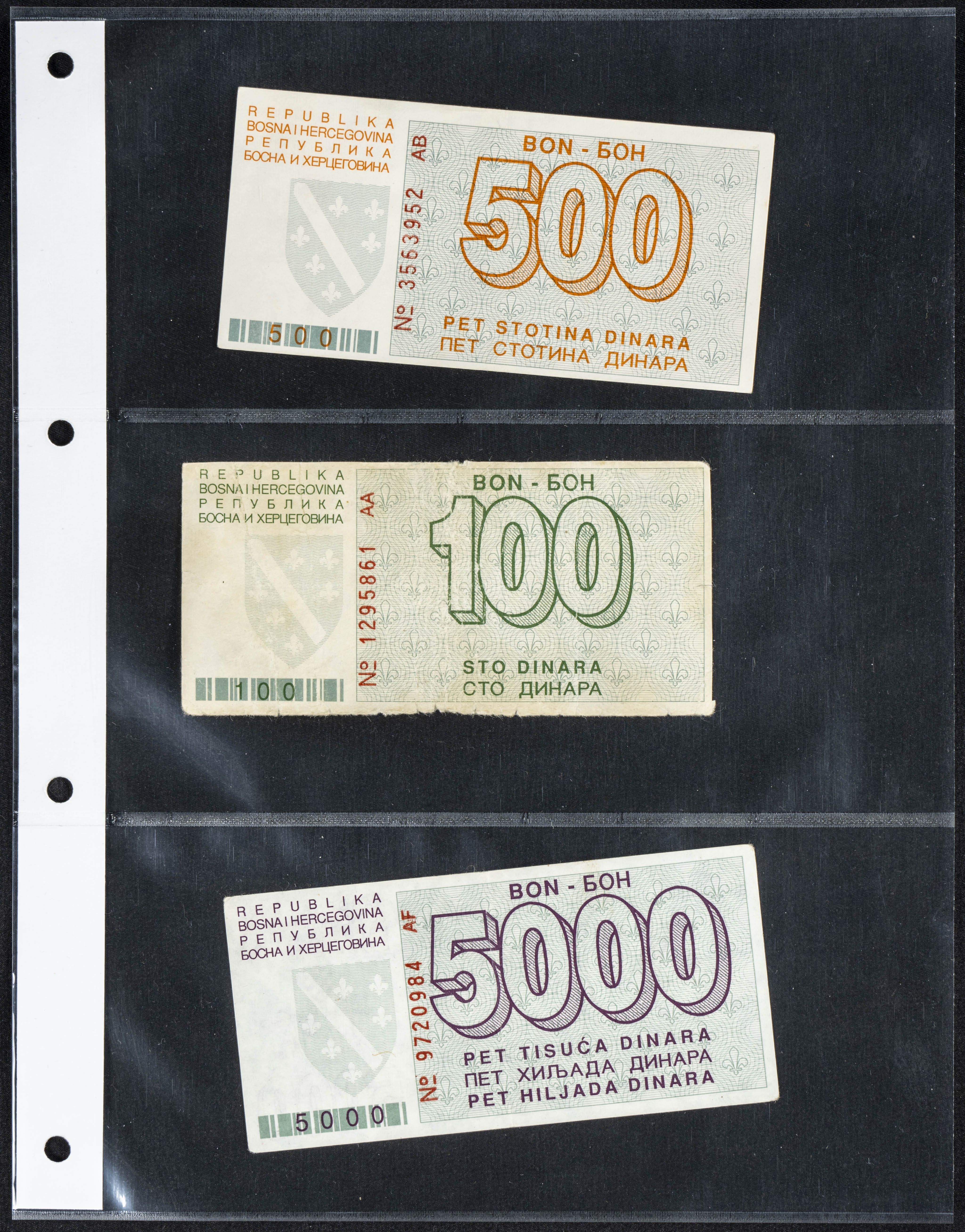 Set of more than 50 banknotes from Bosnia and Herzegovina of various issues, most of them nice qualities. TO EXAM.