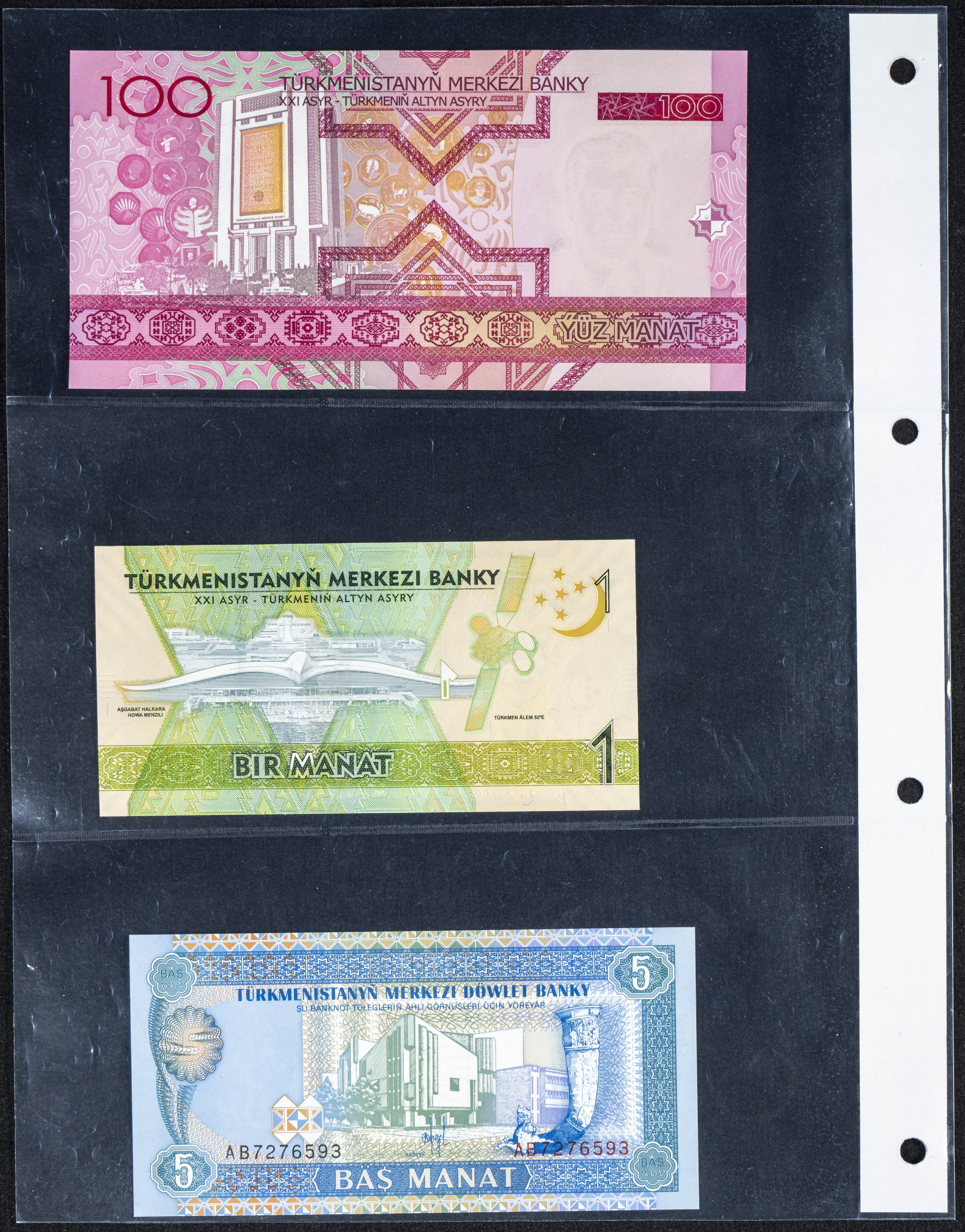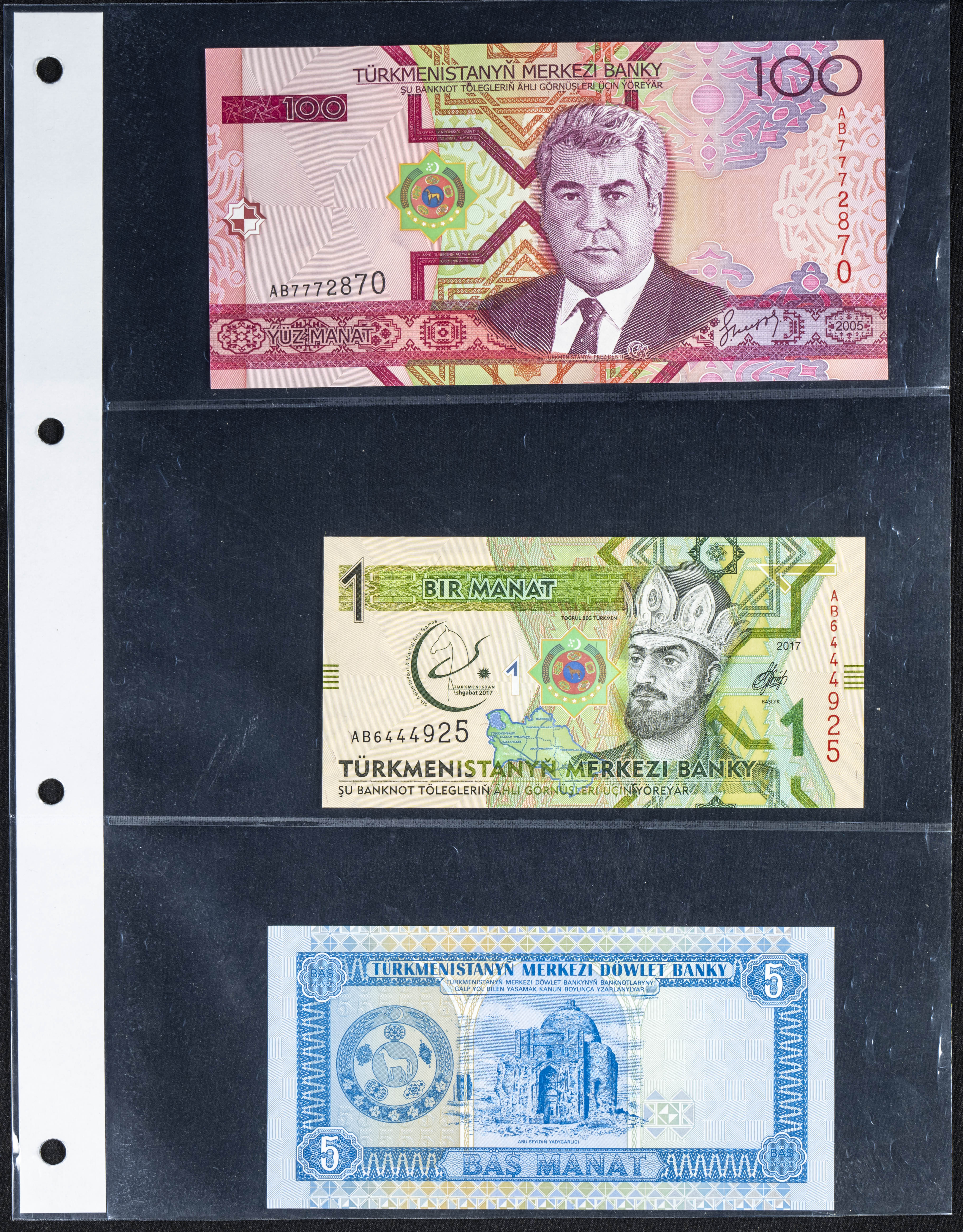 Set of 5 banknotes from Turkmenistan of various issues, most of them nice qualities. TO EXAM.