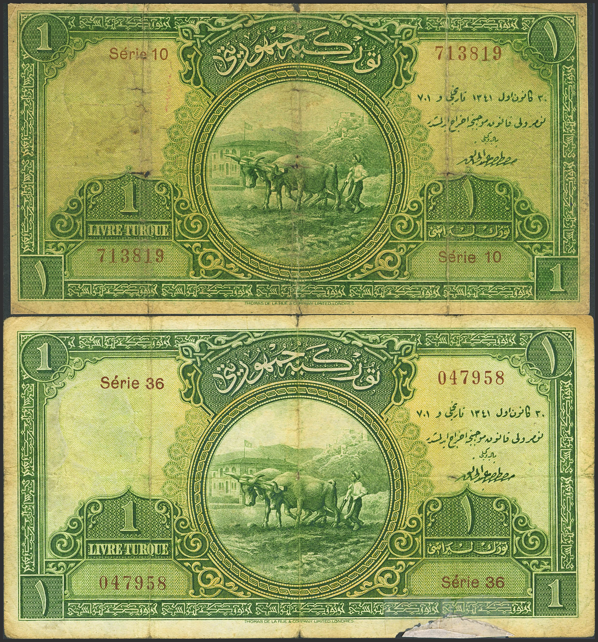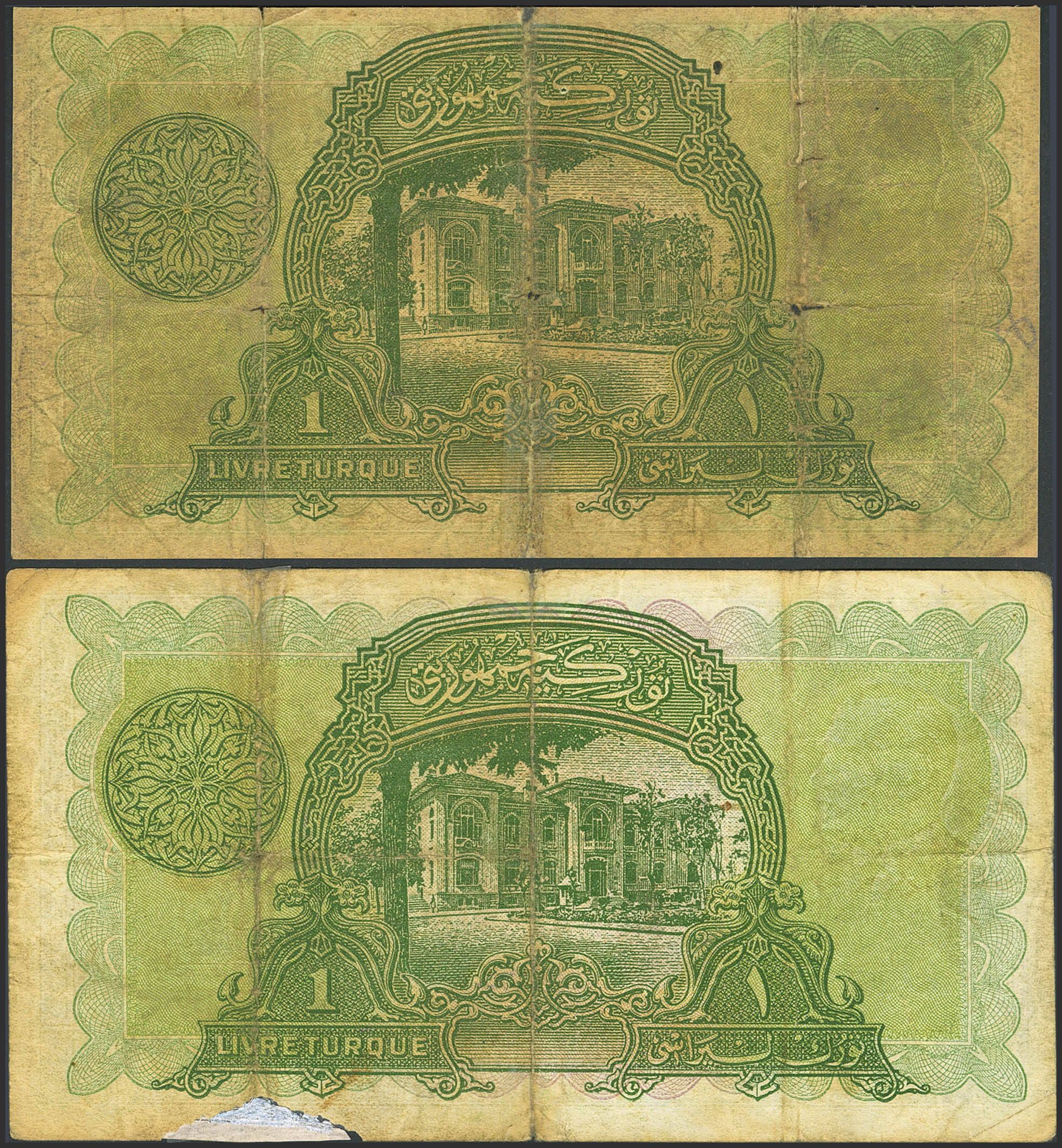 TURKEY. 1 Livre. (1927ca). (Pick: 119(2)). Repaired. Good.