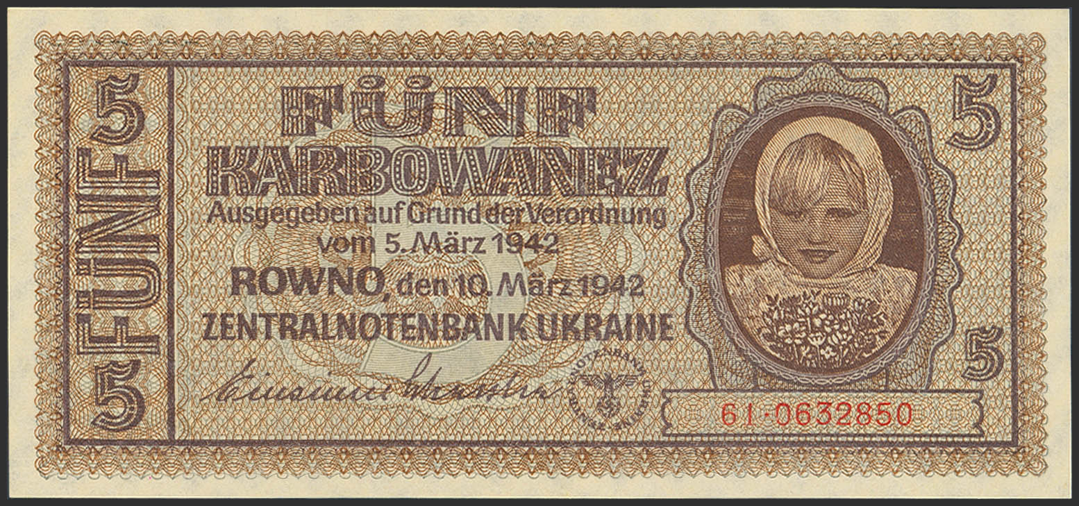 UKRAINE. 5 Karbowanez. 10 March 1942. (Pick: 51). Unusual. Uncirculated.