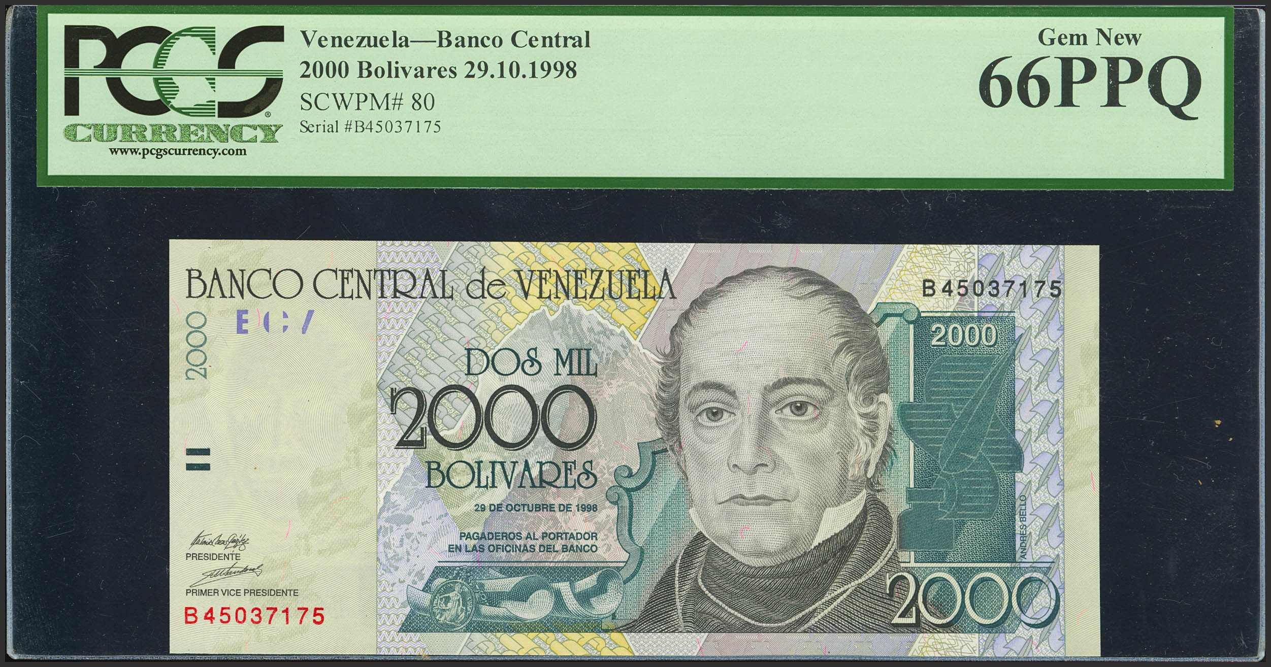 VENEZUELA. 2000 Bolivares. 29 October 1998. (Pick: 80). PCGS66PPQ.