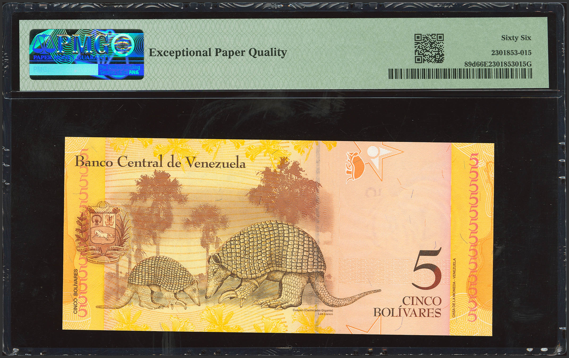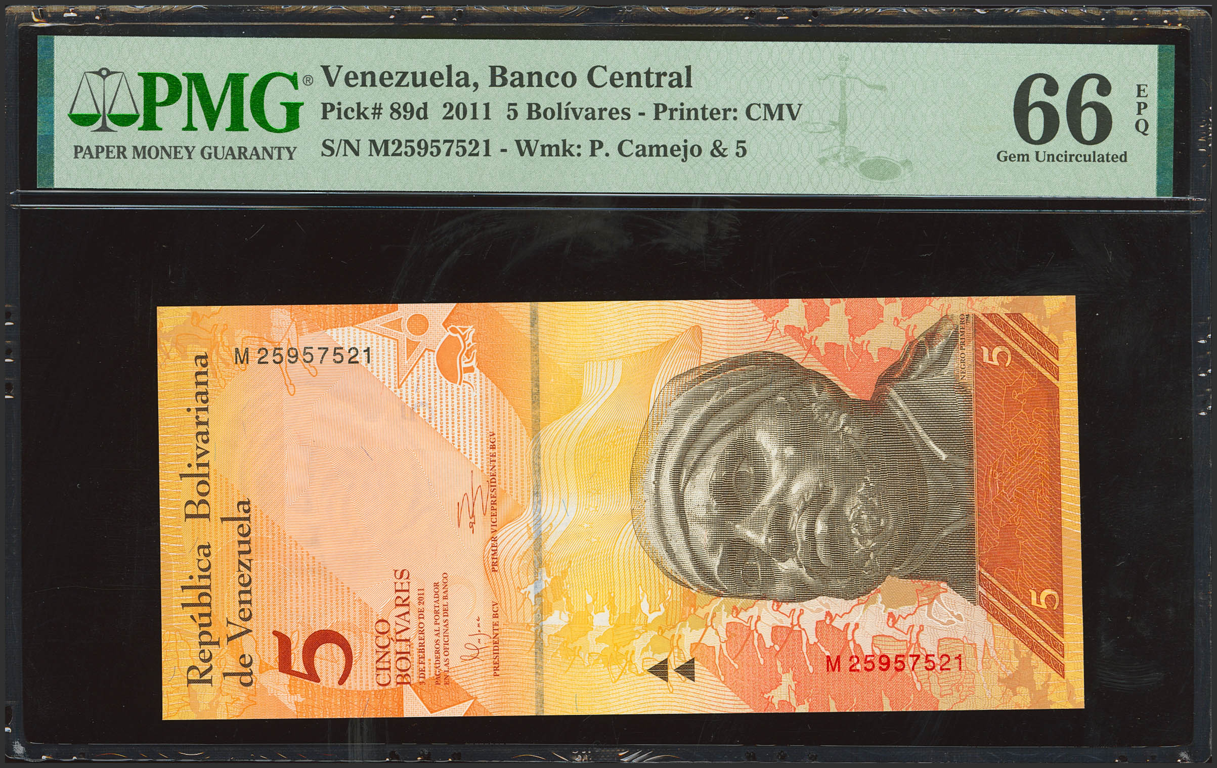 VENEZUELA. 5 Bolívares. 2011. (Pick: 89d). PMG66EPQ.