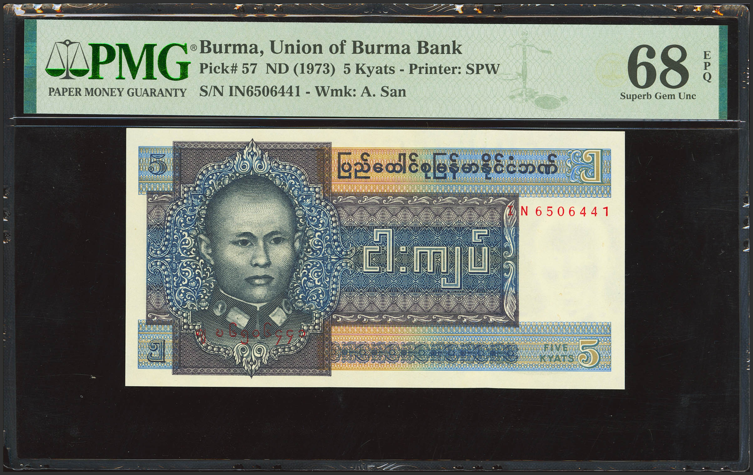 BURMA. 5 Kyats. (1973ca). (Pick: 57). PMG68EPQ.
