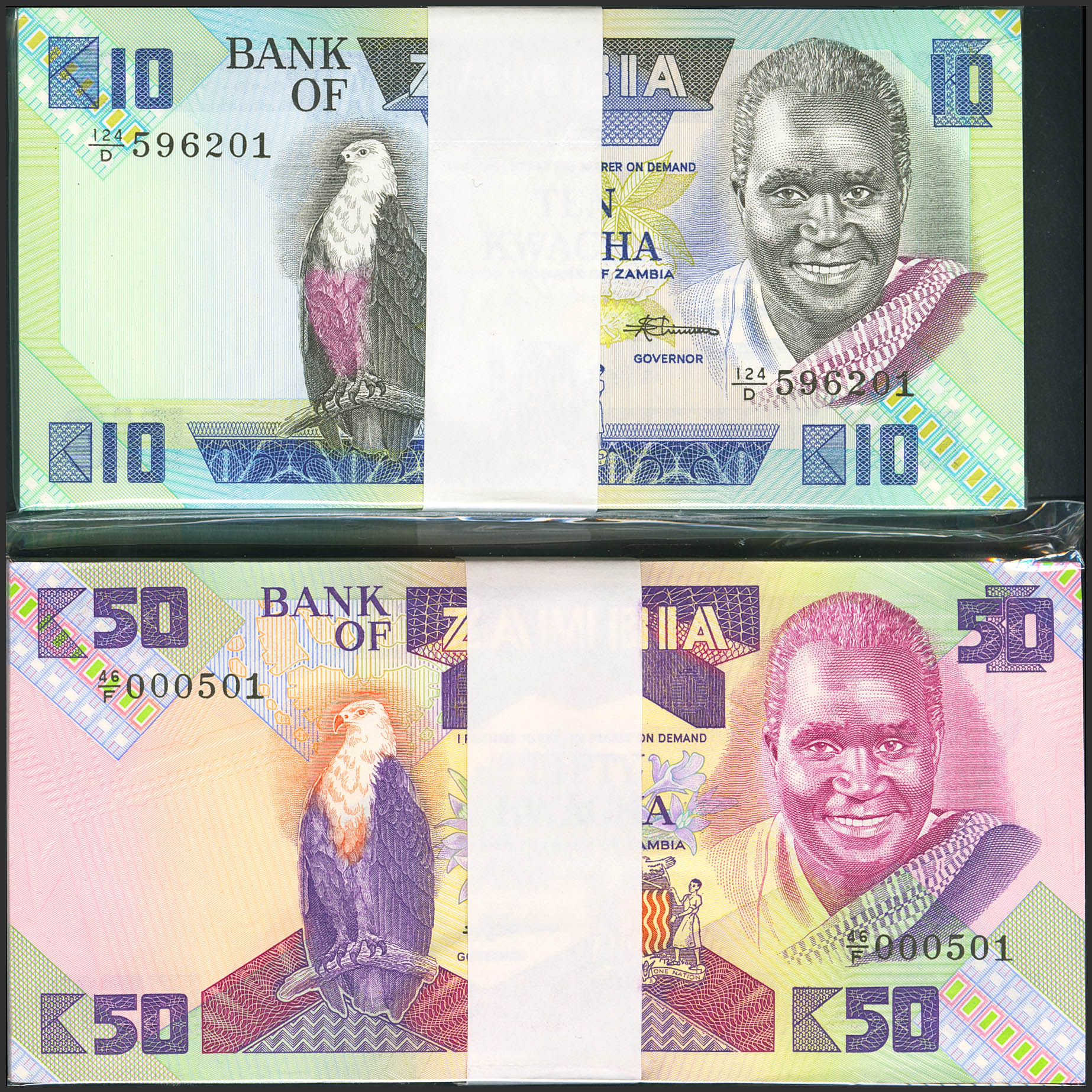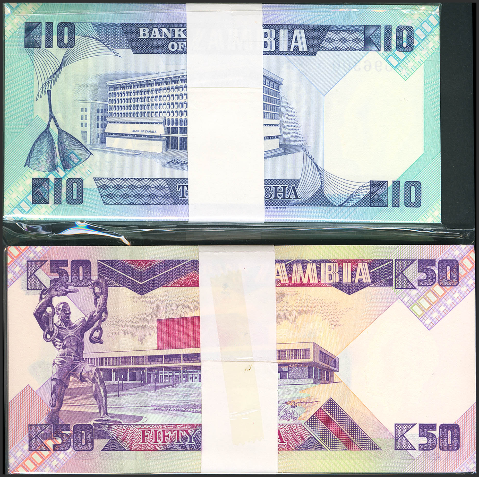 Set of 2 bundles of 100 banknotes from Zambia of various denominations, most of them very nice qualities. TO EXAM.