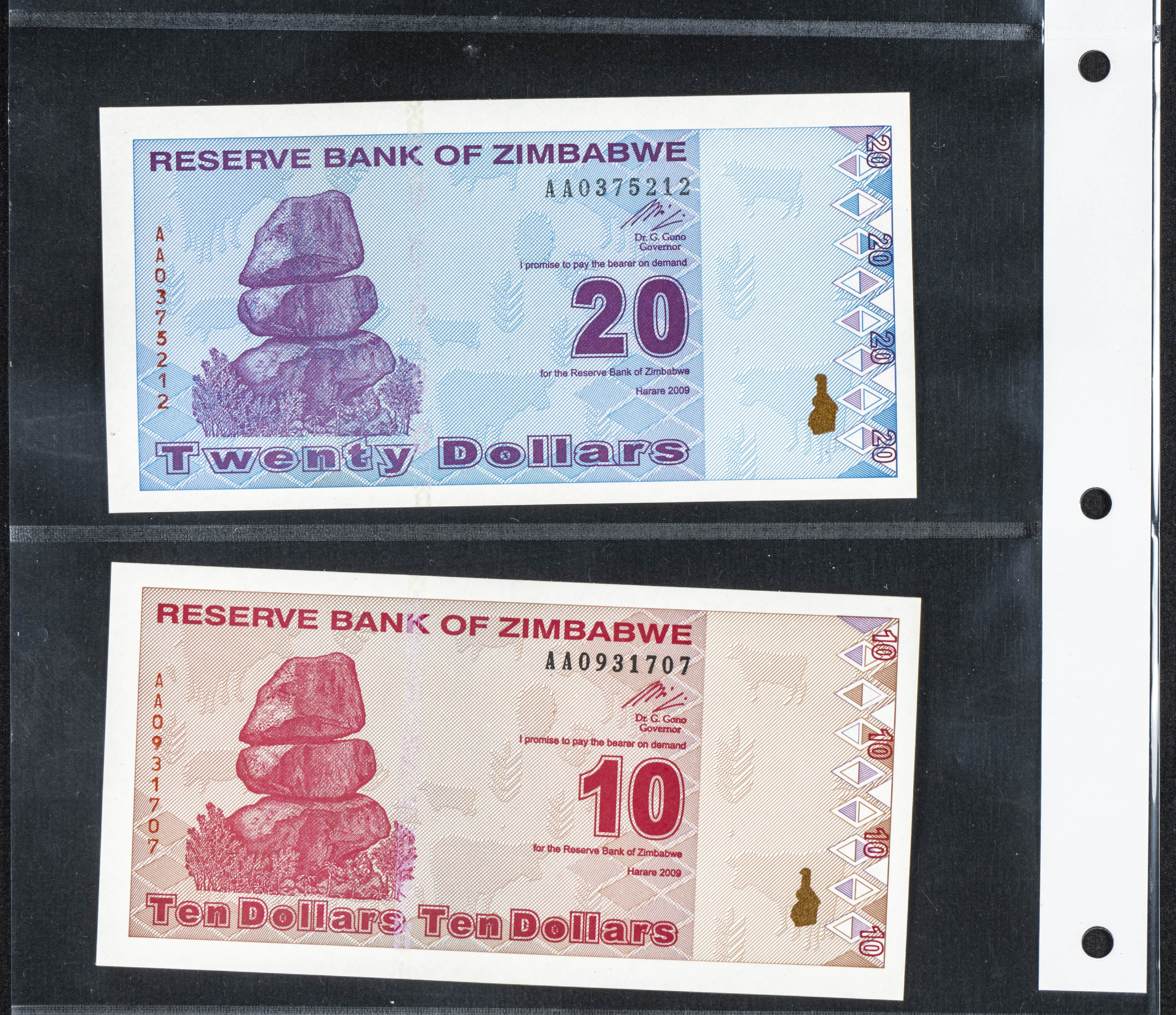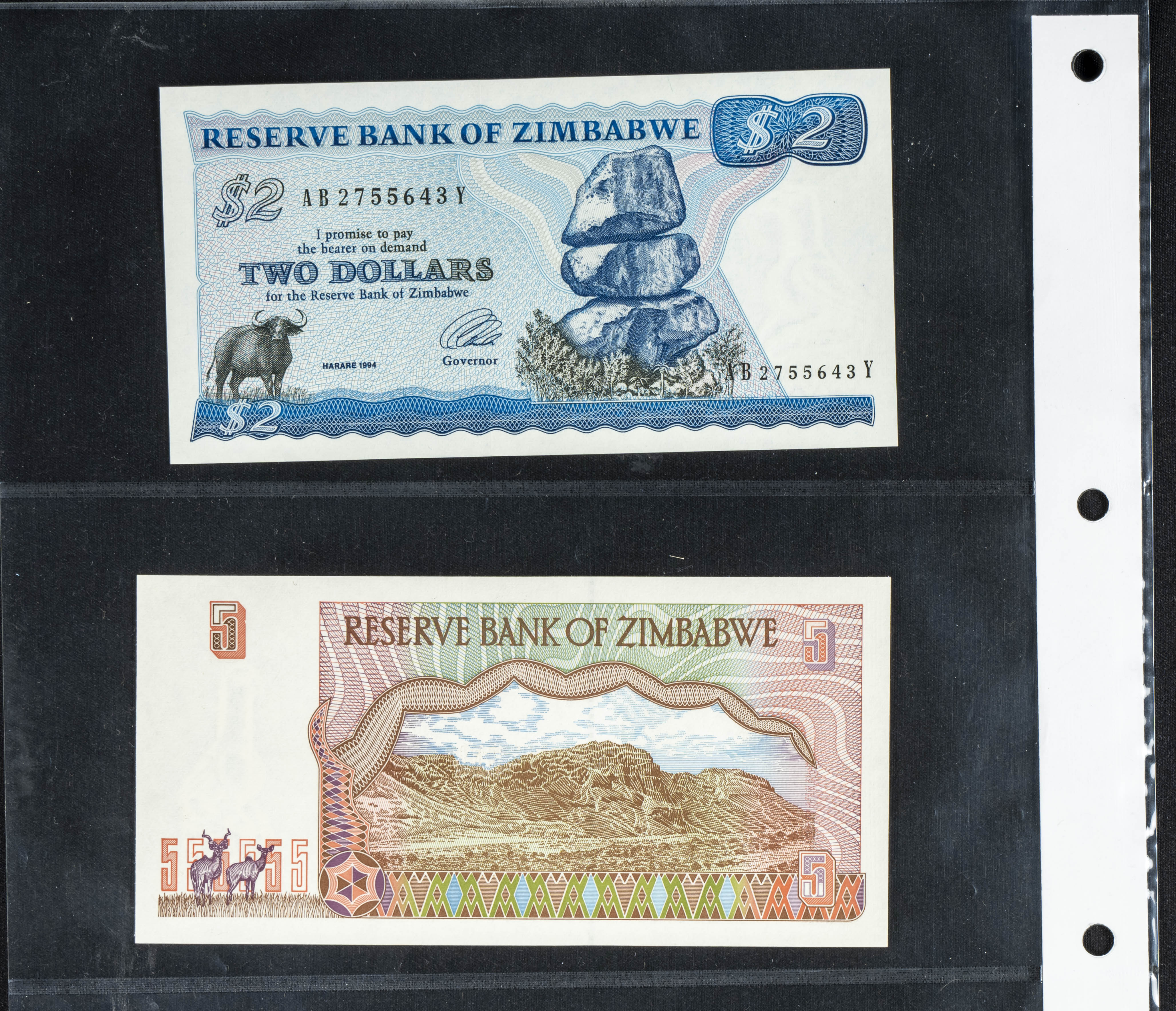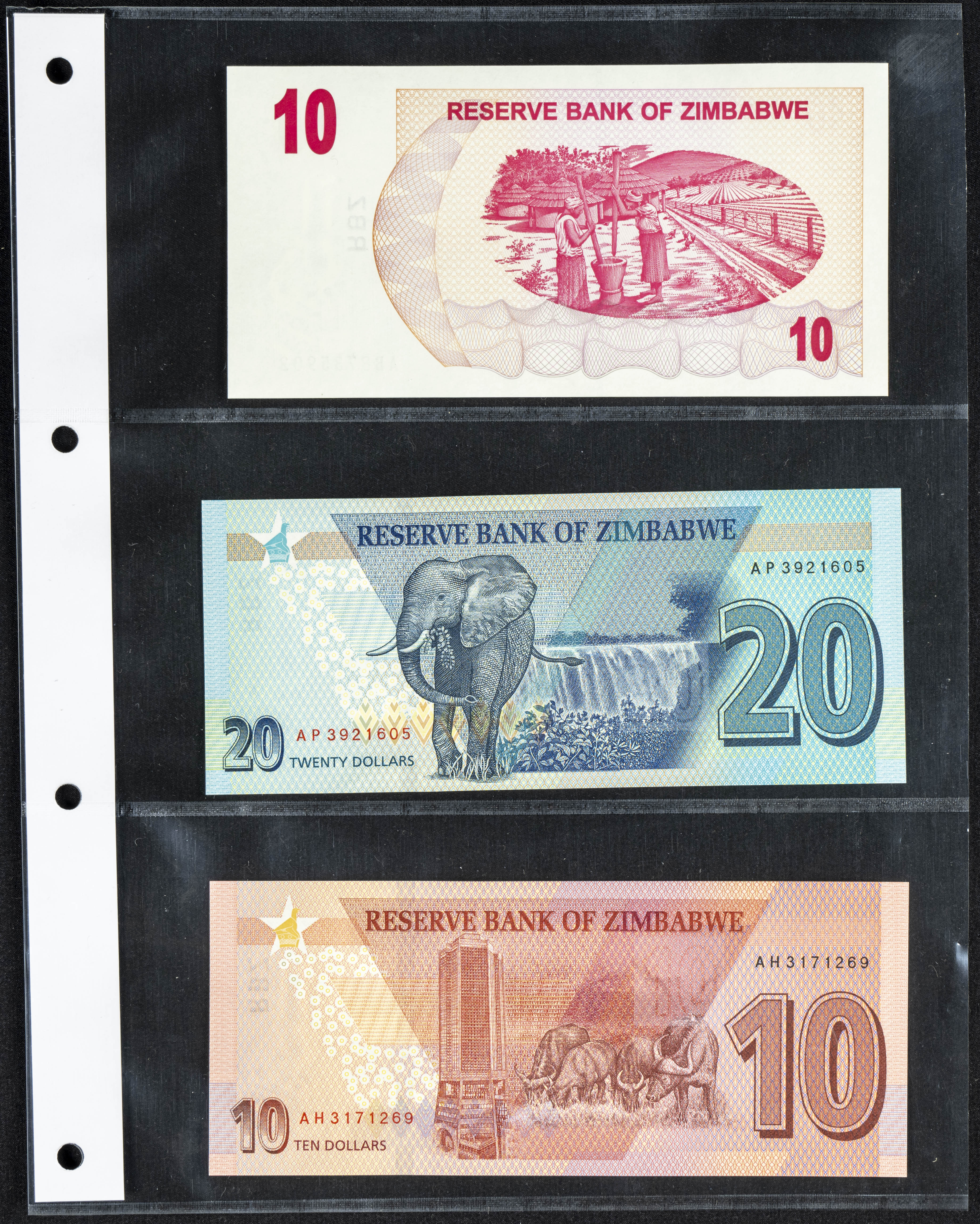 Set of more than 35 banknotes from Zimbabwe of various issues, most of them nice qualities. TO EXAM.