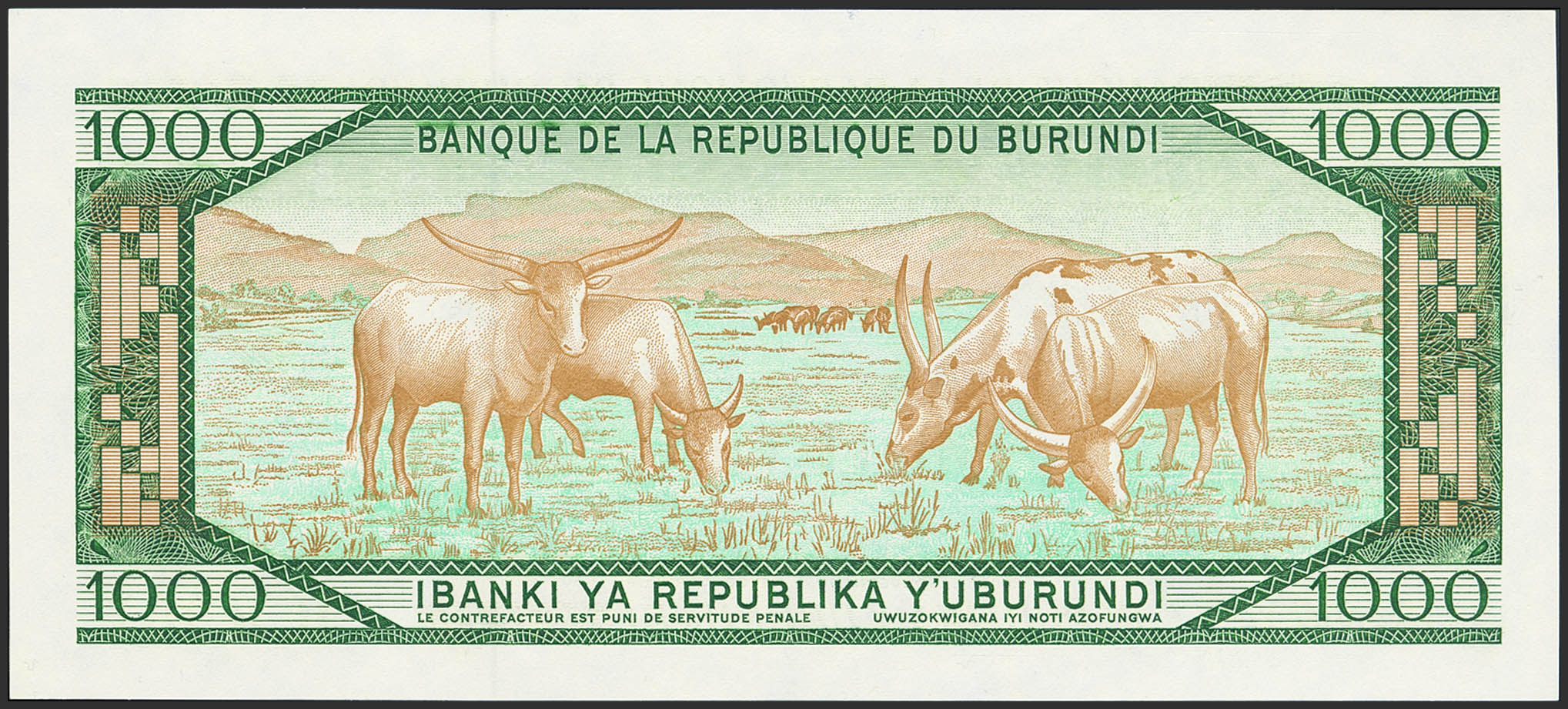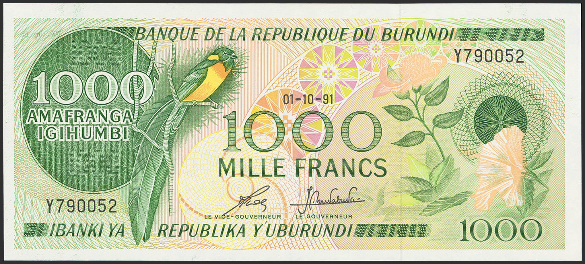 BURUNDI. 1000 Francs. 1 October 1991. (Pick: 31d). Uncirculated.