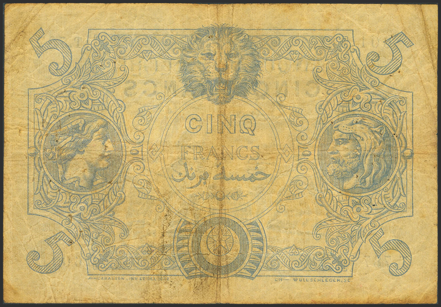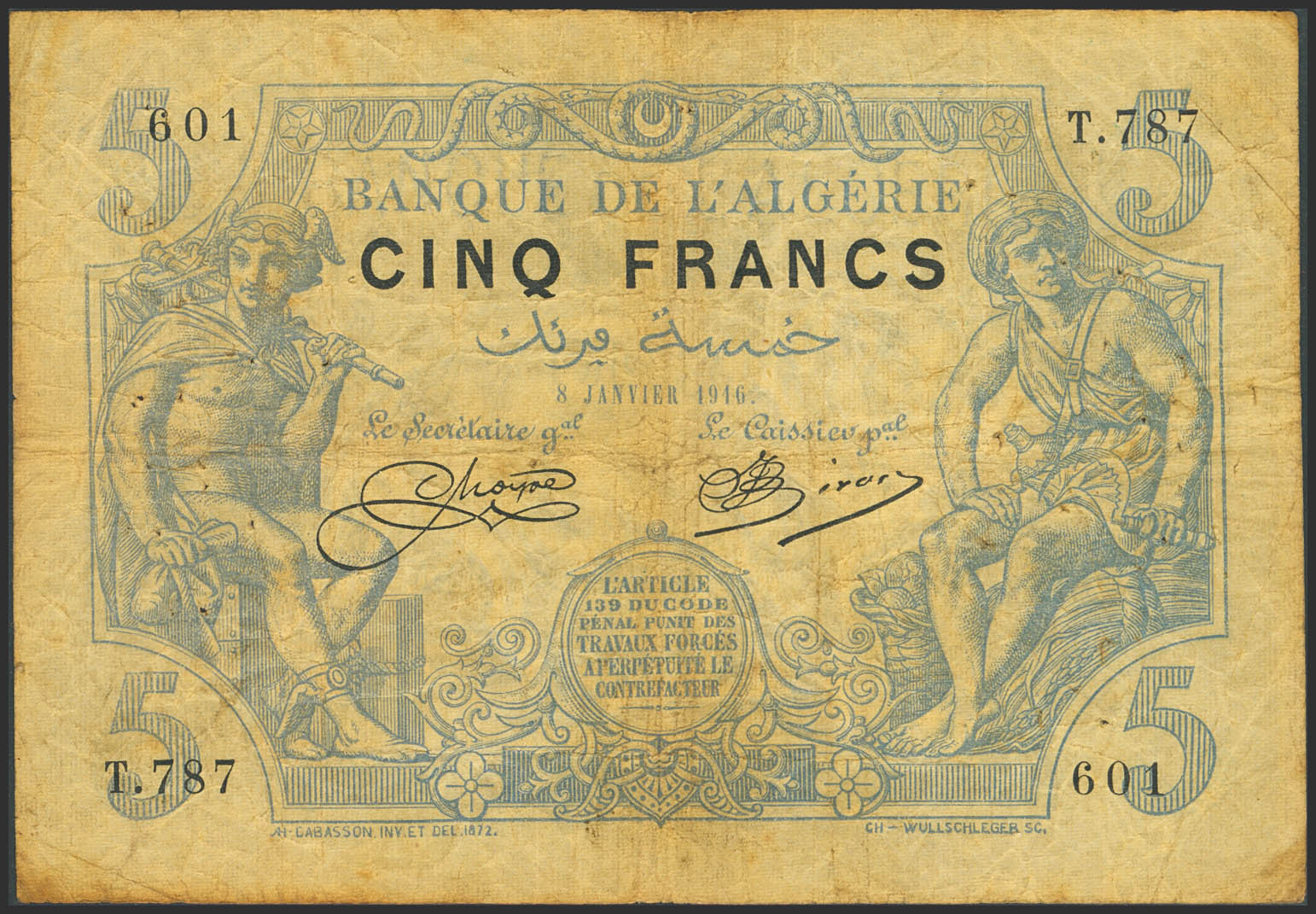 ALGERIA. 5 Francs. 8 January 1916. (Pick: 71). Rare. Less than Very Fine.