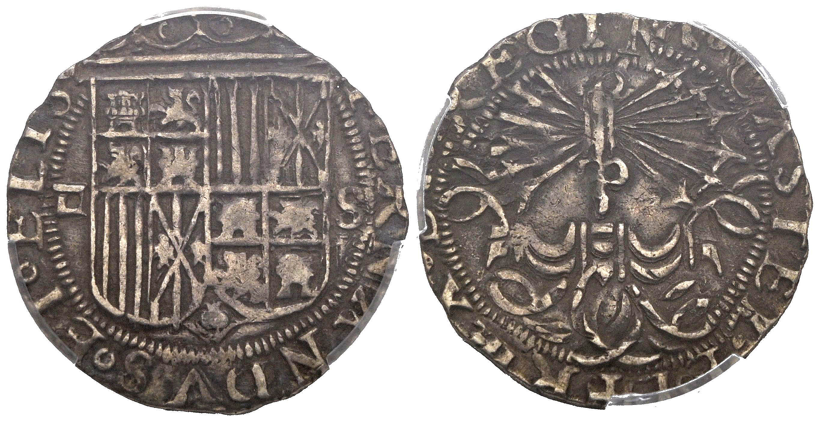 REYES CATÓLICOS (1474-1504). 1 Real. (Ar. 3,37g/25mm). S/D. Sevilla. (Cal-2019-440). Encapsulada por PCGS XF 45.