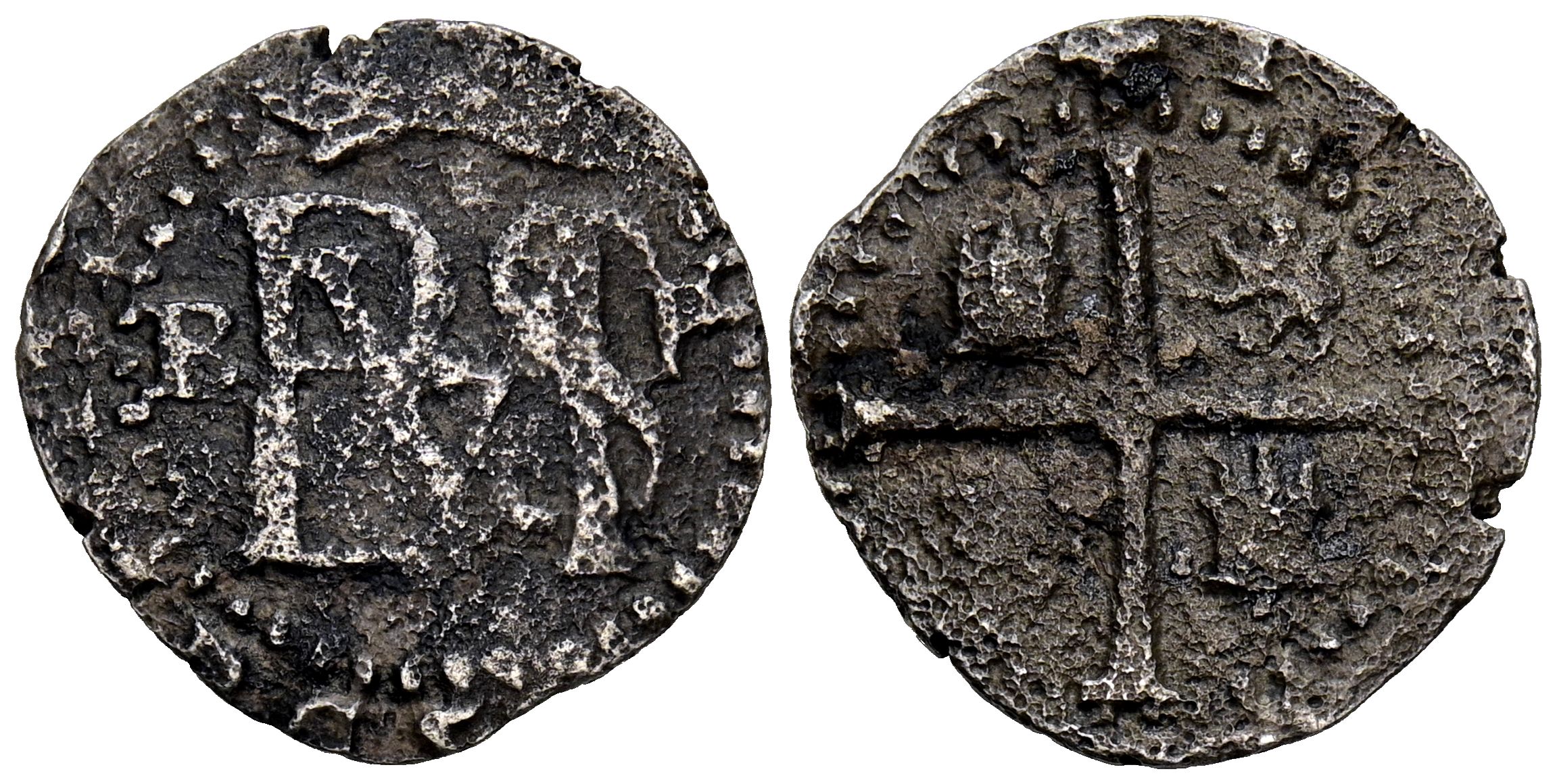 FELIPE II (1556-1598). 1/2 Real. (Ar. 1,11g/16mm). S/D (1578-1595). Potosí BP. (Cal-2019-144). BC+. Oxidaciones. Escasa.