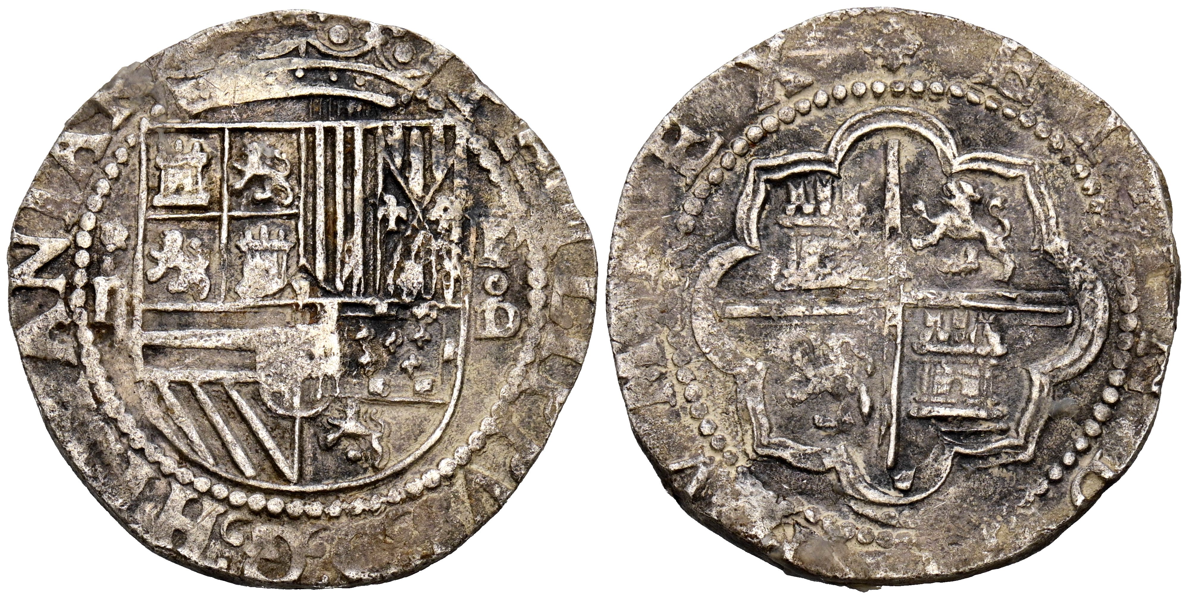 FELIPE II (1556-1598). 2 Reales. (Ar. 6,70g/29mm). S/D (entre 1577-1588). Lima D (Diego la Torre). (Cal-2019-338). MBC. Rara.