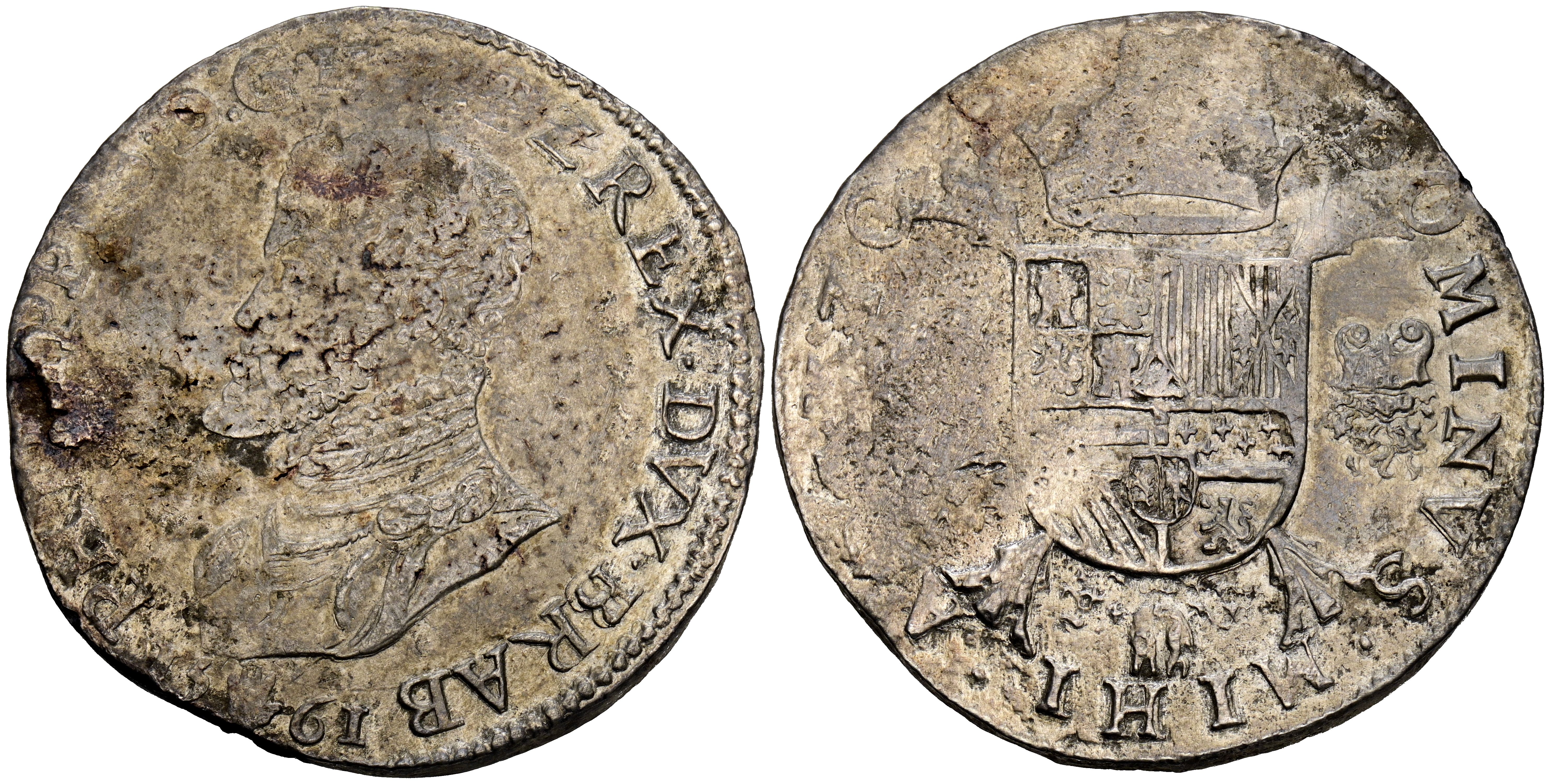 FELIPE II (1556-1598). 1 Escudo Felipe. (Ar. 32,72g/42mm). 1561. Amberes. (Vicenti 1188). MBC. Oxidaciones limpiadas. Tono.