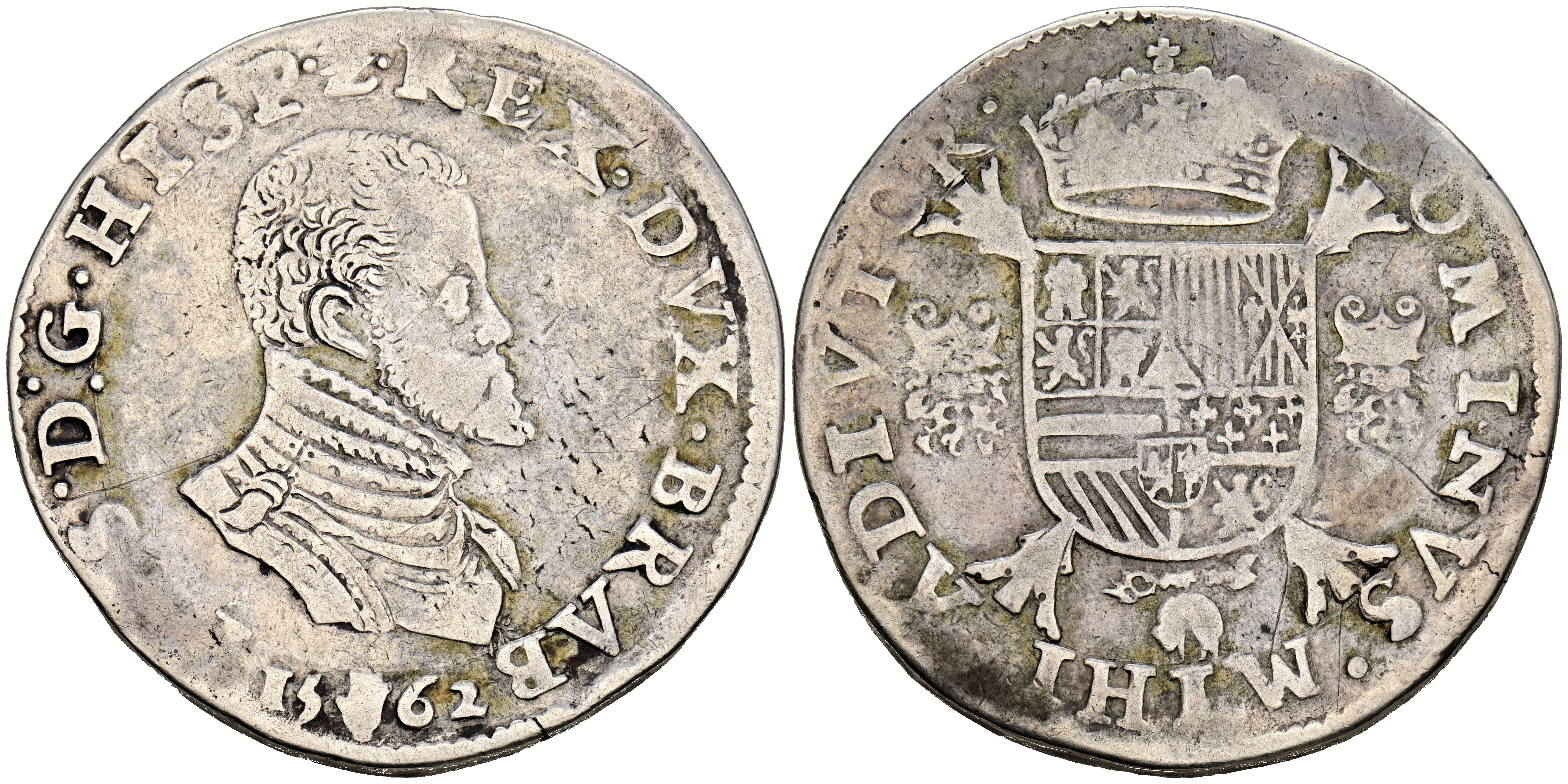 FELIPE II (1556-1598). 1 Escudo Felipe. (Ar. 33,27g/43mm). 1562. Amberes. (Vicenti 1249). MBC-.