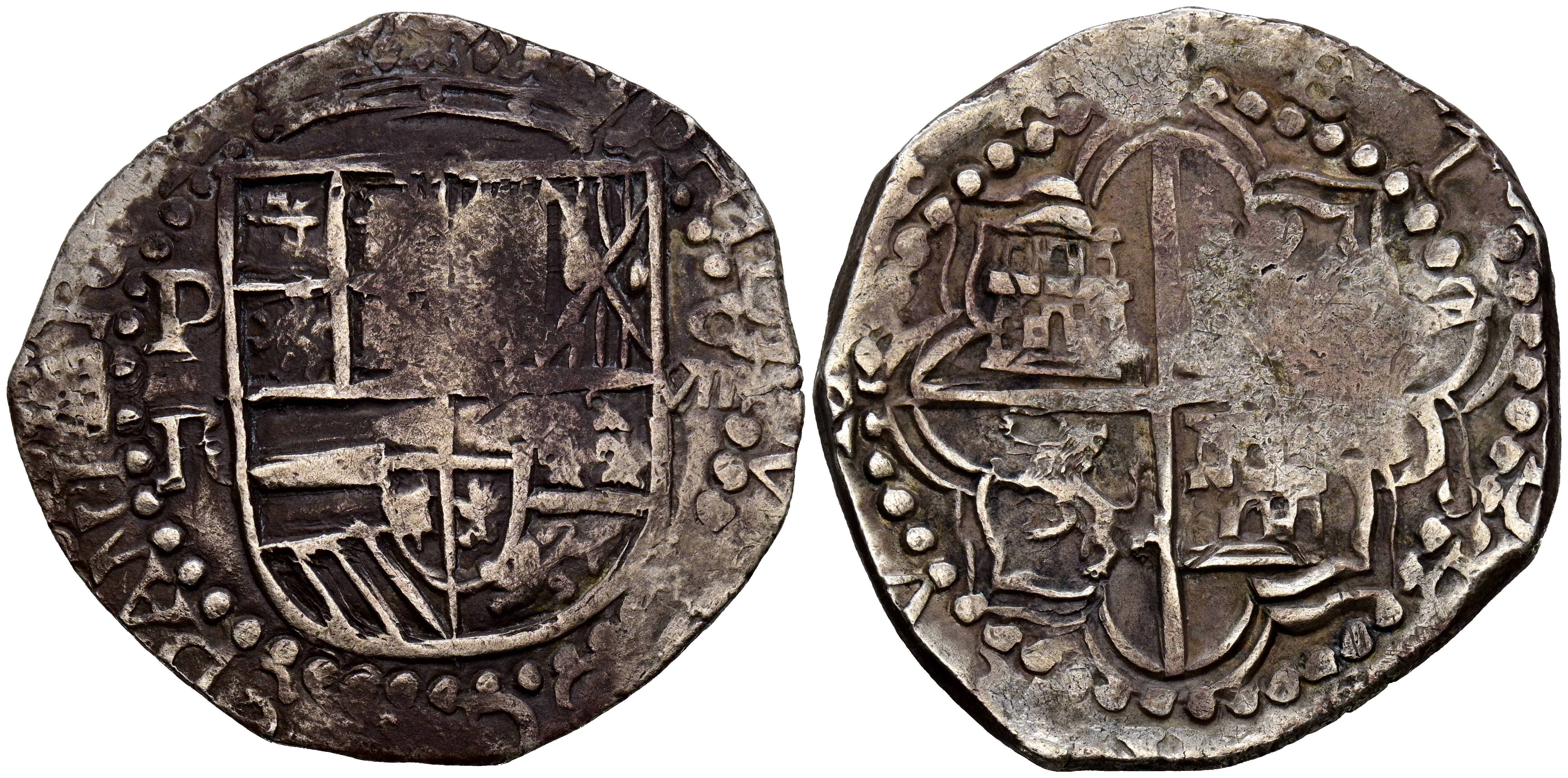 FELIPE III (1598-1621). 8 Reales. (Ar. 26,63g /39mm). S/D (1603-1612). Potosi R. (Cal-2019-912). Valor en números romanos. MBC-.