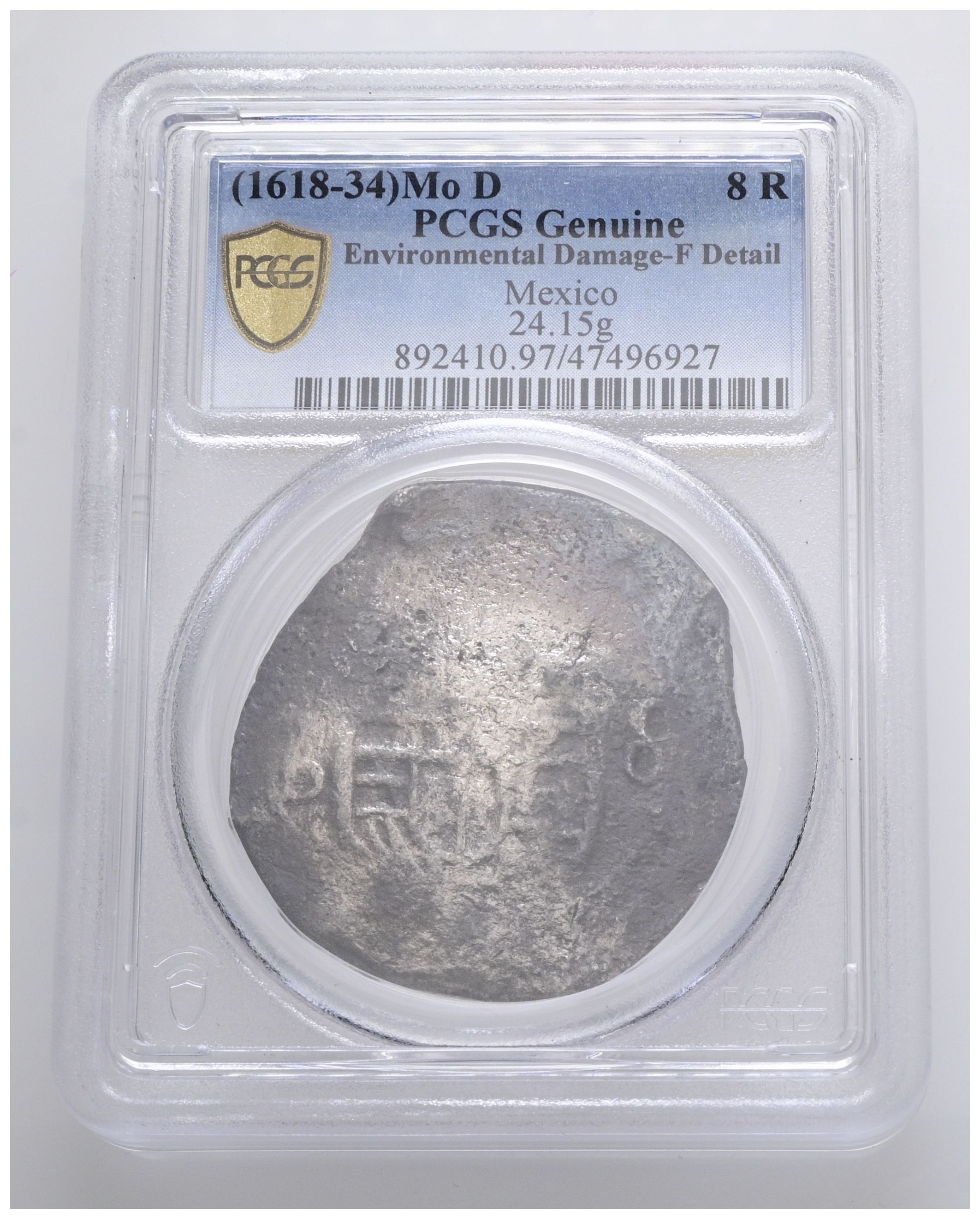 FELIPE III o FELIPE IV. 8 Reales. (Ar. 24,15g/37mm). Fecha no visible. México D. (Cal-2019-Tipo 162 ó 319). Encapsulado por PCGS F Details, Environmental Damage.