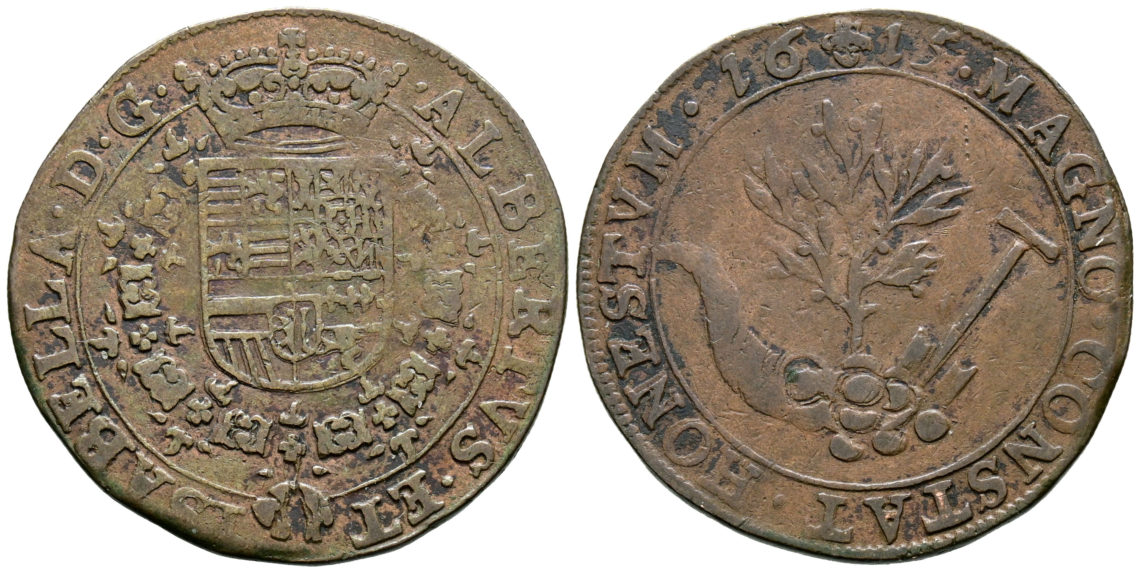 ALBERTO E ISABEL (1598-1621). Jetón. (Ae. 4,65g/28mm). 1615. Tesorería desconocida. Prosperidad durante el armisticio. (Dugniolle 3716). MBC-.